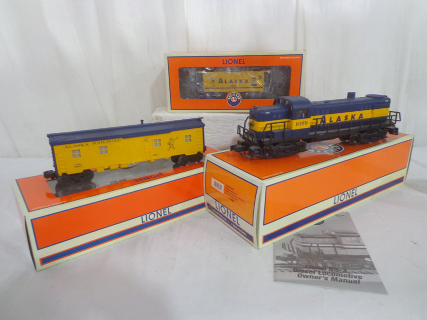 | Lot 171 | Lionel #28882 Alaska RS-3 Engine, #29623 Alaska Bunk Car and #36544 Alaska Caboose/OBs |