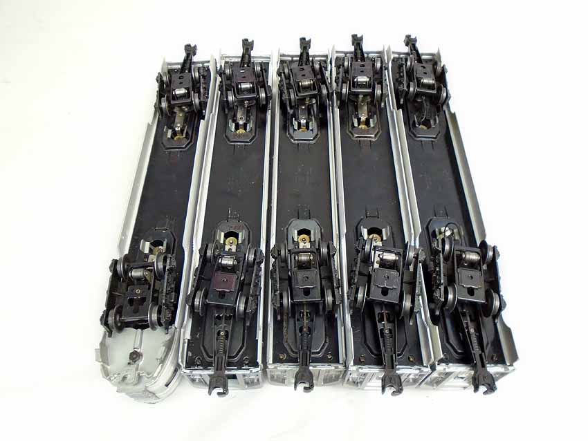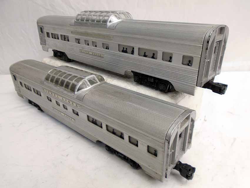 These are the #2531/2532/2532/2533/2533 Passenger Cars that Lionel made in the 1950s. Our Opinion is that they are generally in Excellent Plus Condition. No Boxes. Examine closely; what is pictured is what you will receive. Please add $50.00 for US-48 Shipping and Insurance (more west of the Mississippi). |