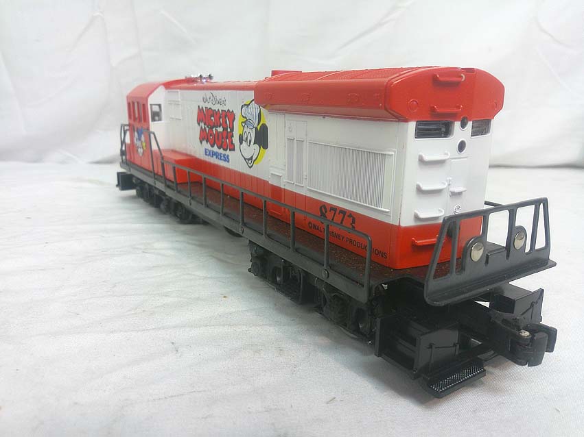This the famous Mickey Mouse Express Set that Lionel made in the 1970s. This Set includes the #8773 Mickey Mouse Express U36B Diesel, the #9660 Mickey Mouse Hi-Cube Box Car, the #9661 Goofy Hi-Cube Box Car, the #9662 Donald Duck Hi-Cube Box Car, the #9663 Dumbo Hi-Cube Box Car, the #9664 Cinderella Hi-Cube Box Car, the #9665 Peter Pan Hi-Cube Box Car, the #9666 Pinocchio Car, the #9667 Snow White Car, the #9668 Pluto Car, the #9669 Bambi Box Car, the #9670 Alice In Wonderland Box Car, the #9671 Fantasia Box Car, the #9672 Mickey Mouse 50th Anniversary Car and the #9183 Caboose. Our Opinion is that the Set is generally in Like New Condition. Original Boxes. All Original in our Opinion. Please add $60.00 for US-48 Shipping and Insurance (more west of the Mississippi). |