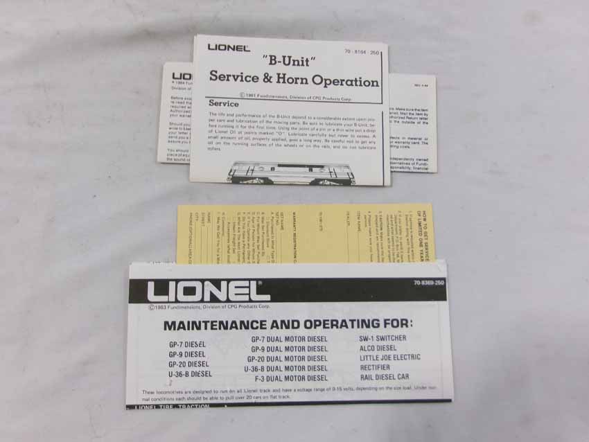 LN Lionel #8480/8481 UP F3 ABA Diesel Engines and #9545/9546/9547/9548/9549/7210/19121/19152 UP Passenger Cars, OBs G3 |