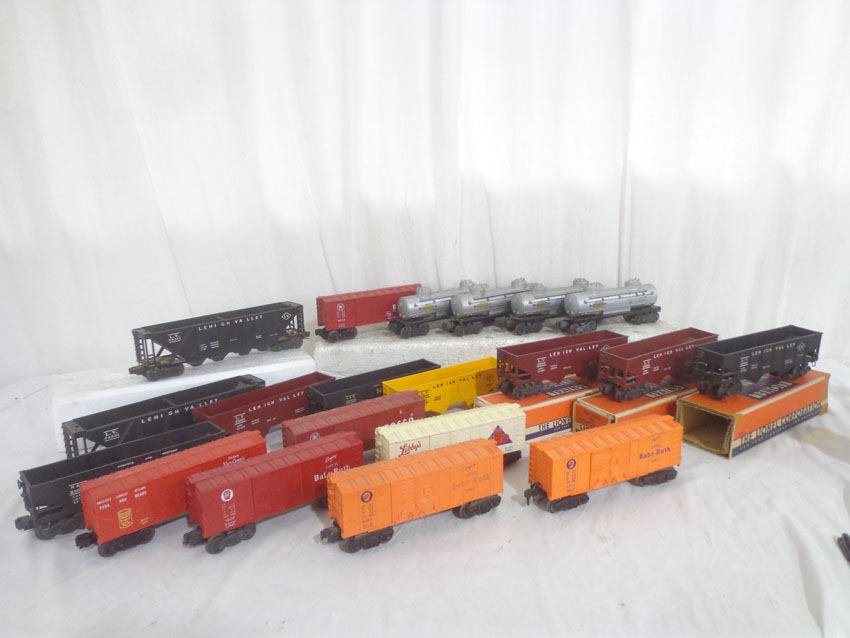 These are twenty Assorted Freight Cars that Lionel made in the past. Three Original Boxes/insert. Examine closely; what is pictured is what you will receive. Please add $60.00 for US-48 Shipping and Insurance (more west of the Mississippi).