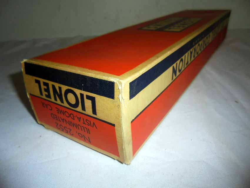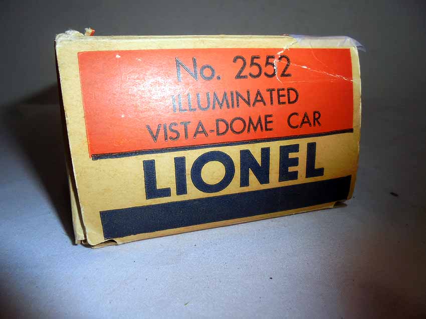 This is the #2552 Canadian Pacific VIsta Dome that Lionel made in 1957. Original Box. Examine very, very closely; what is pictured is what you will receive. Please add $35.00 for US-48 Shipping and Insurance (more west of the Mississippi).