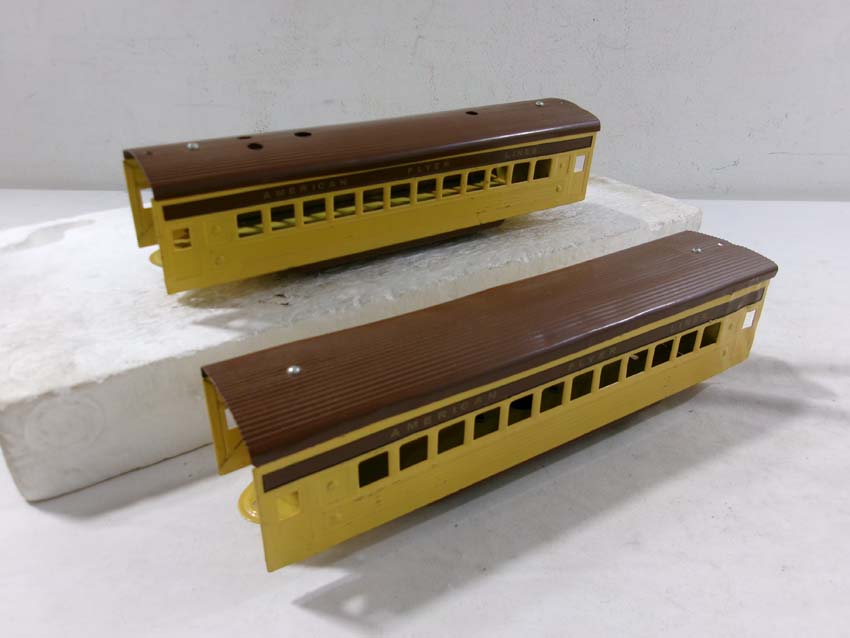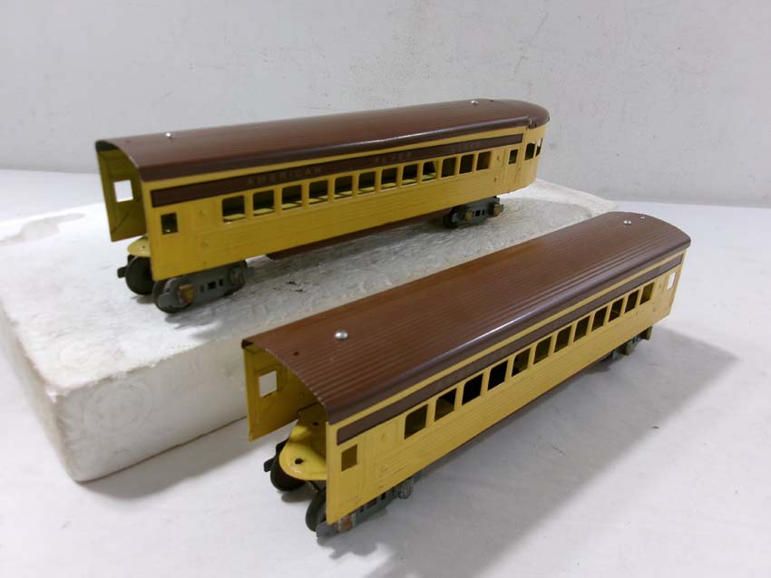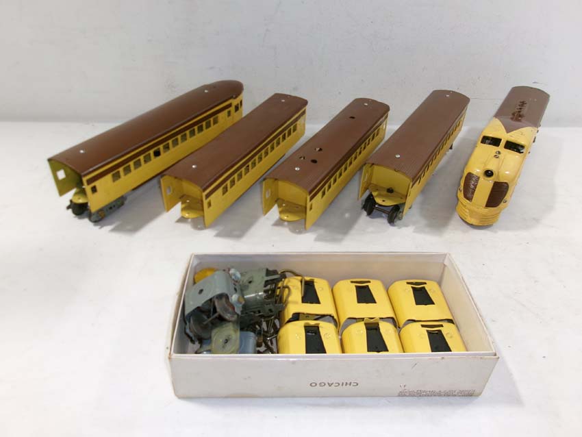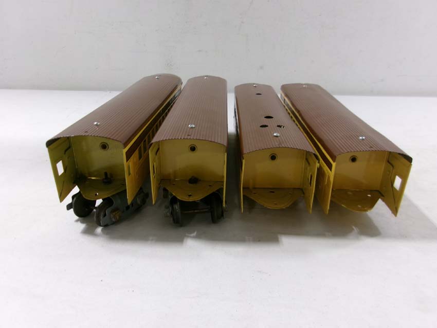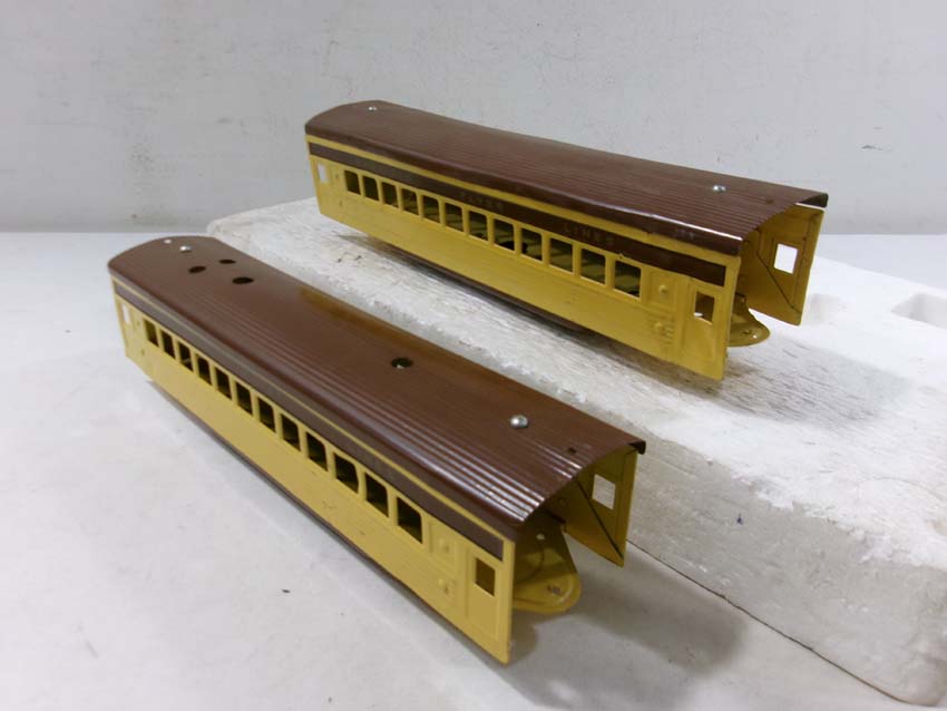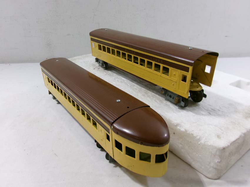 These are the AF #1684/1621Y/1621Y/1621Y/1632Y UP City of Denver Streamline Passenger Set (restored) made Pre War. No Boxes. Examine closely; what is pictured is what you will receive. Please add $50.00 for US-48 Shipping and Insurance (more west of the Mississippi). |