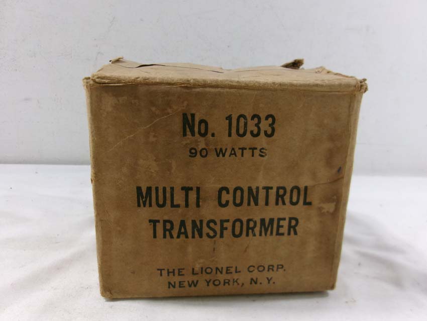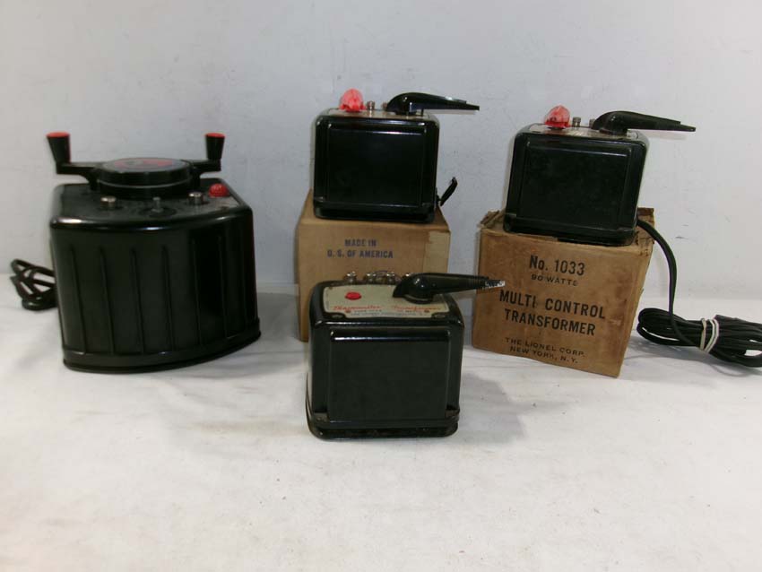 These are two Lionel #1033 Transformers (90 watts), #1034 Transformer (75 watts) and KW Transformer (190 watts). Two Original Box. Examine closely; what is pictured is what you will receive. Please add $50.00 for US-48 Shipping and Insurance (more west of the Mississippi).