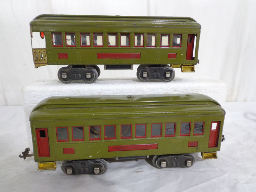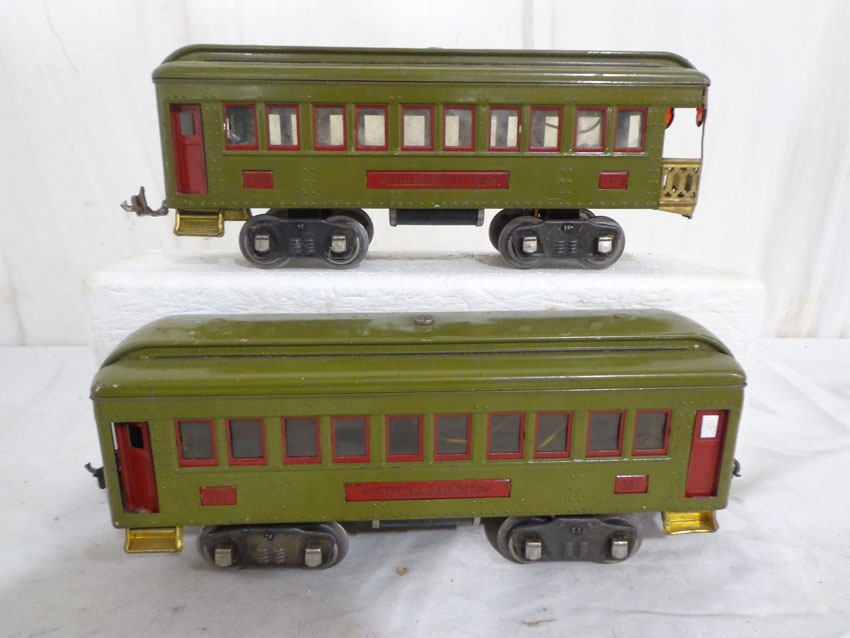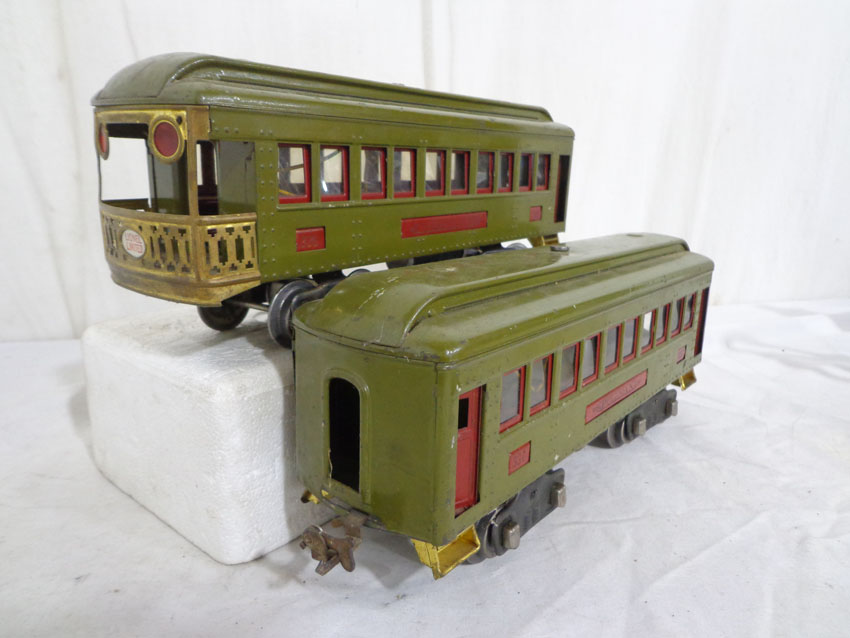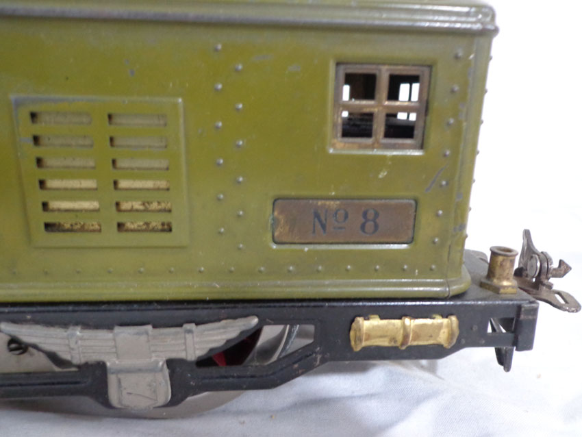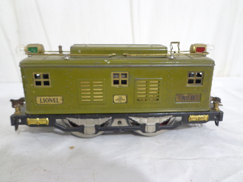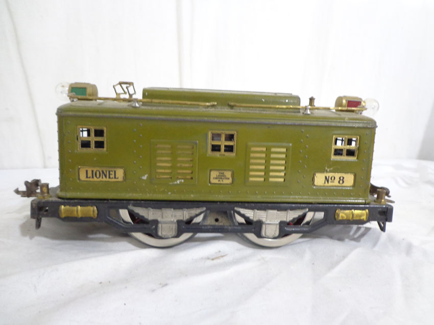 These are the Lionel Standard Gauge #8 Electric Engine and the #337/338 Passenger Cars from the 1920s. No Boxes. Examine very closely; what is pictured is what you will receive. Please add $45.00 for US-48 Shipping and Insurance (more west of the Mississippi). |