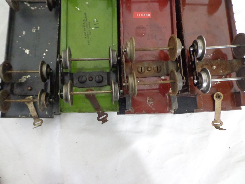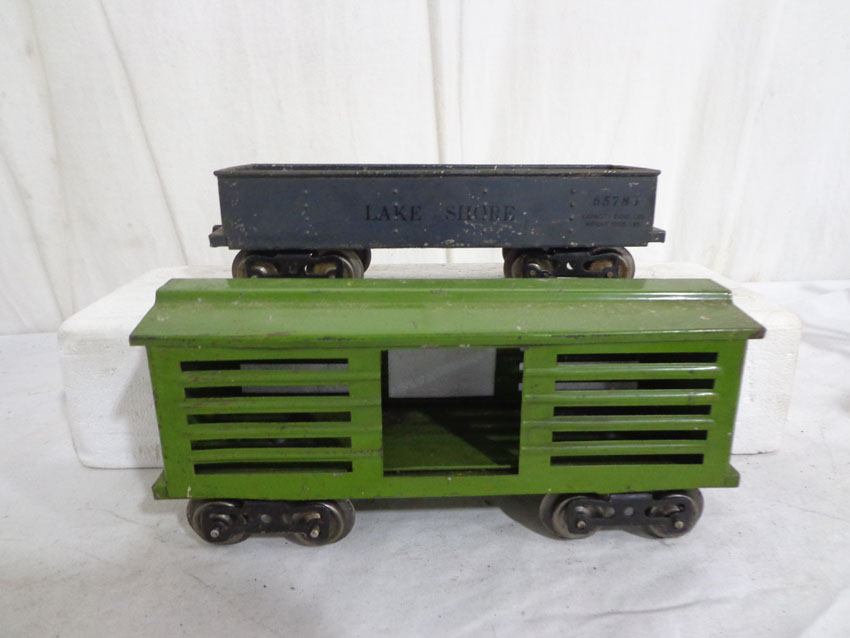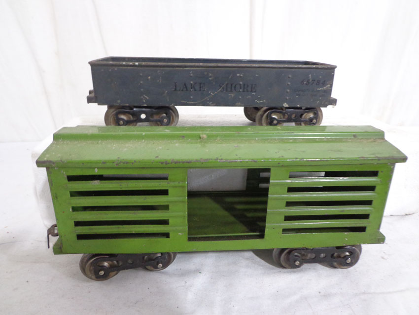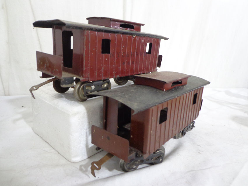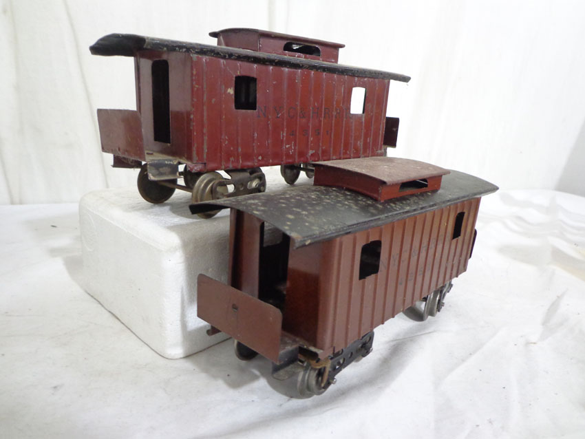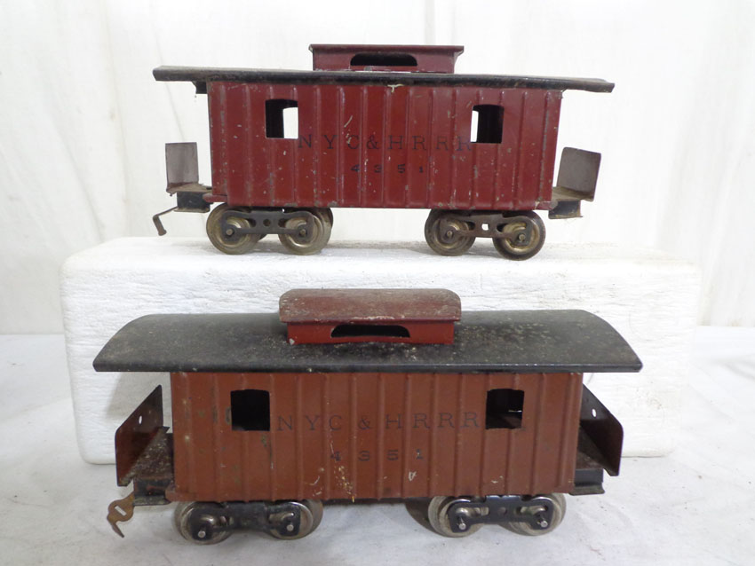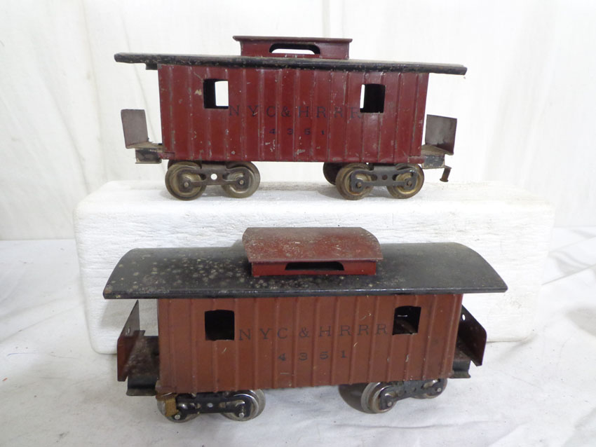 These are the #113 Stock Car, #65784 Lake Shore Gondola and two #4351 New York Central & HRRR Cabooses (missing doors) that Lionel made
