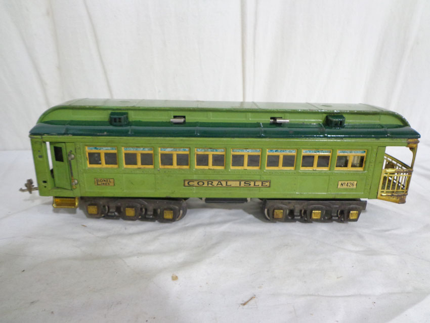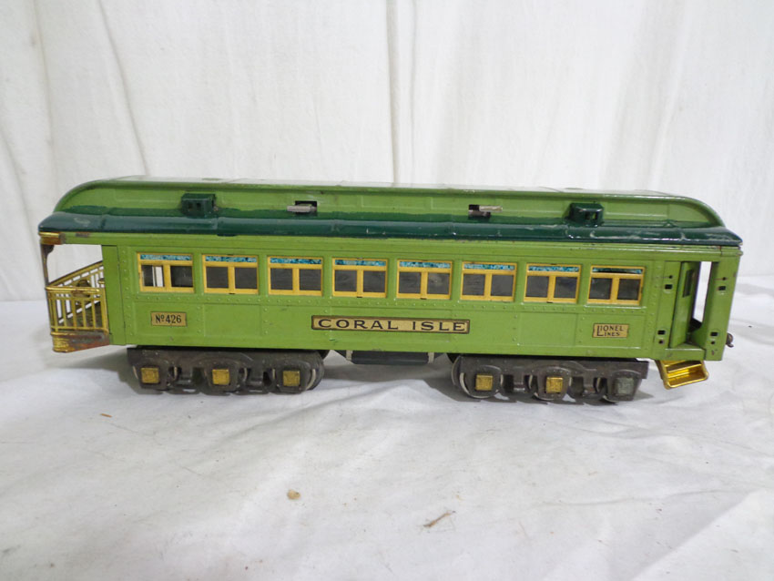 These are the #424/425/426 Passenger Cars that Lionel made in Standard Gauge Pre War. No Boxes. Examine very closely; what is pictured is what you will receive. Please add $50.00 for US-48 Shipping and Insurance (more west of the Mississippi).