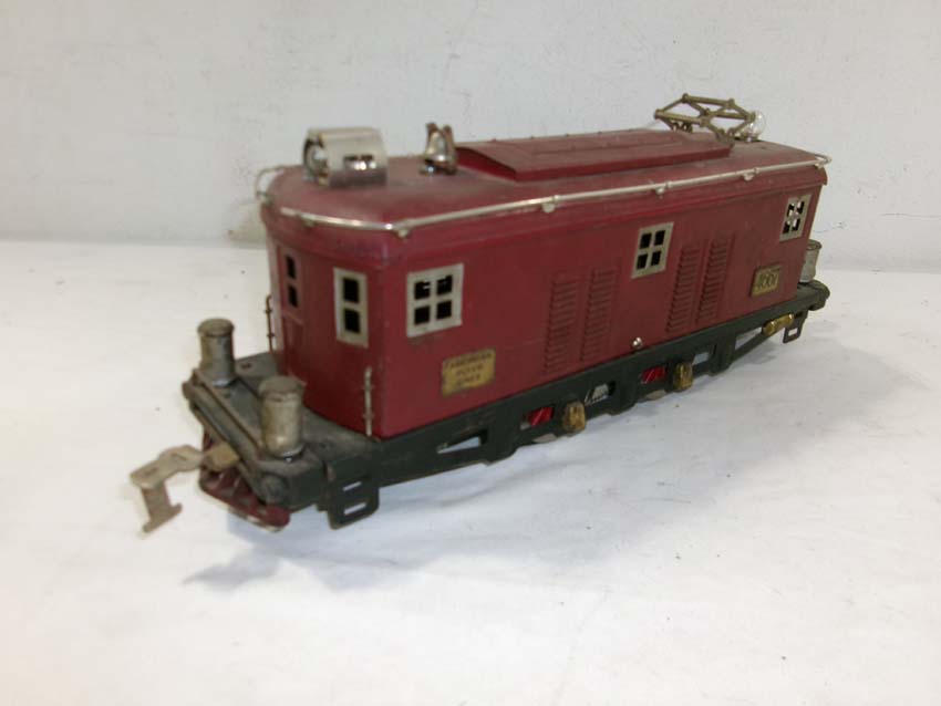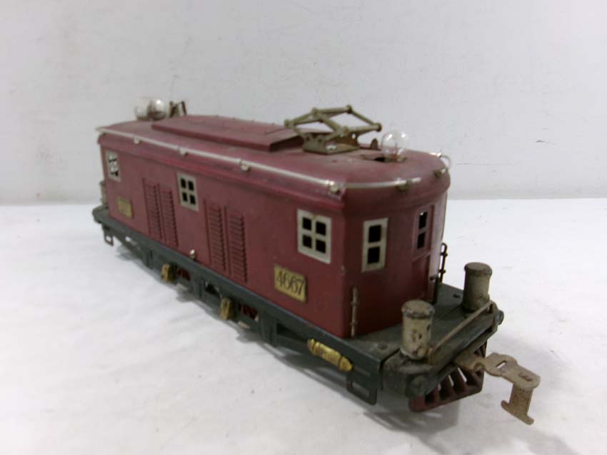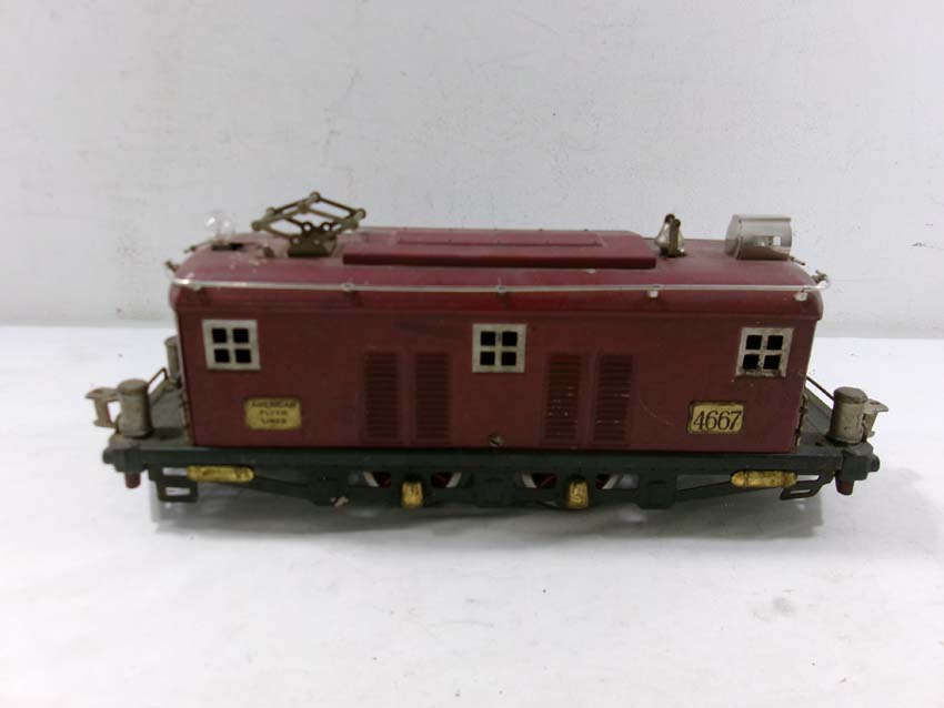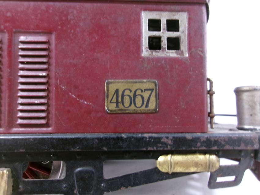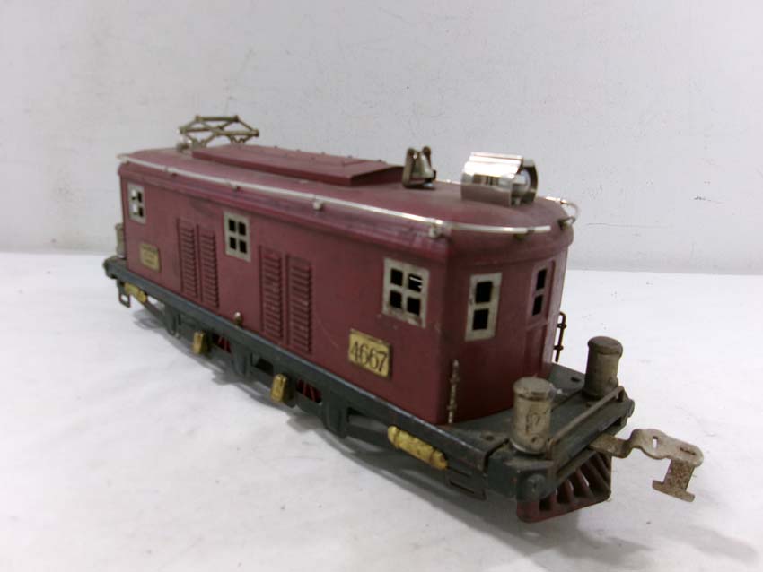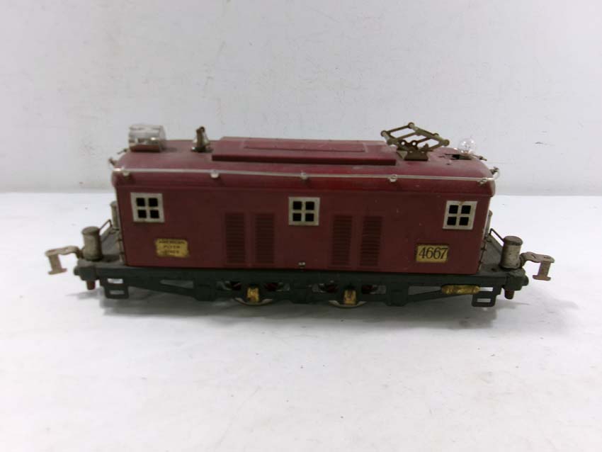 This is the AF Standard Gauge #4667 Electric Engine (maroon) from the 1920s/30s. No Box. Examine closely; what is pictured is what you will receive. Please add $40.00 for US-48 Shipping and Insurance (more west of the Mississippi). |