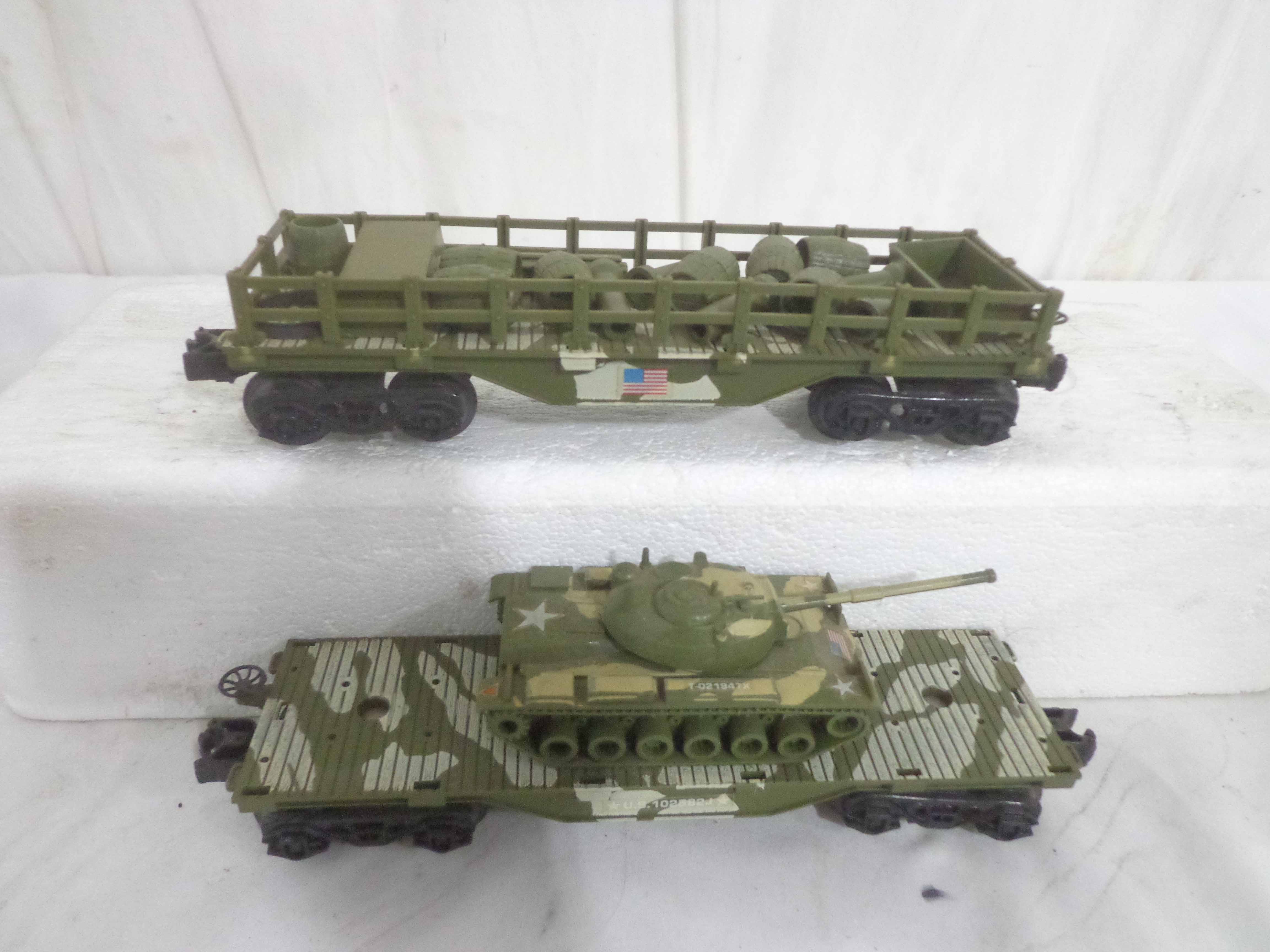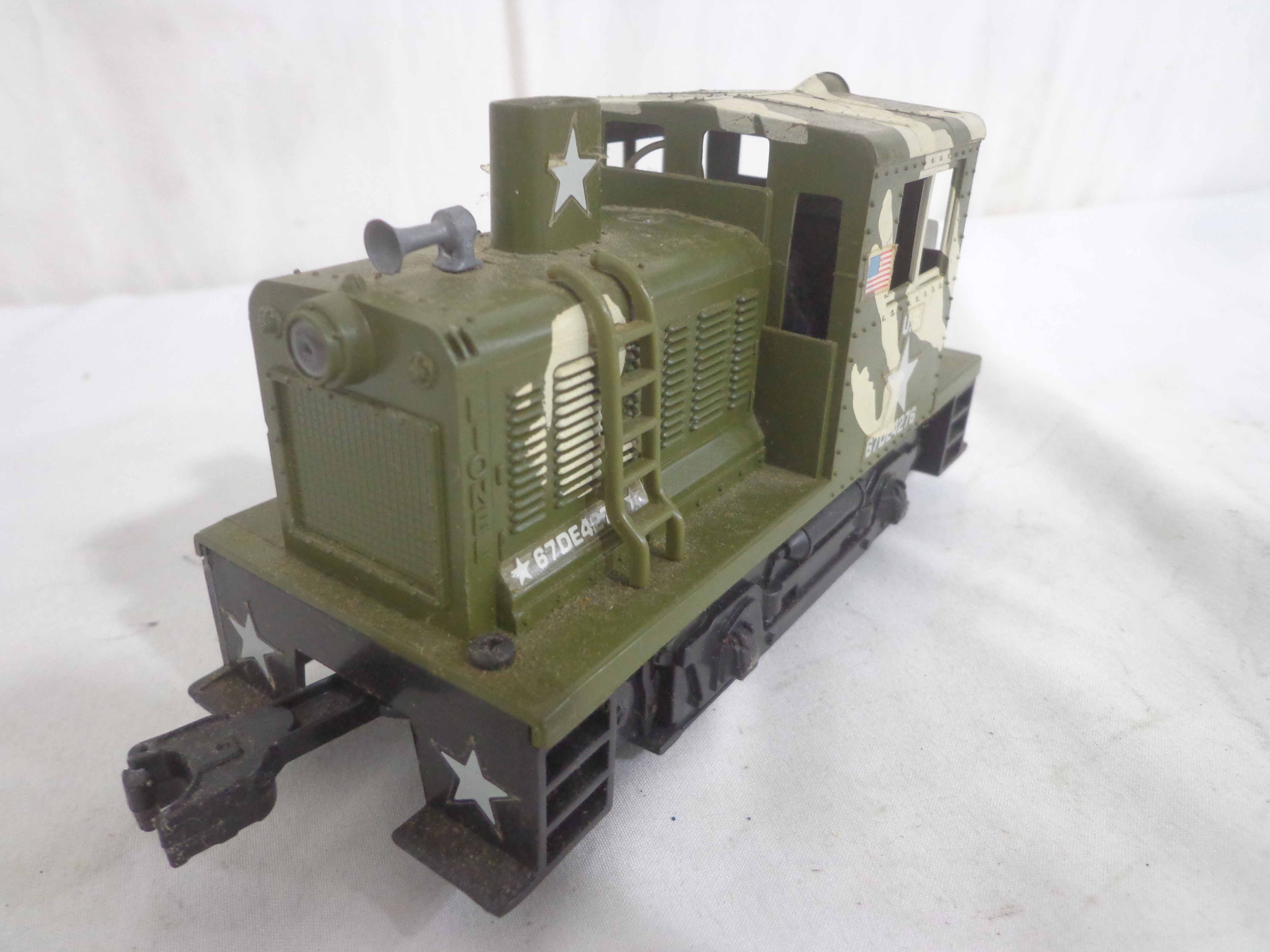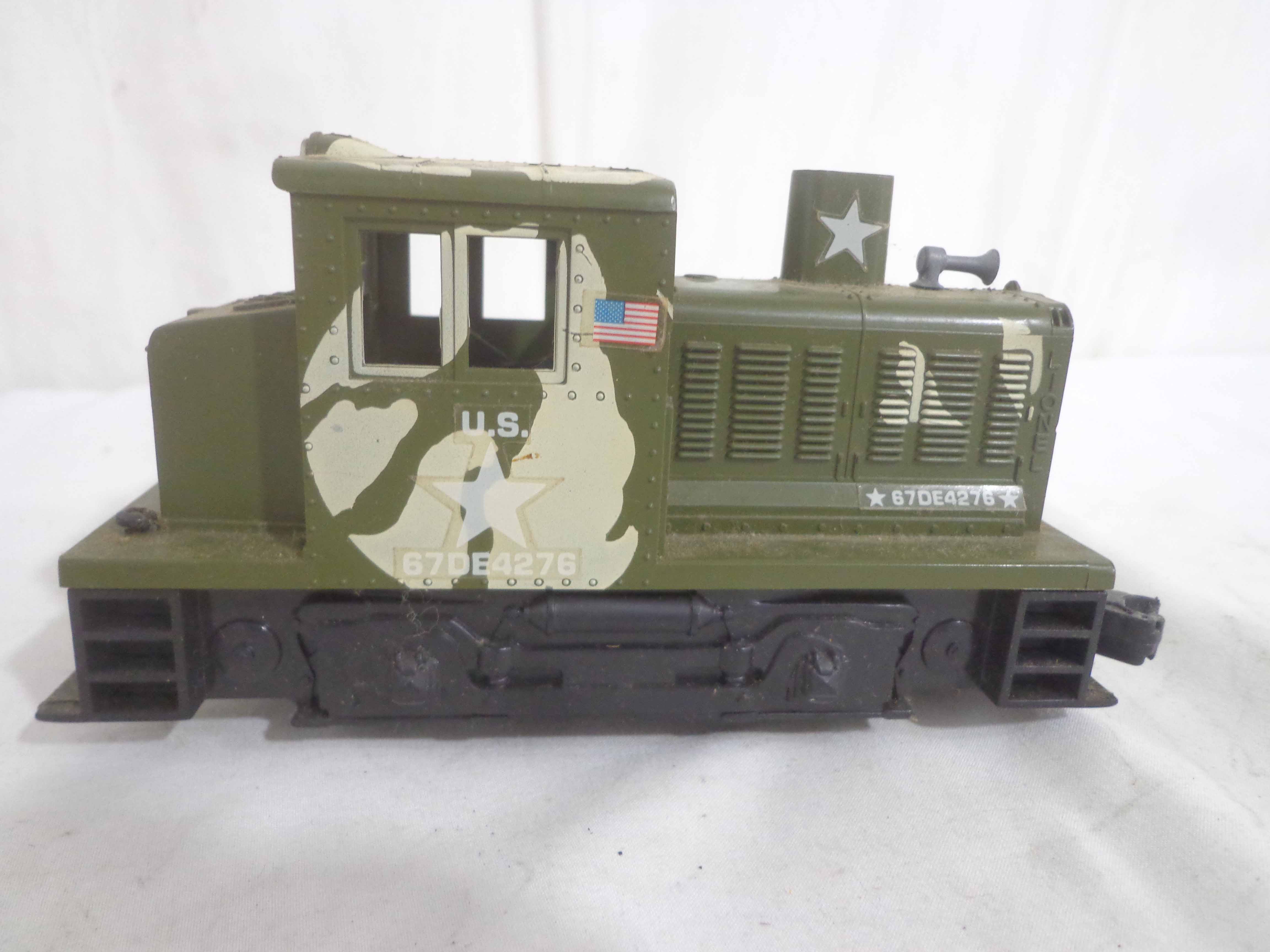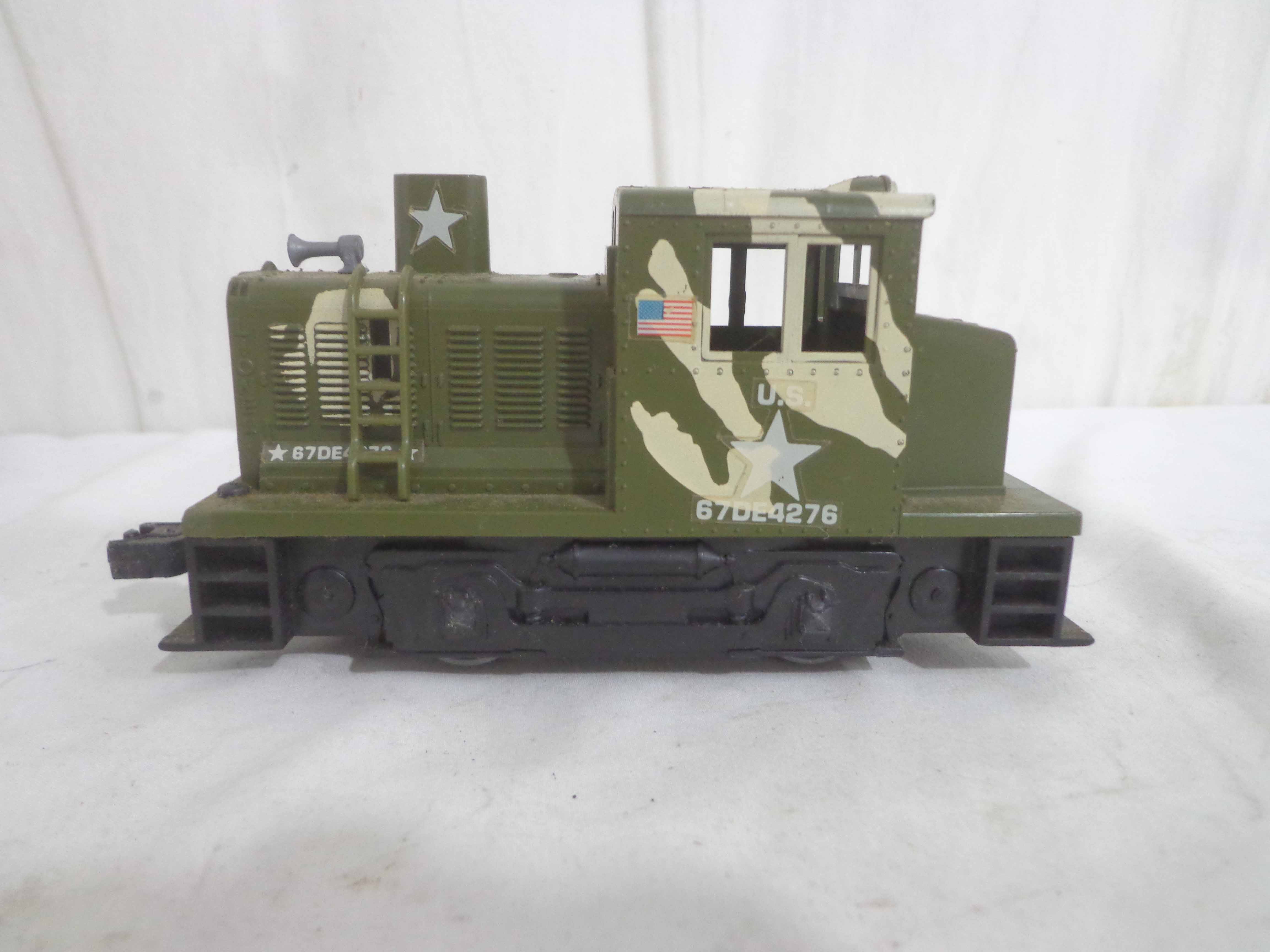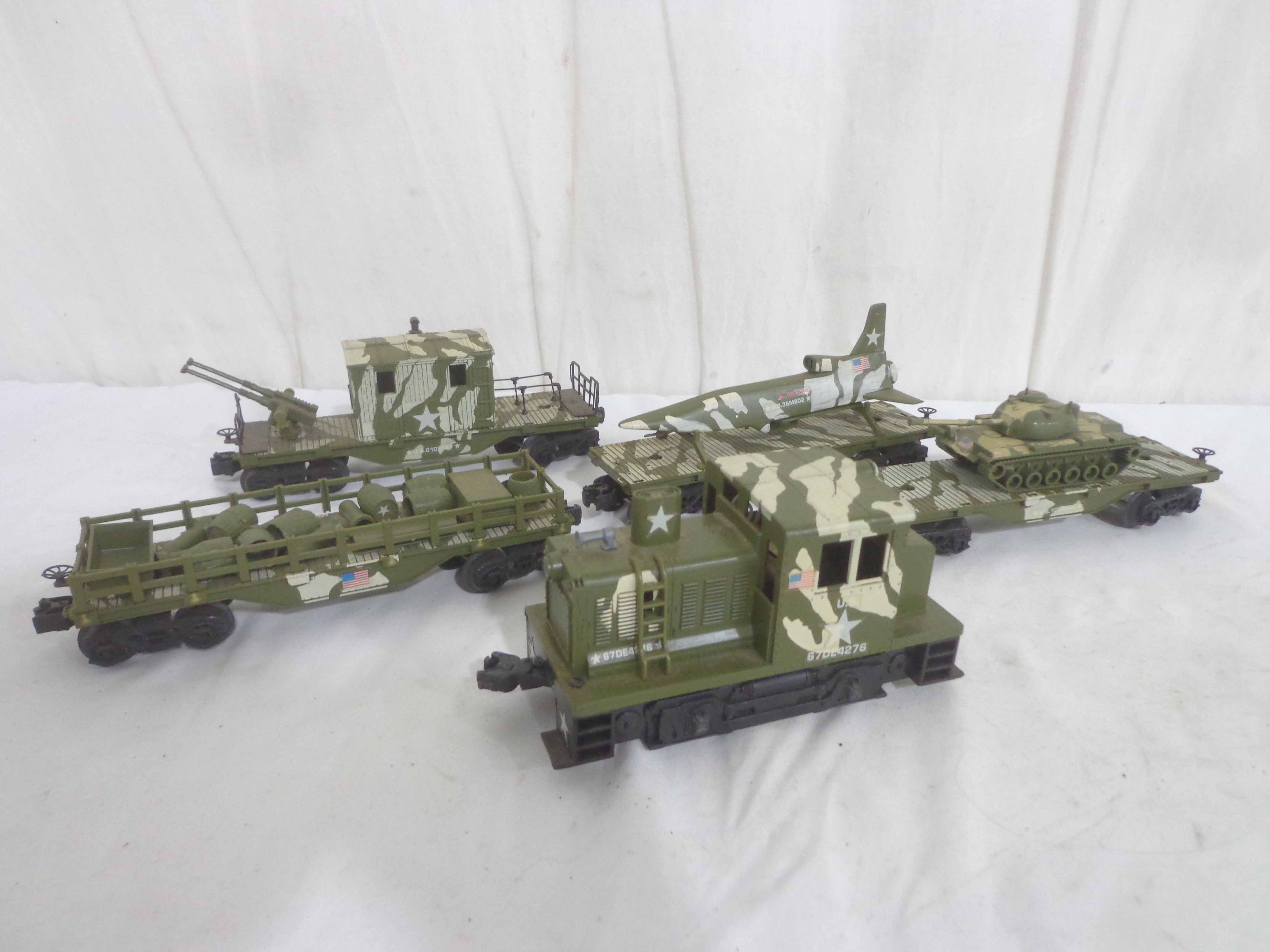 These are the Lionel #1355 Commando Assault Train Set/#67DE4276 Military Engine and four Military Cars that Lionel made in the 1980s. No Boxes Examine very closely; what is pictured is what you will receive. Please add $50.00 for US-48 Shipping and Insurance (more west of the Mississippi).