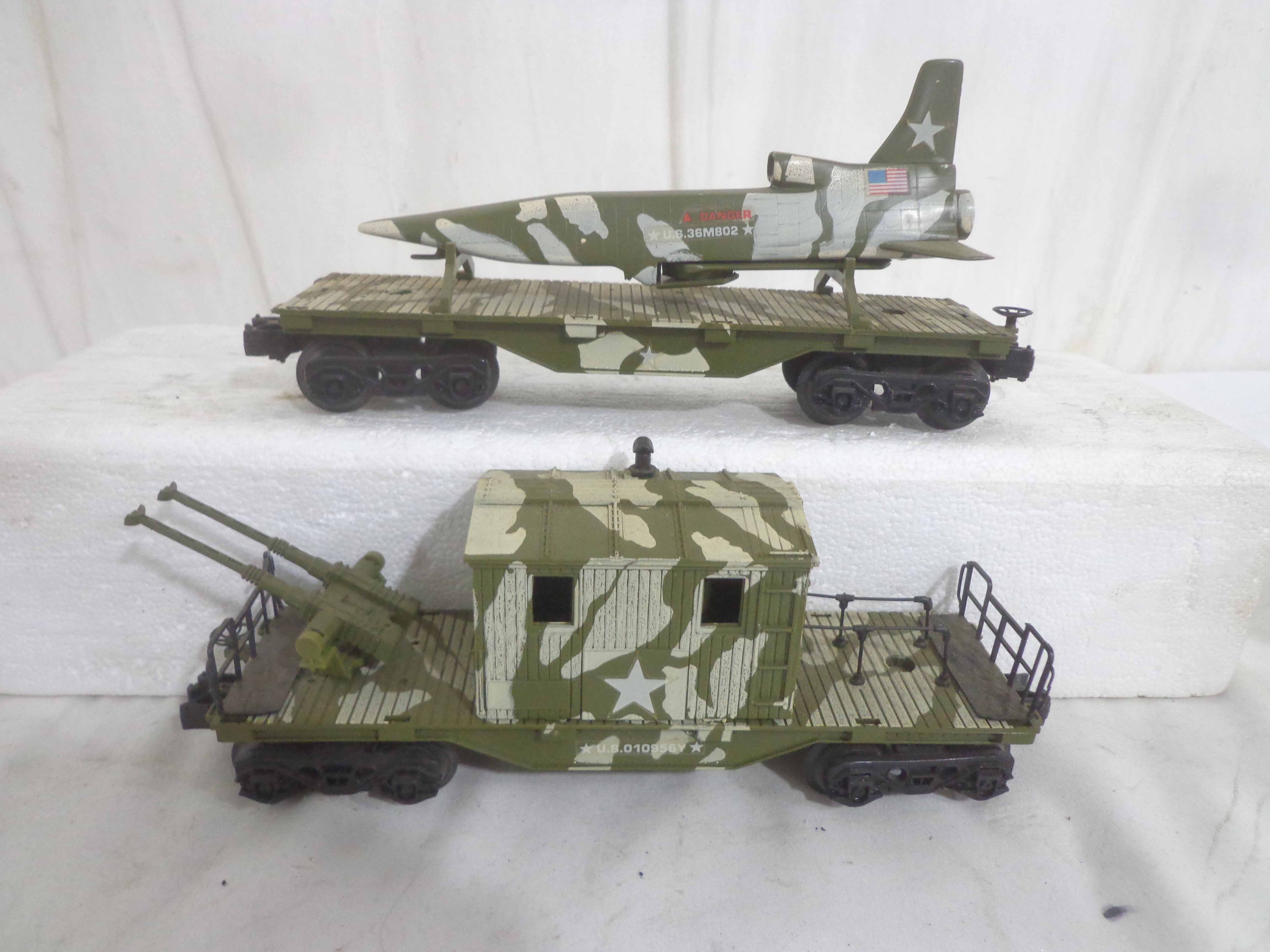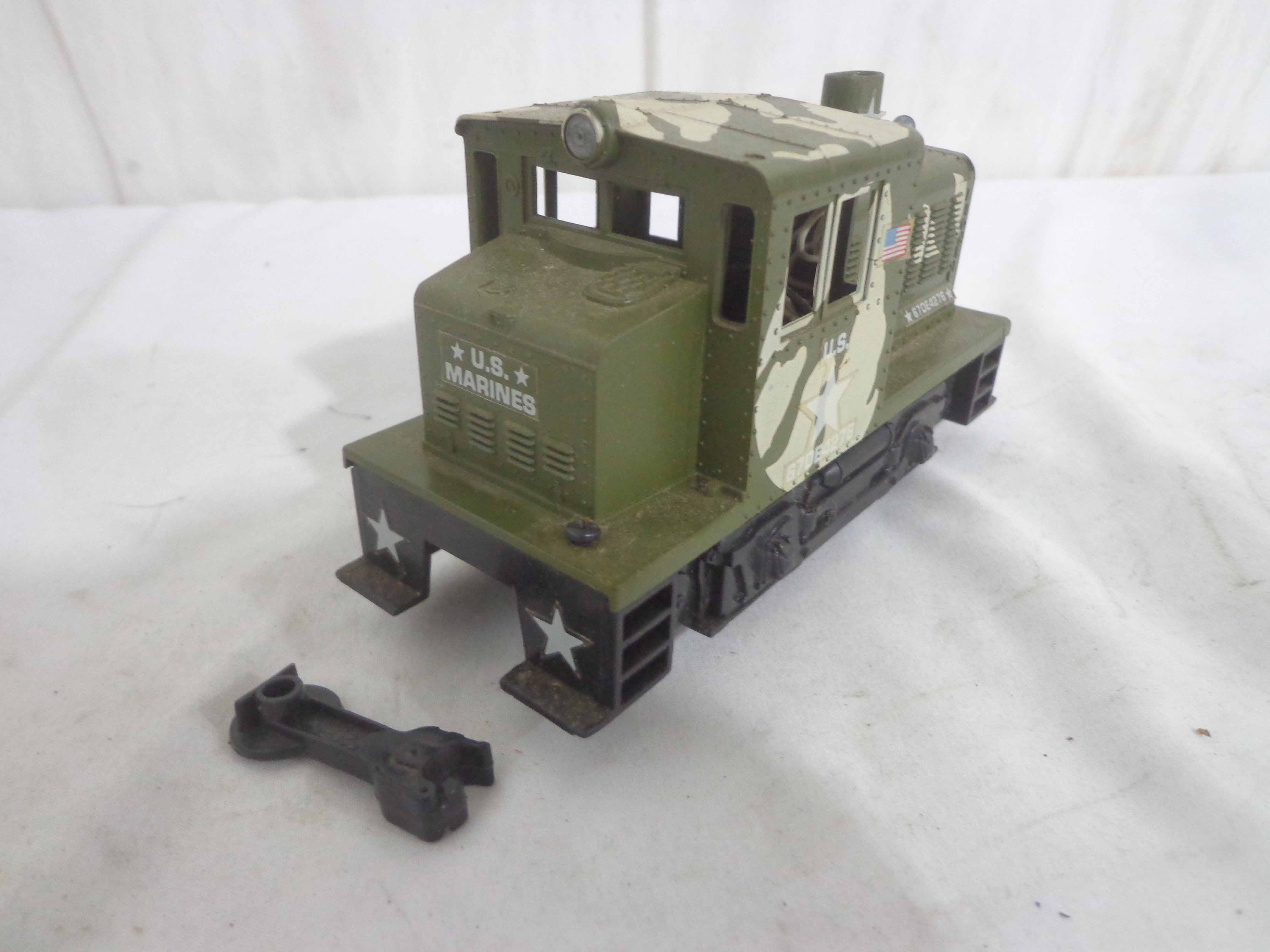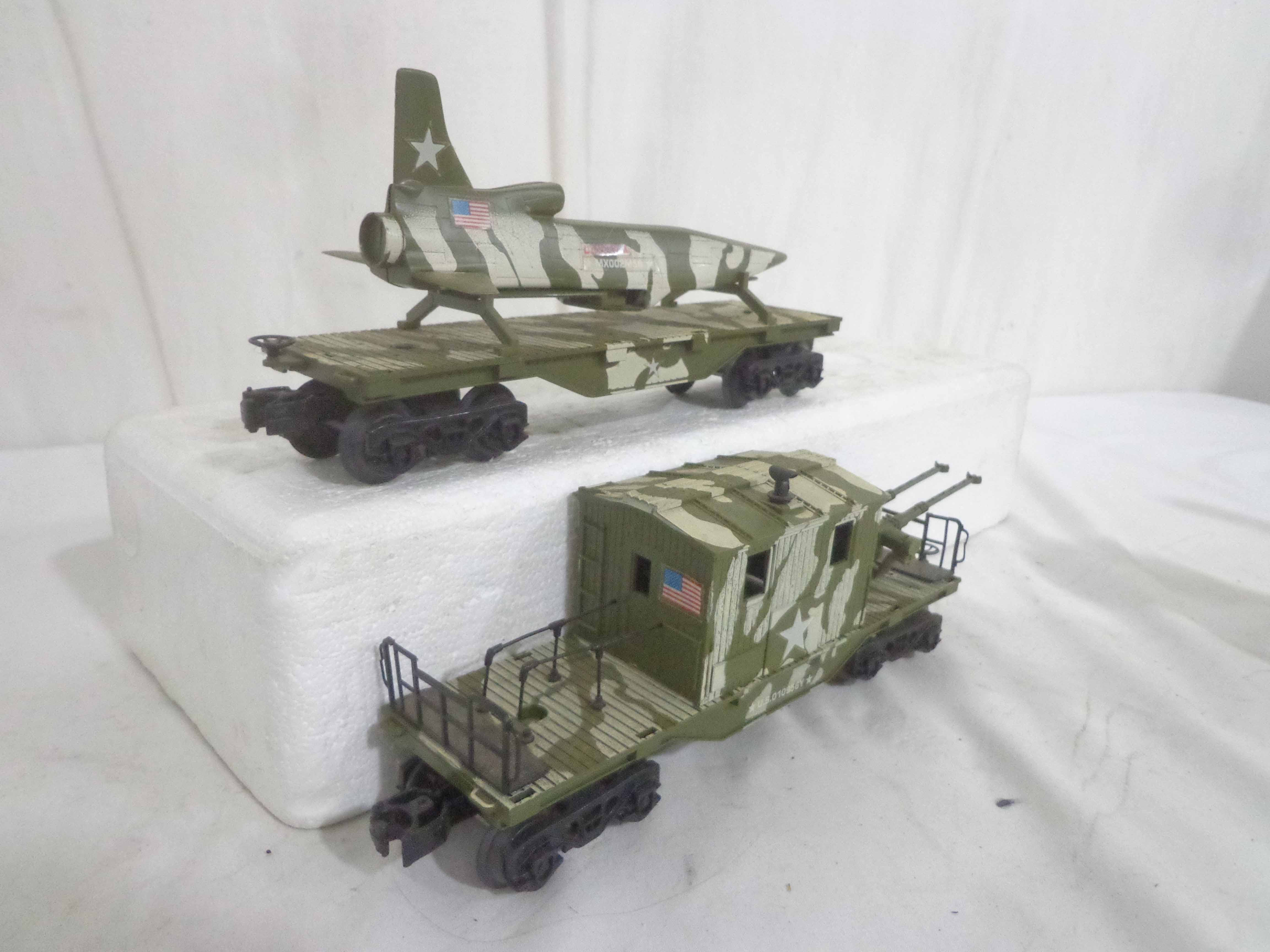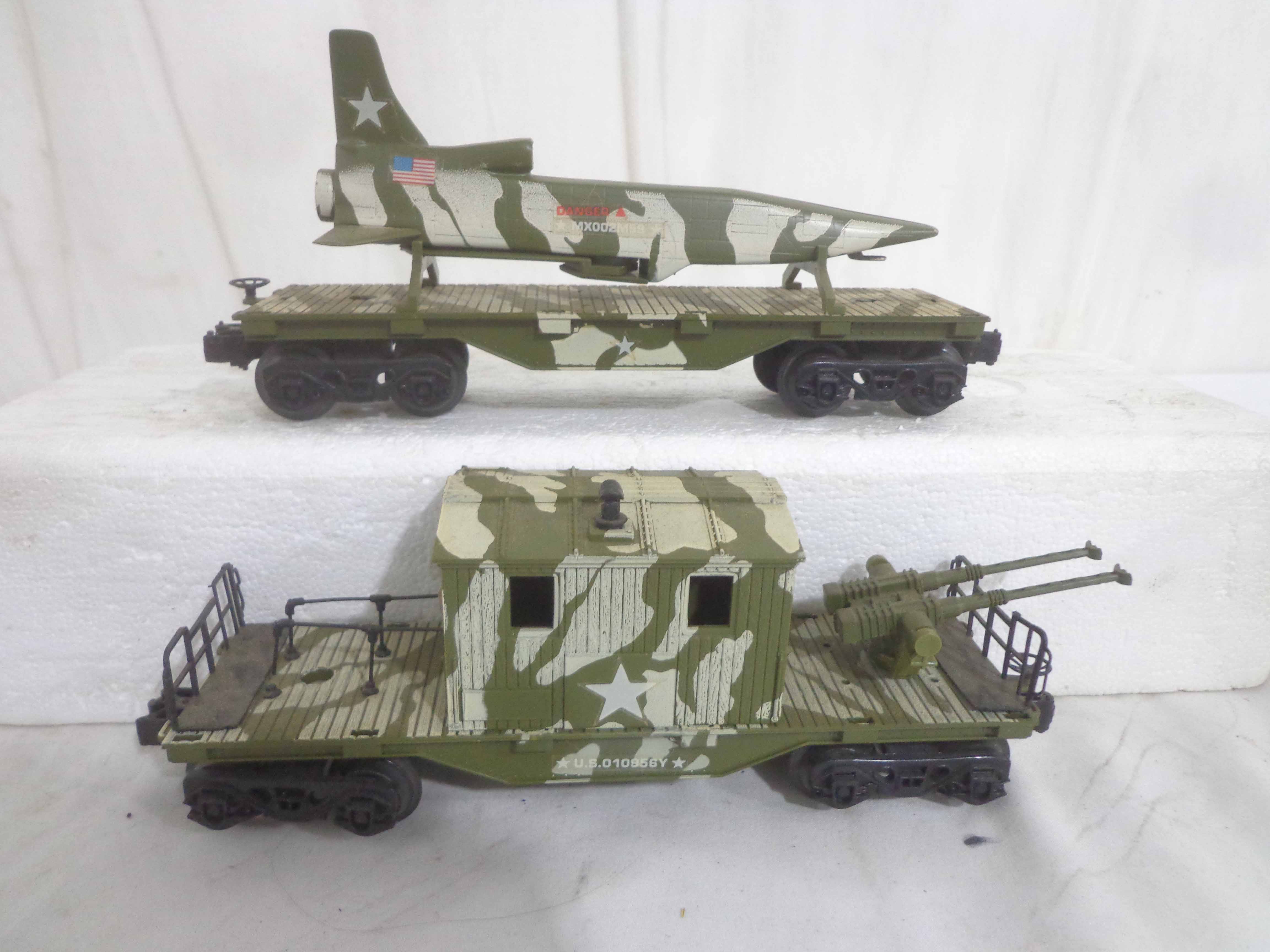 These are the Lionel #1355 Commando Assault Train Set/#67DE4276 Military Engine and four Military Cars that Lionel made in the 1980s. No Boxes Examine very closely; what is pictured is what you will receive. Please add $50.00 for US-48 Shipping and Insurance (more west of the Mississippi).