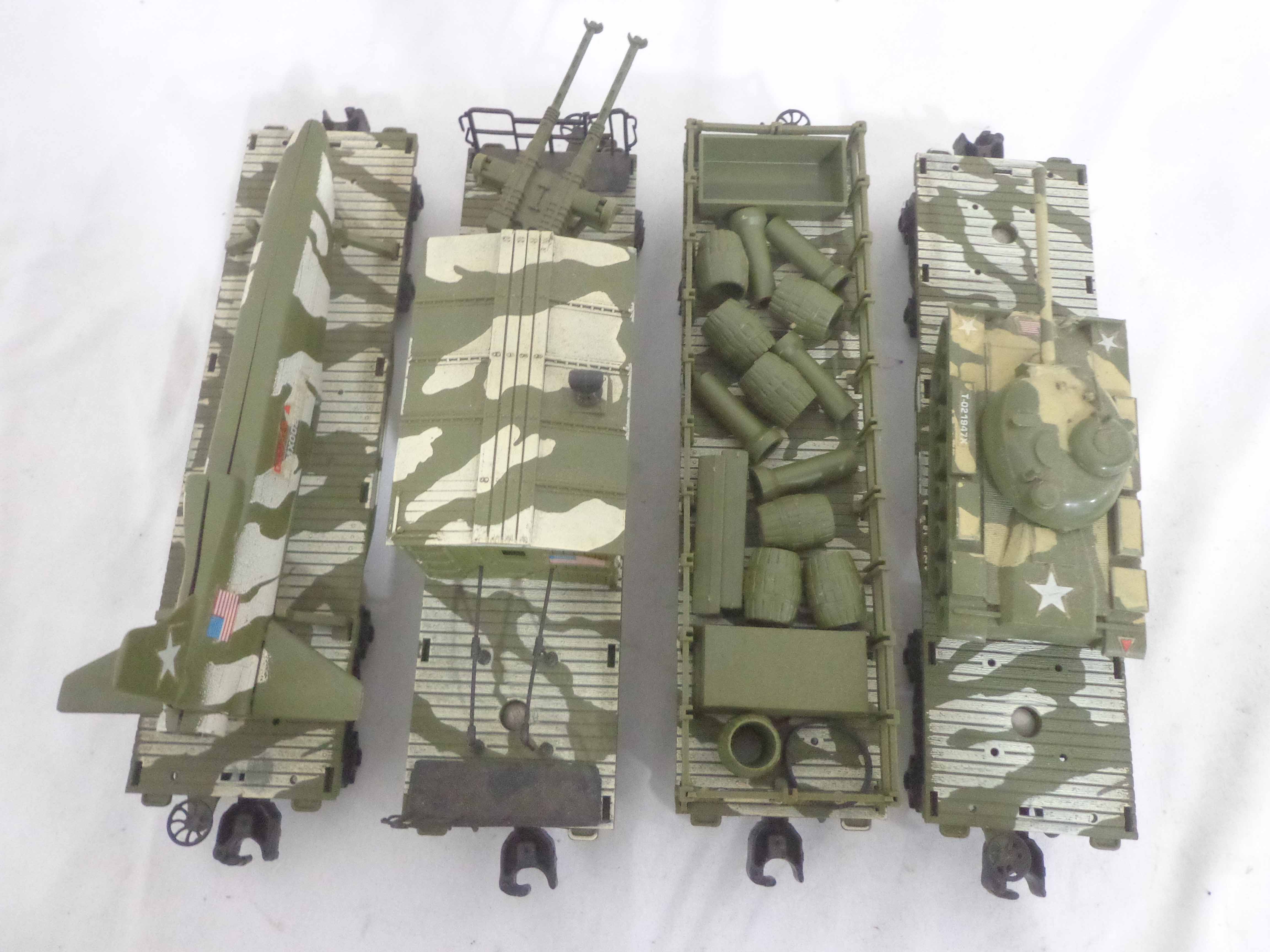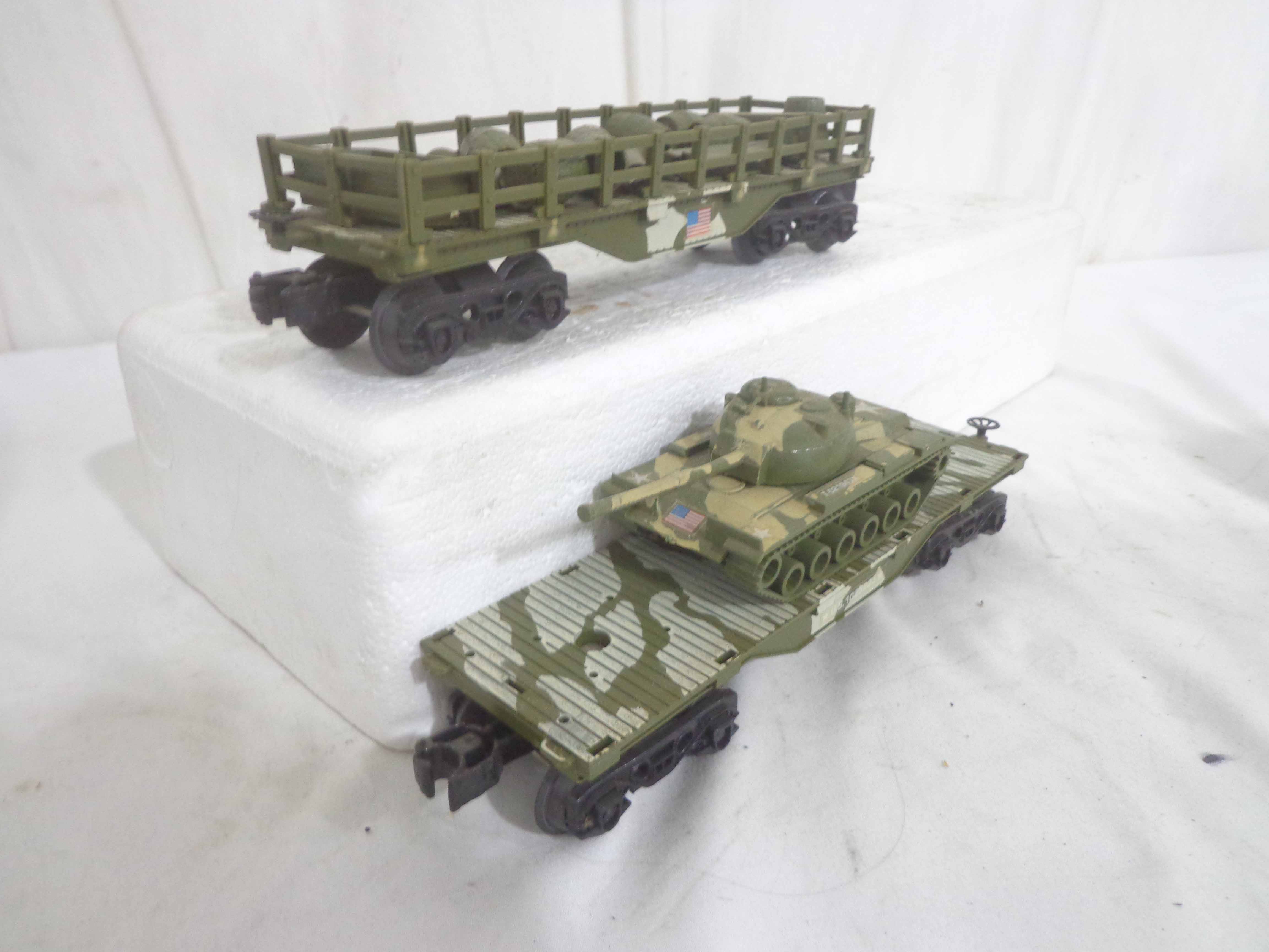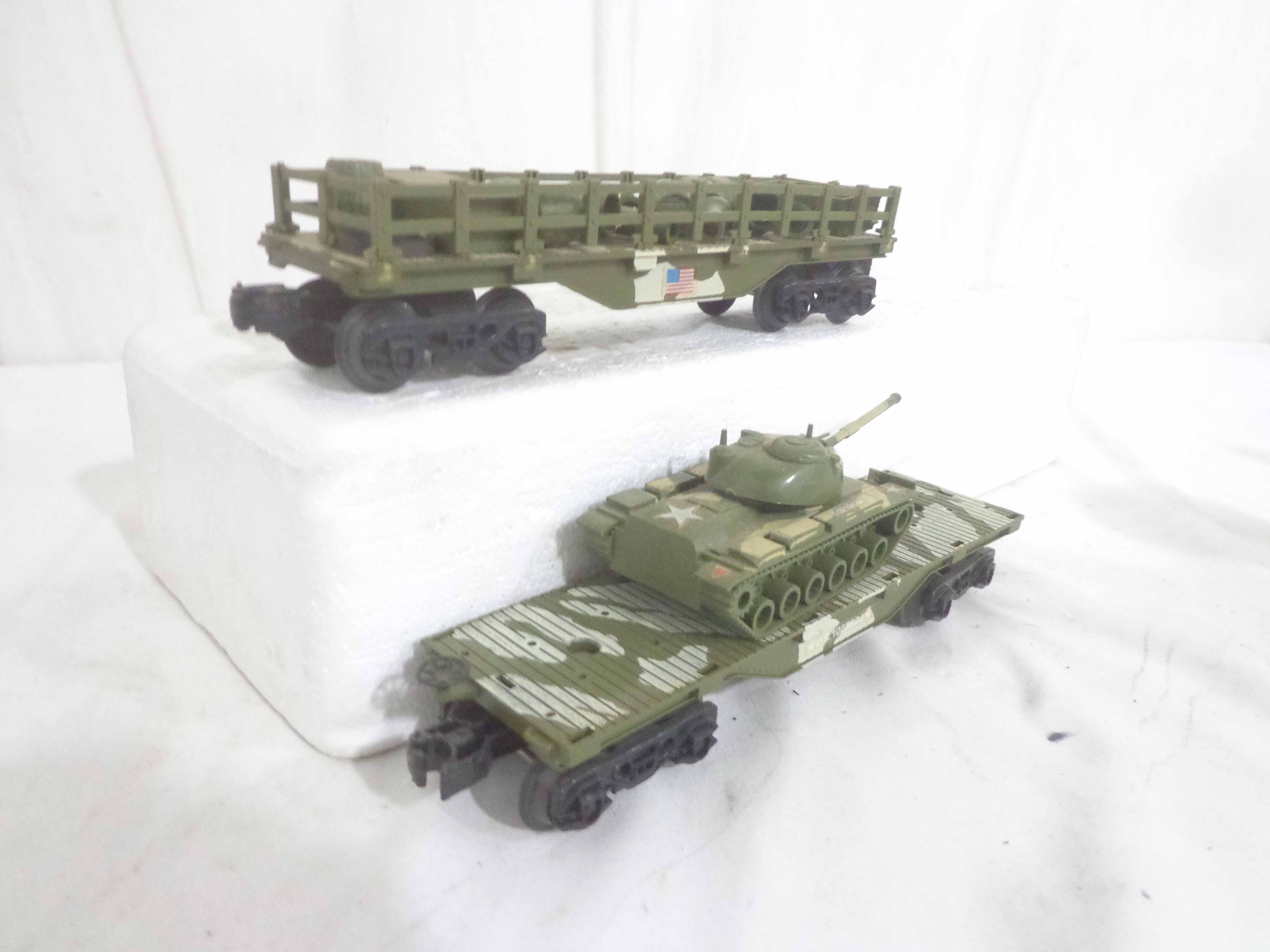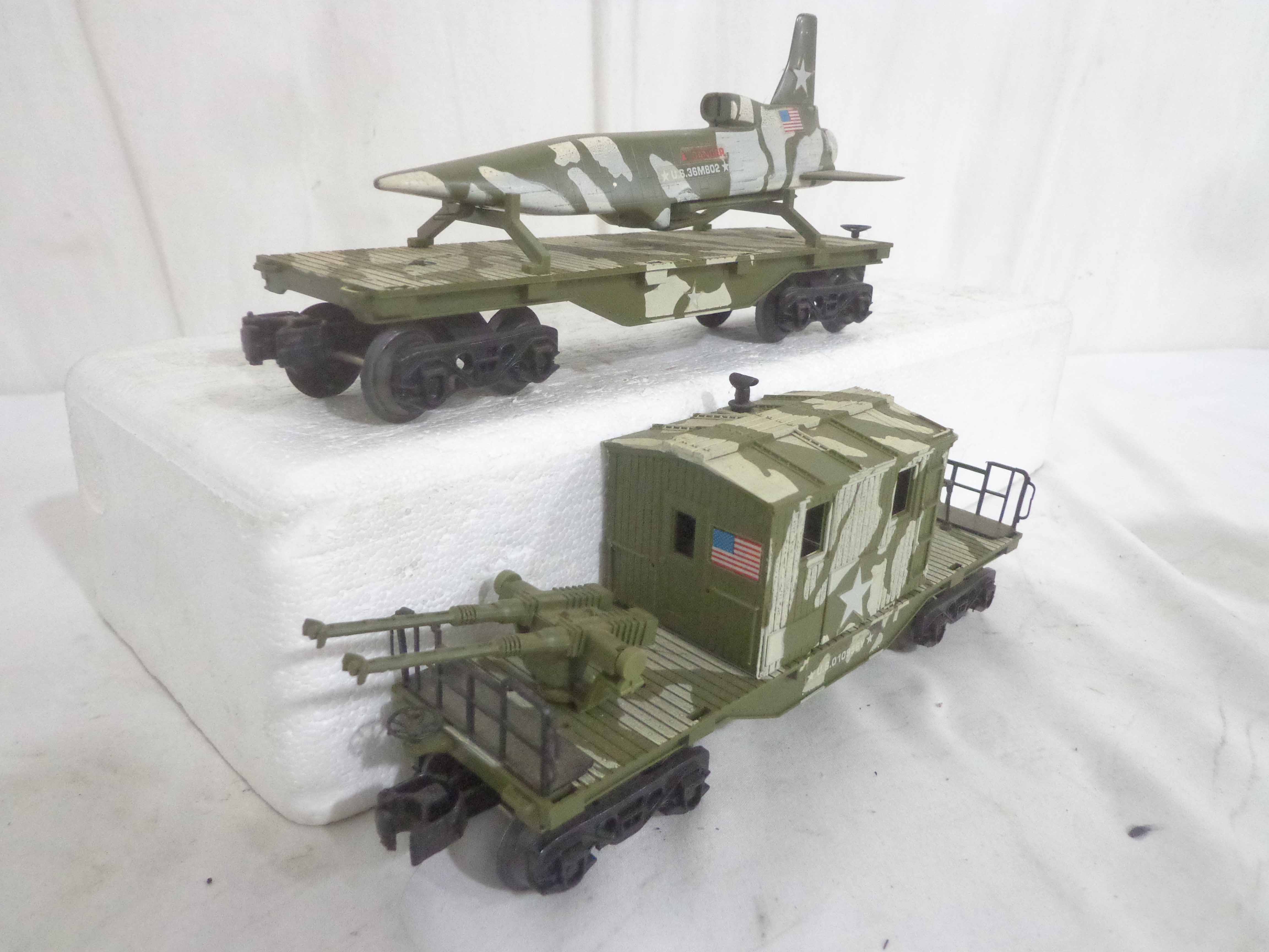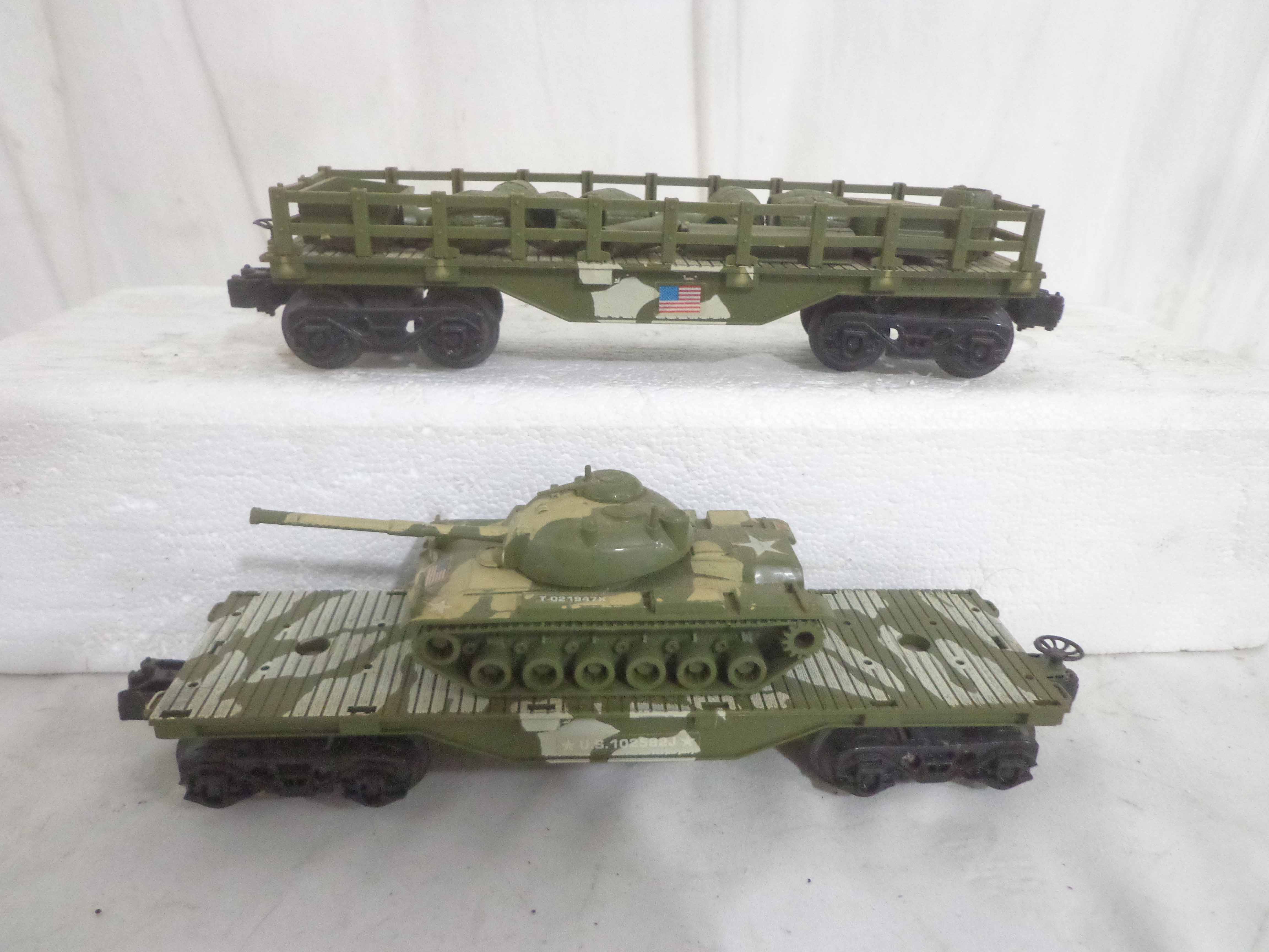 These are the Lionel #1355 Commando Assault Train Set/#67DE4276 Military Engine and four Military Cars that Lionel made in the 1980s. No Boxes Examine very closely; what is pictured is what you will receive. Please add $50.00 for US-48 Shipping and Insurance (more west of the Mississippi).