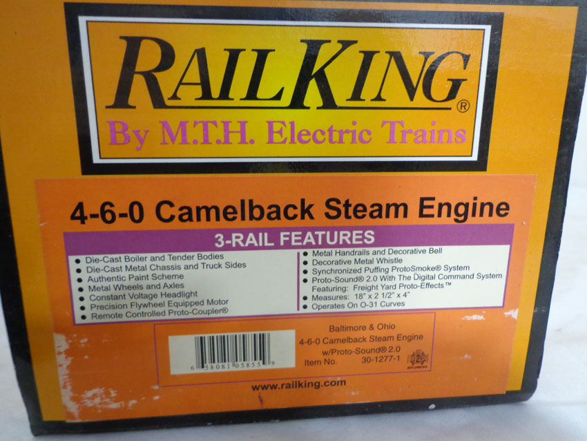 These are the #30-1277-1 Baltimore and Ohio 4-6-0 Camelback Steam Engine and Tender with Proto-sound that MTH made a few years ago. Our Opinion is that they are generally in Like New Condition. Original Box. All Original in our Opinion. Please add $45.00 for US-48 Shipping and Insurance (more west of the Mississippi)