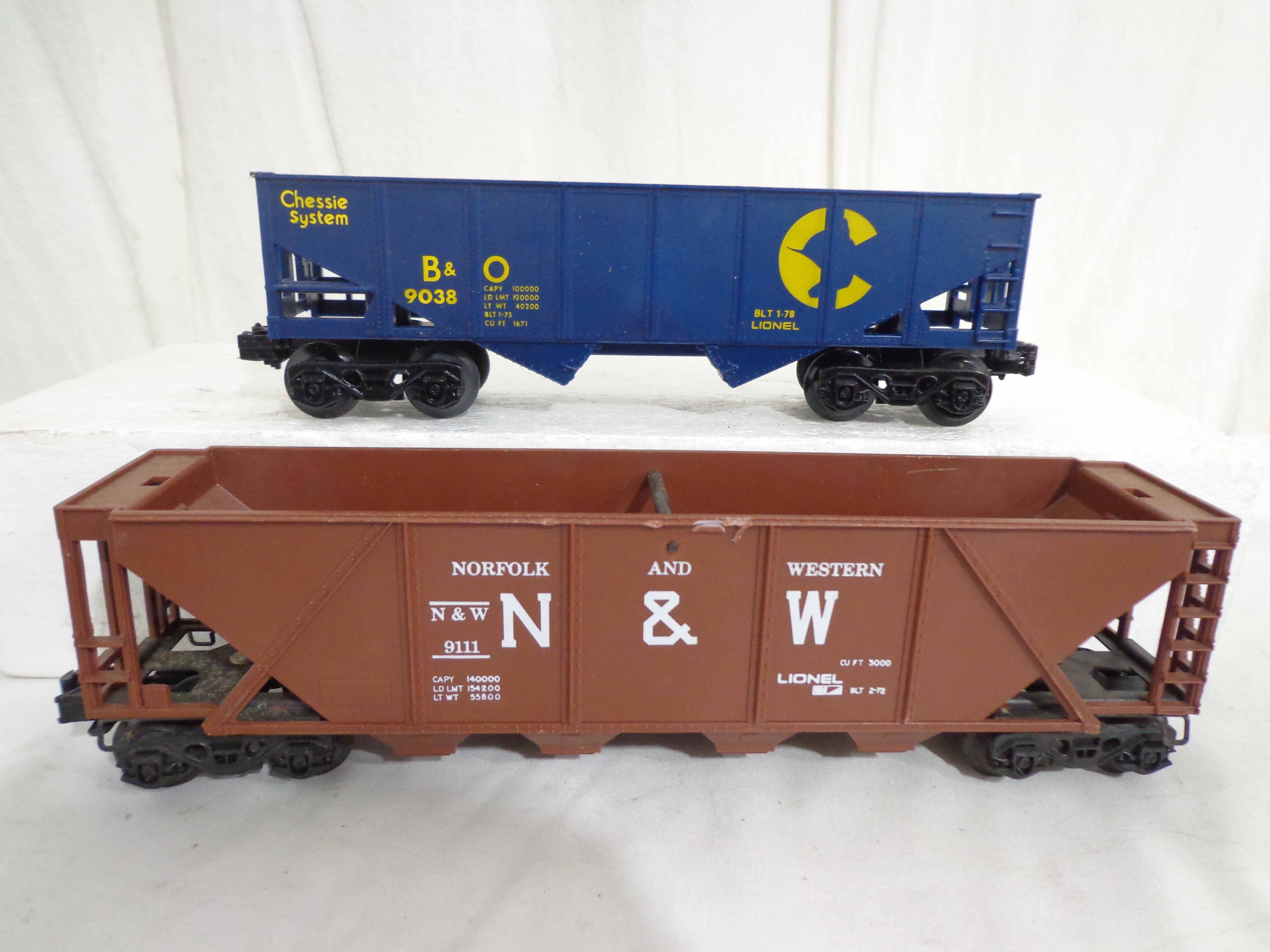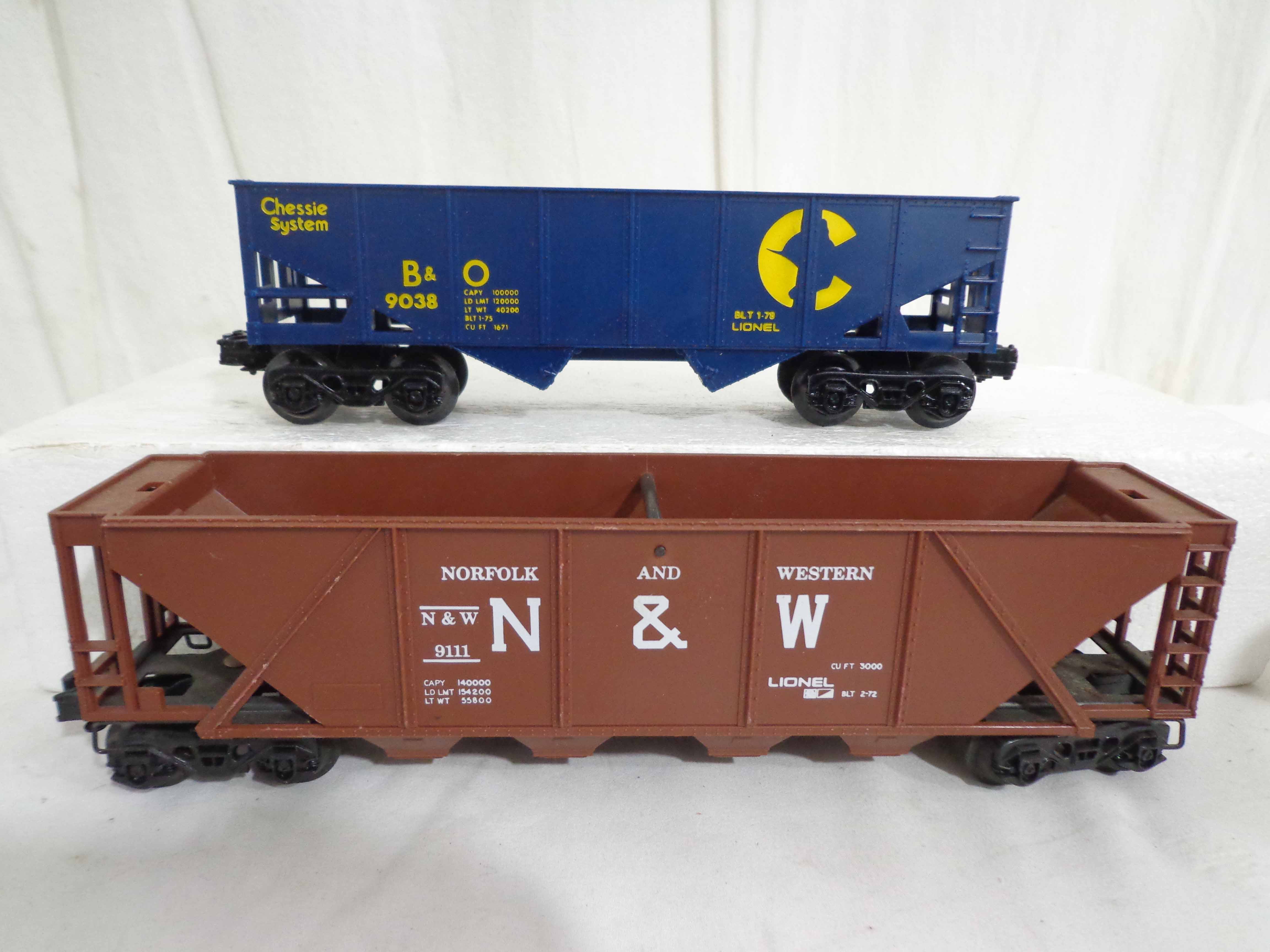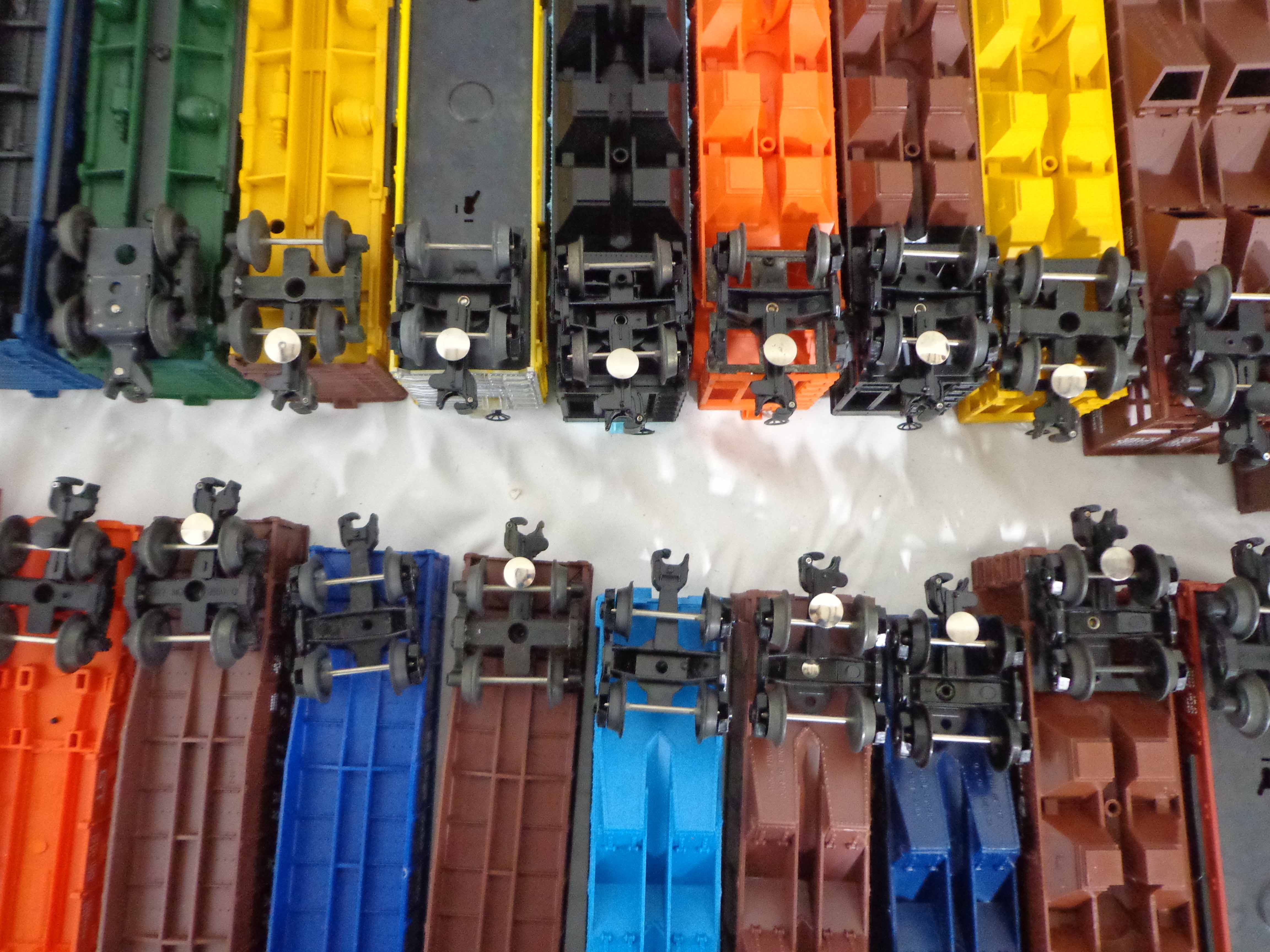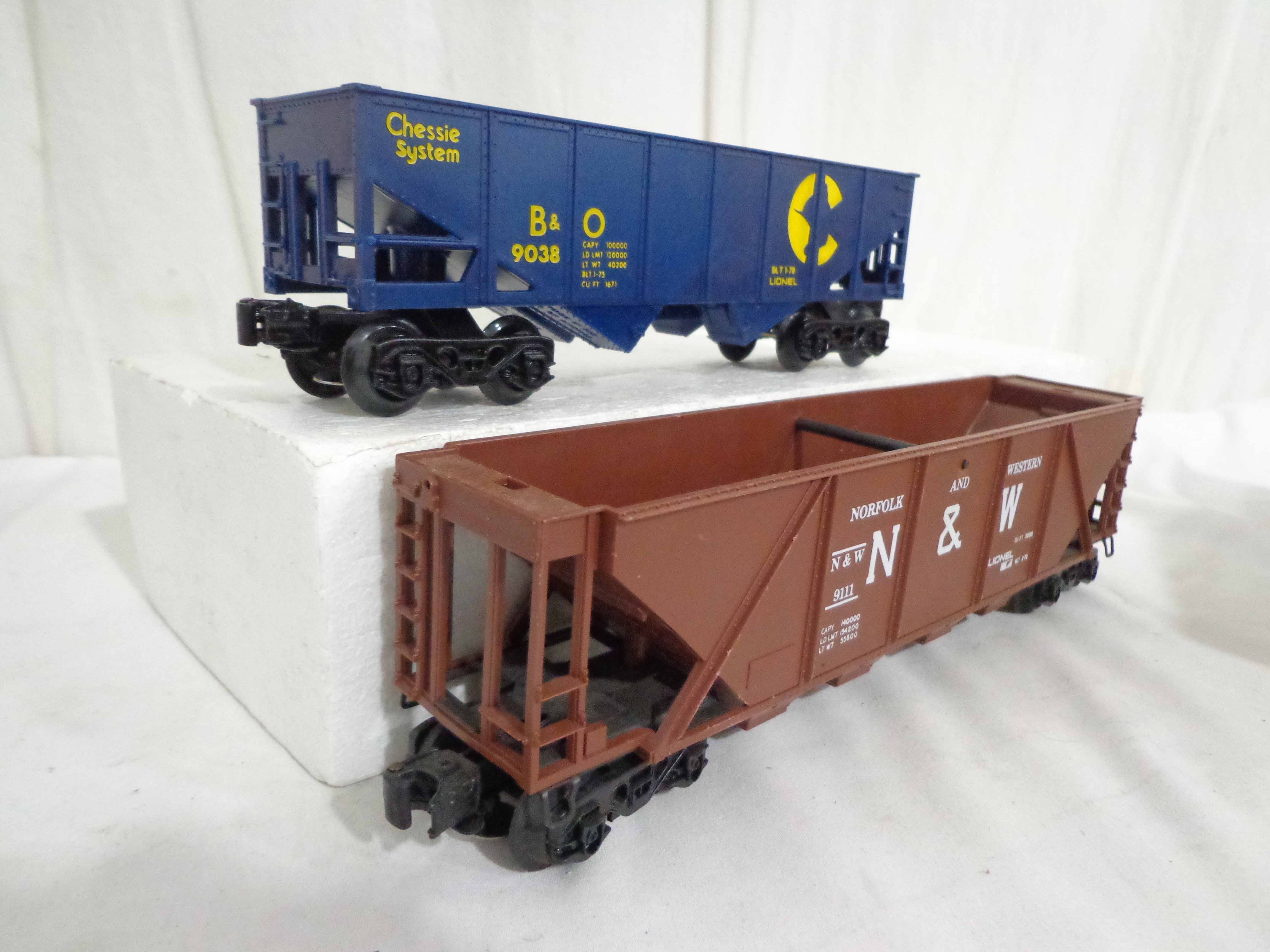 These are twenty-one Assorted Cars that Lionel made a few years ago. Our Opinion is that they are generally in Excellent Condition. No Boxes. Examine closely; what is pictured is what you will receive. Please add $60.00 for US-48 Shipping and Insurance (more west of the Mississippi). |