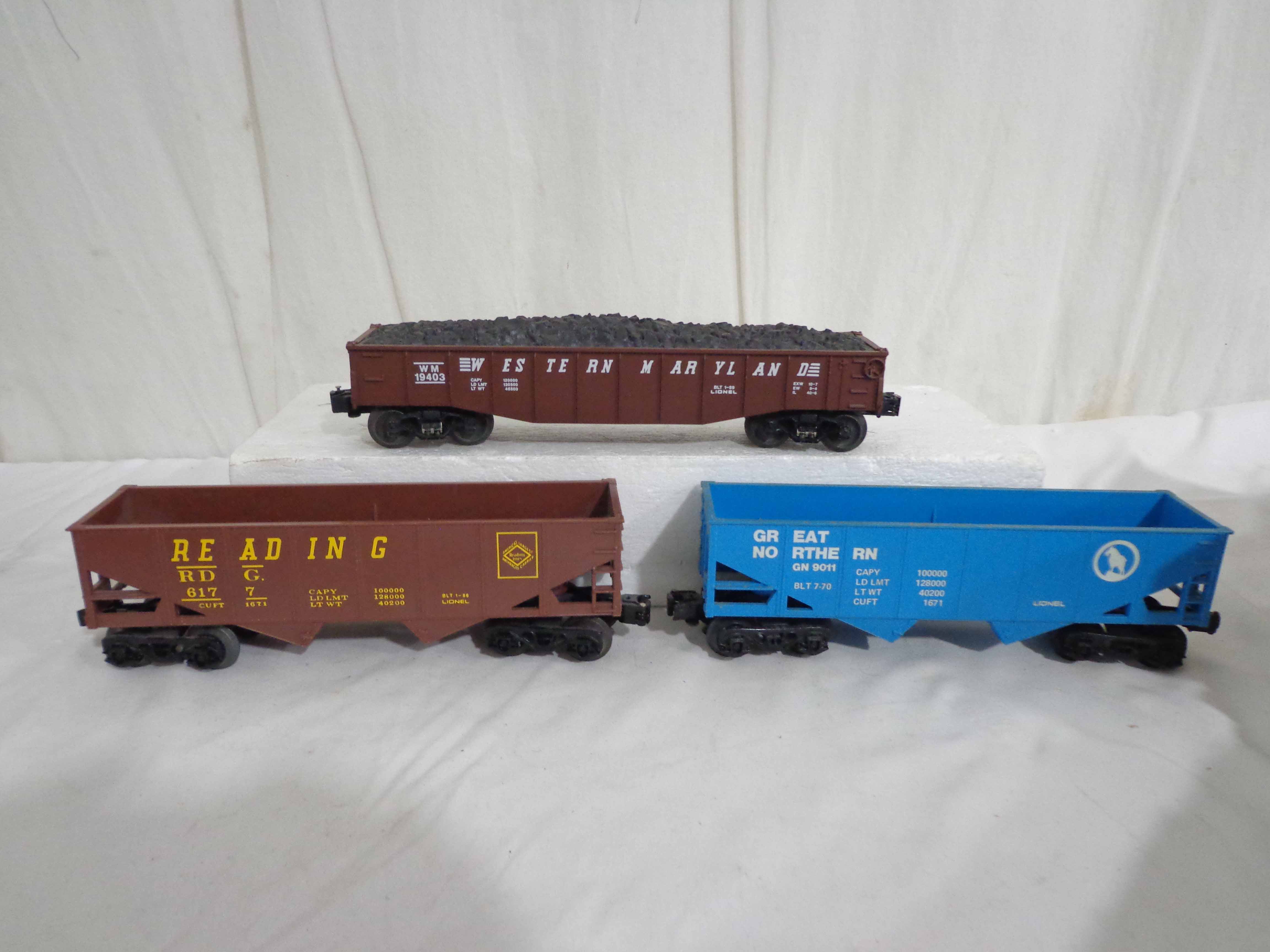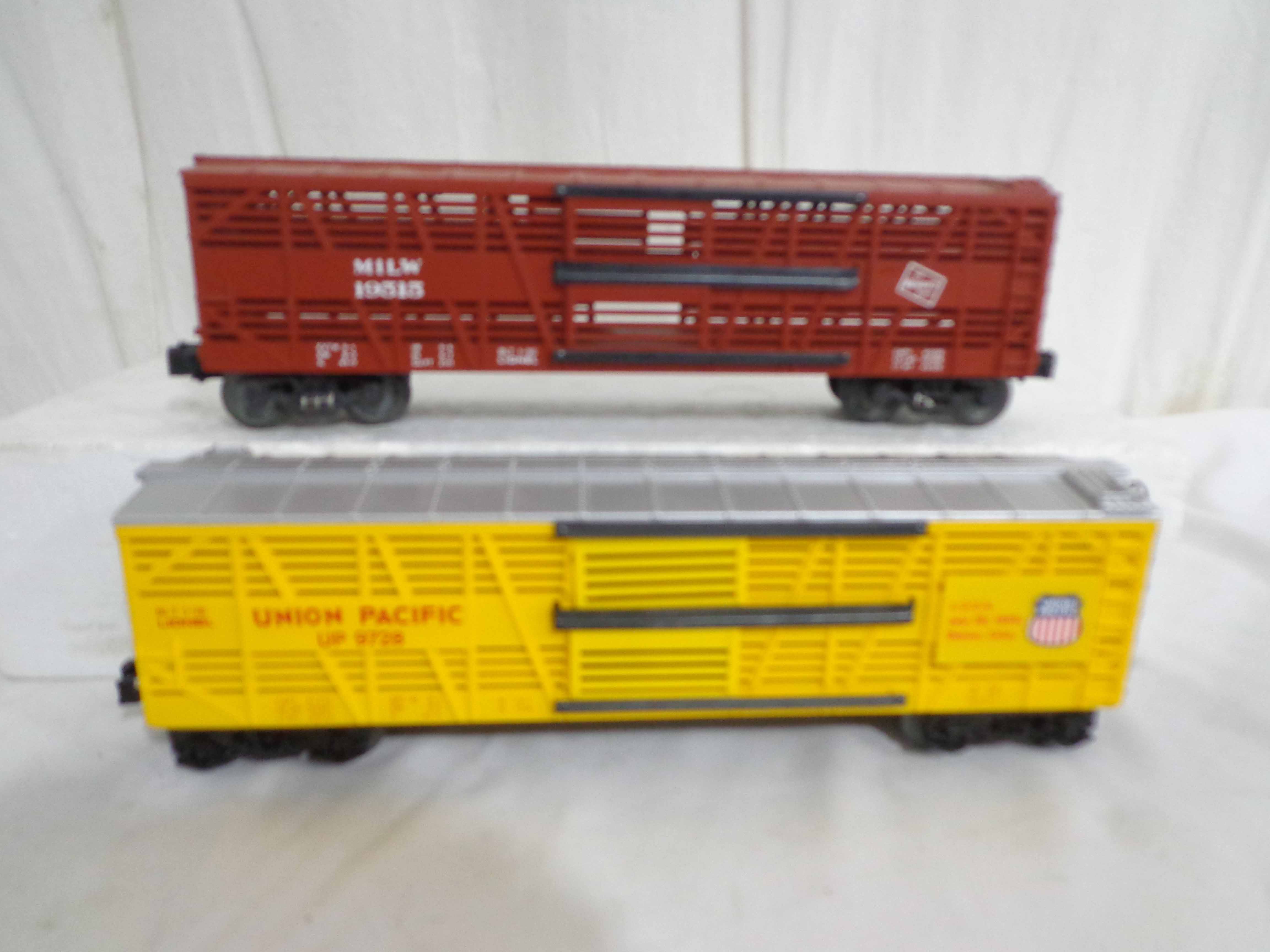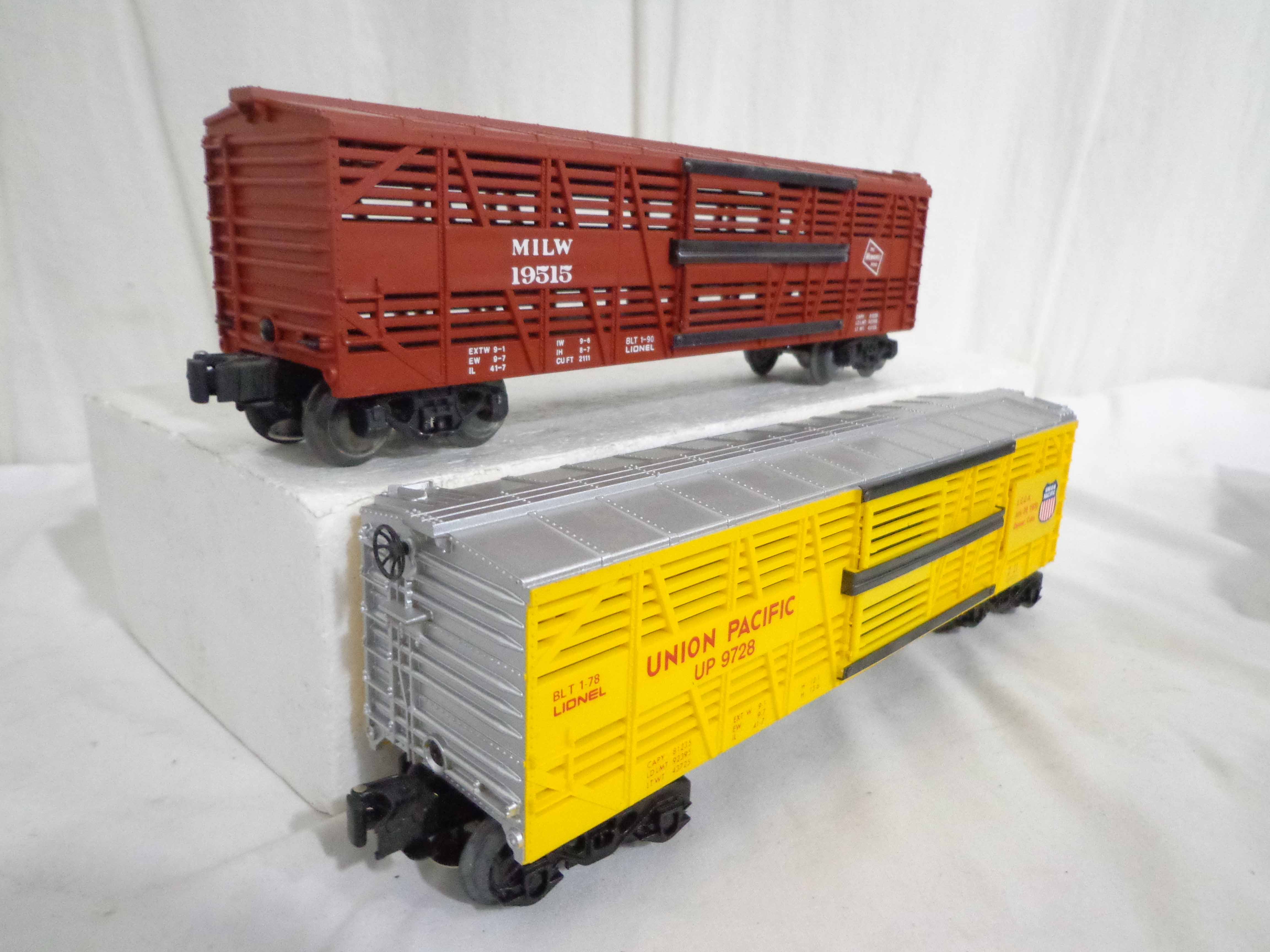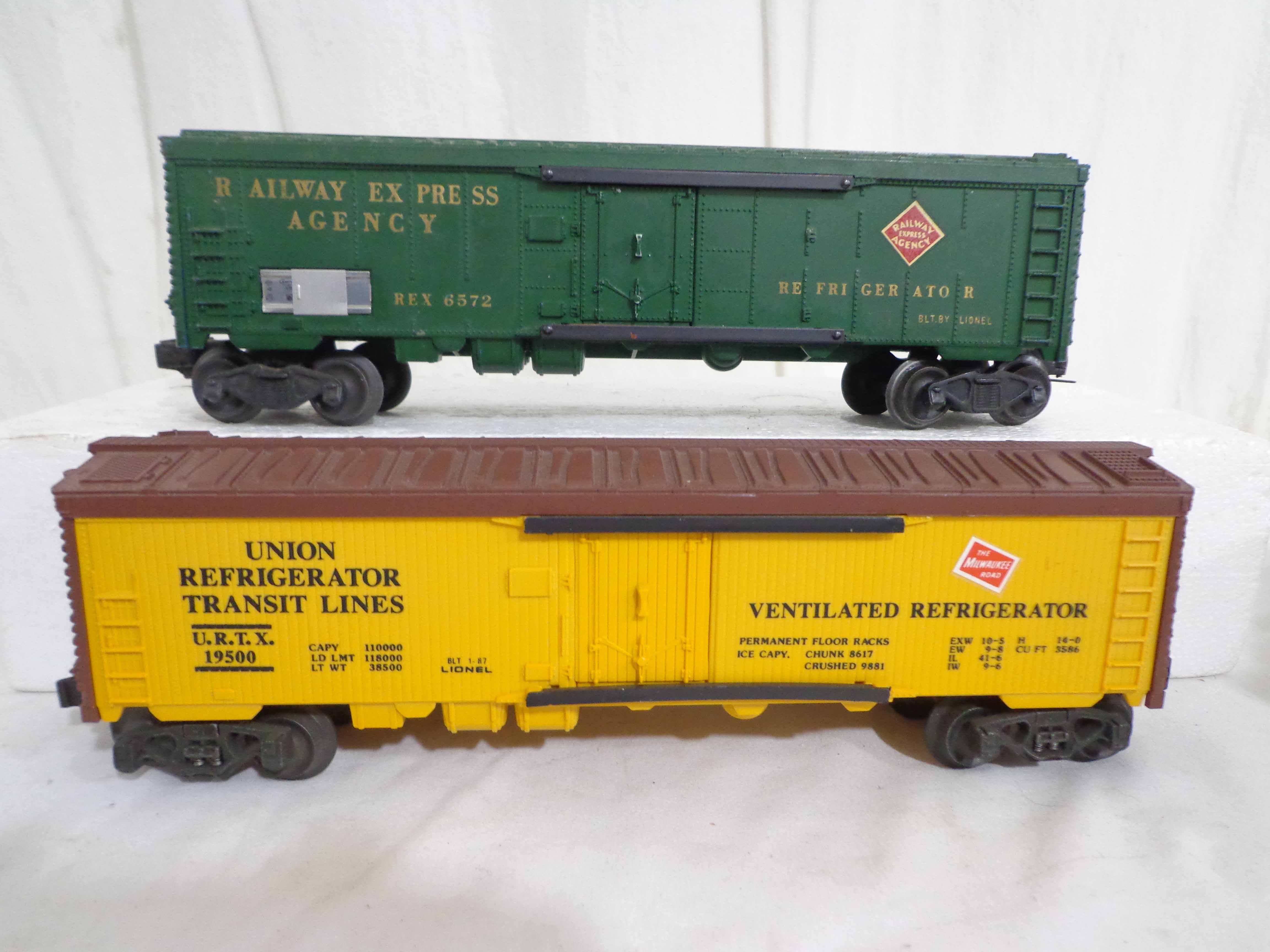 These are twenty-one Assorted Cars that Lionel made a few years ago. Our Opinion is that they are generally in Excellent Condition. No Boxes. Examine closely; what is pictured is what you will receive. Please add $60.00 for US-48 Shipping and Insurance (more west of the Mississippi). |