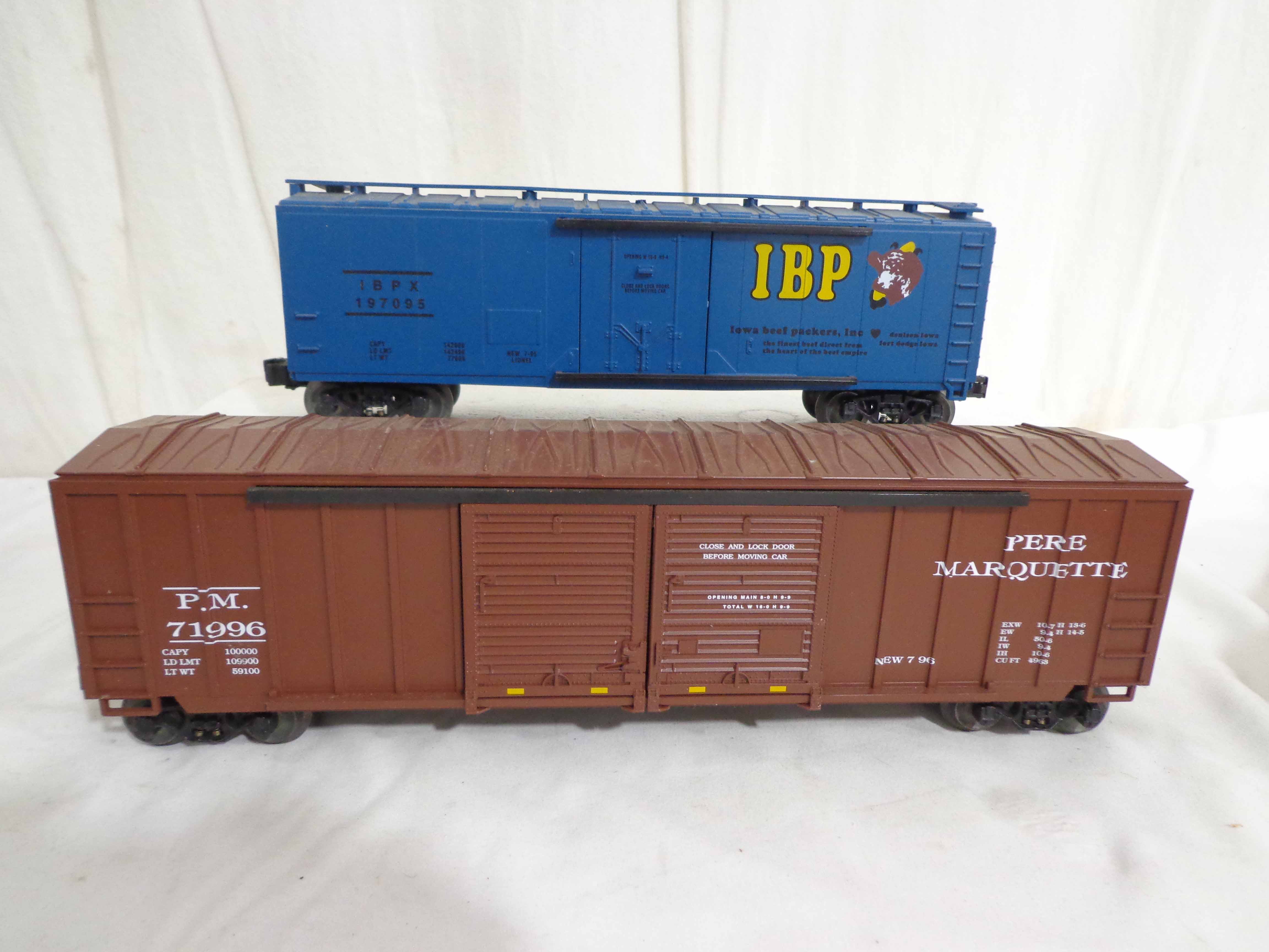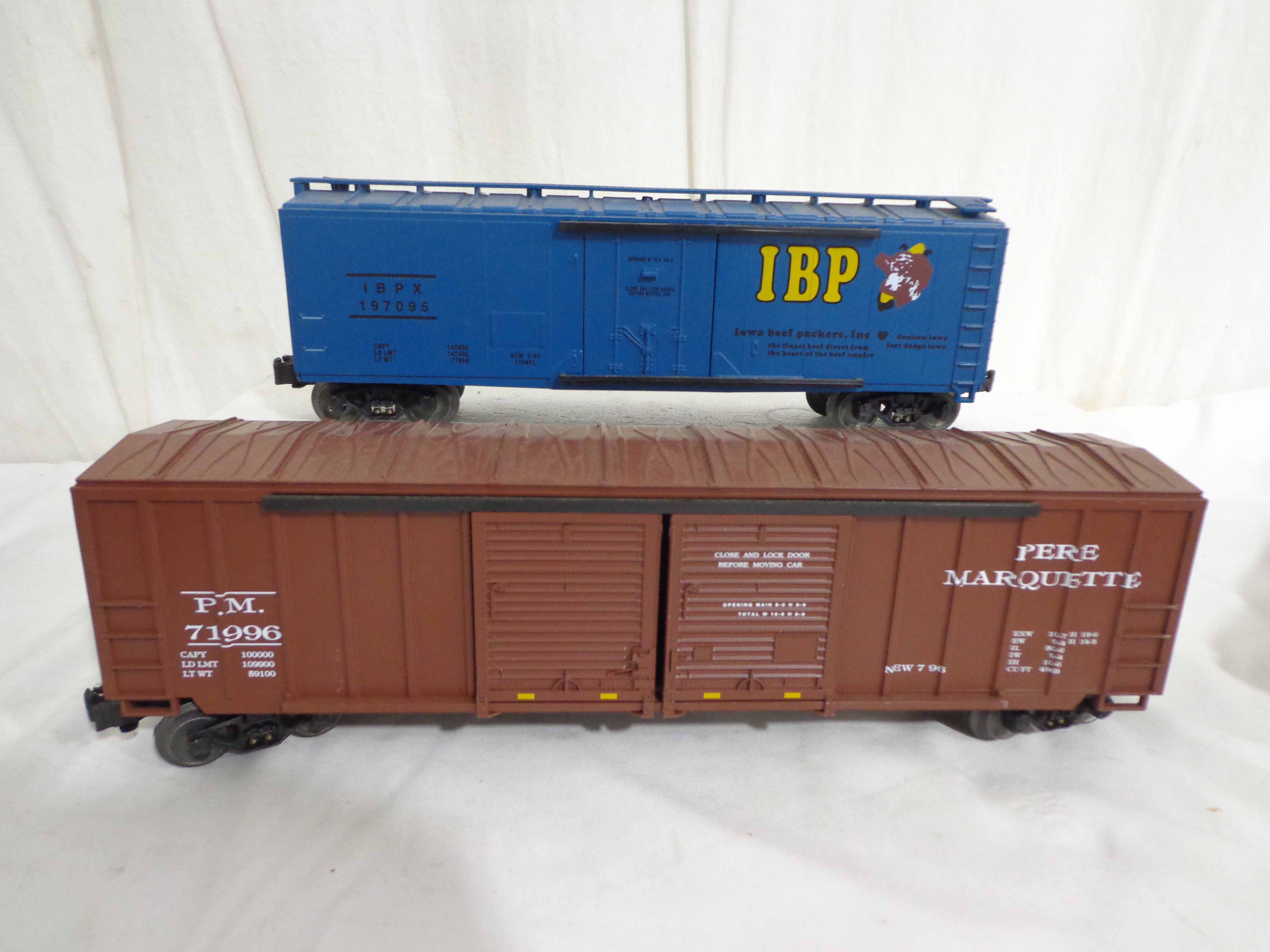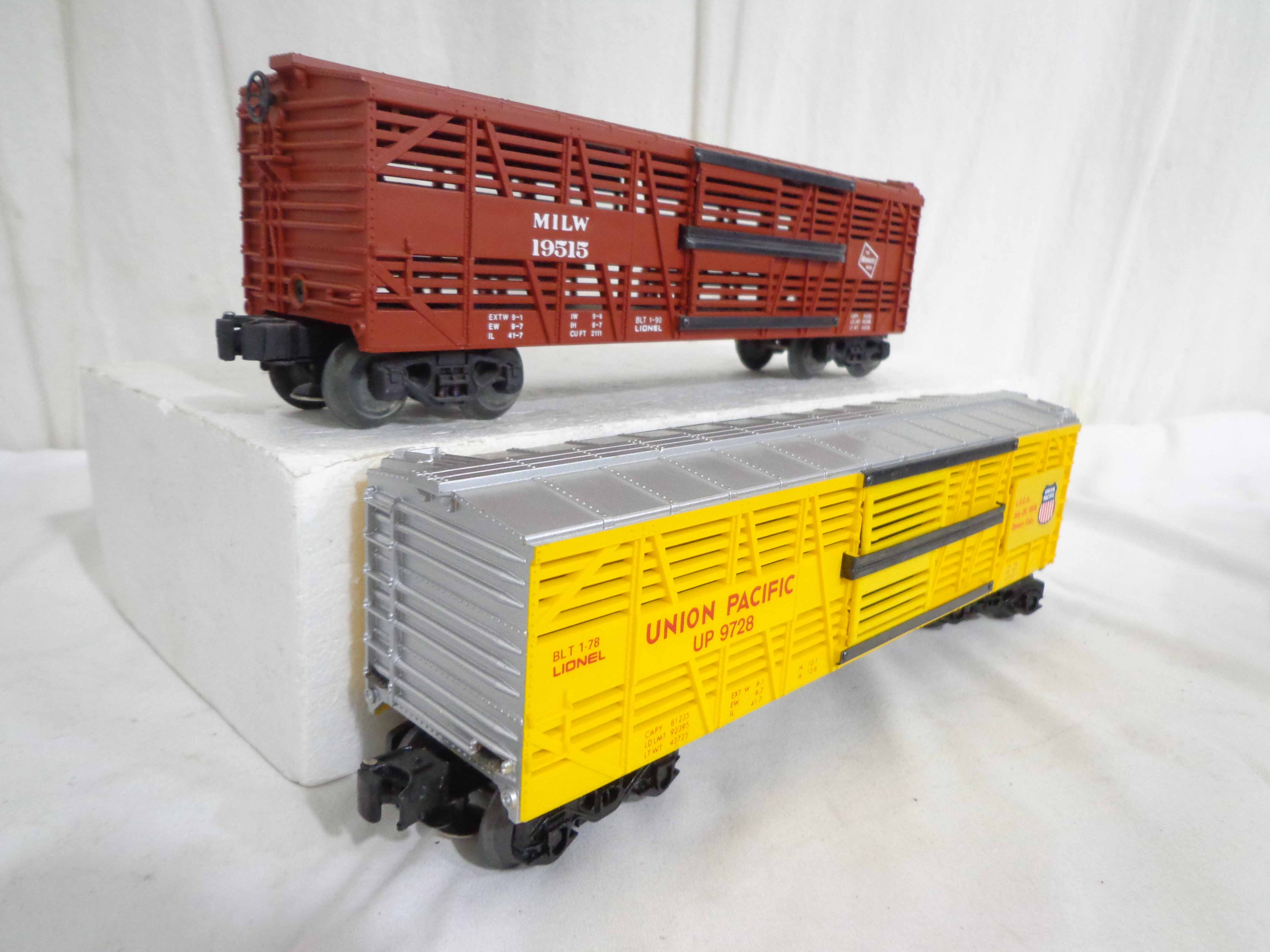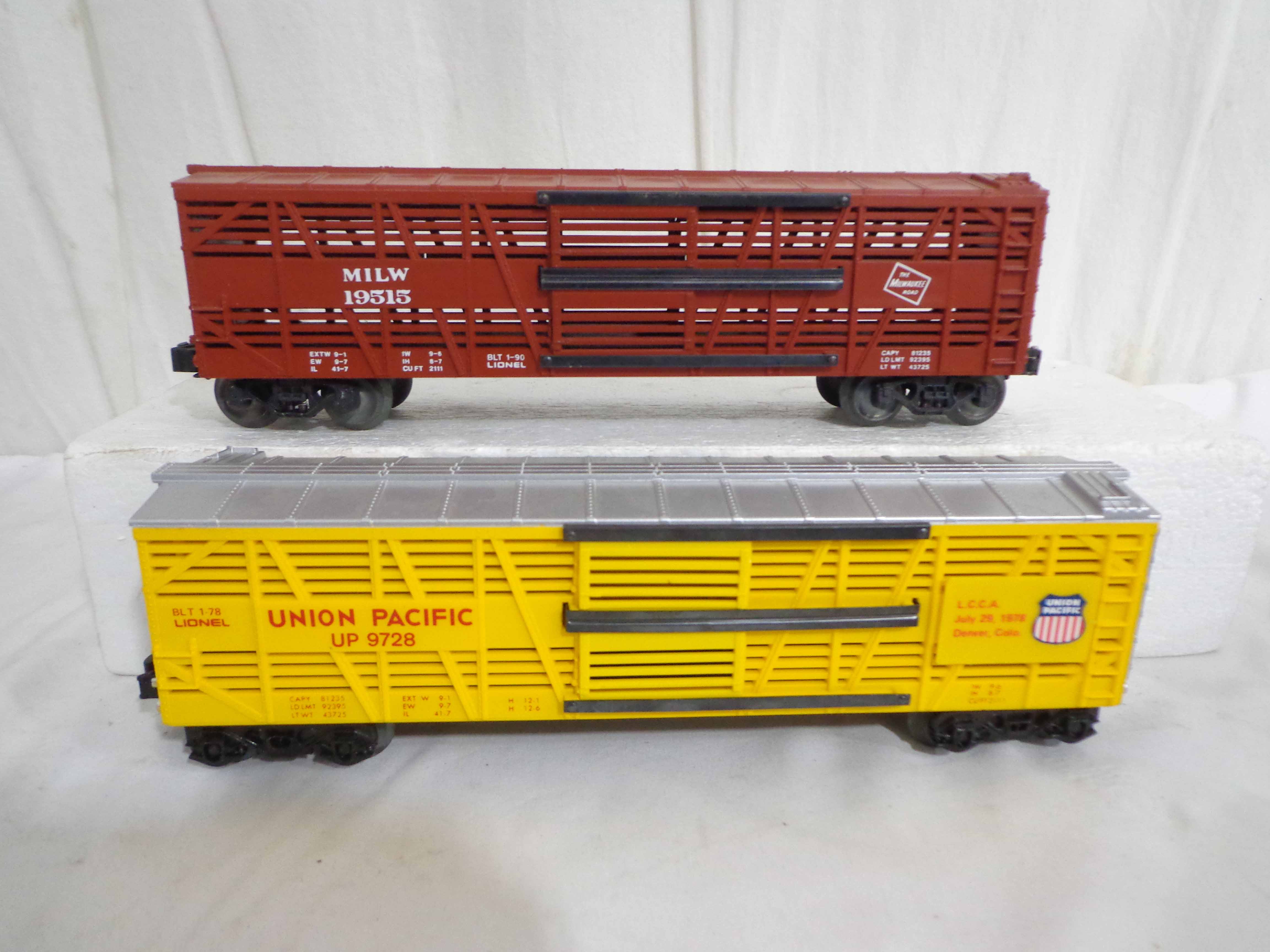 These are twenty-one Assorted Cars that Lionel made a few years ago. Our Opinion is that they are generally in Excellent Condition. No Boxes. Examine closely; what is pictured is what you will receive. Please add $60.00 for US-48 Shipping and Insurance (more west of the Mississippi). |