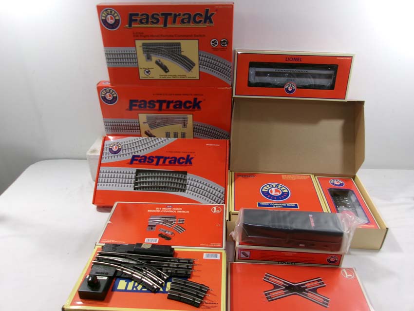 Lionel #35167 PRR Diner Car and 8 Assorted Fastrack Accessories & Command Control Set/OBs