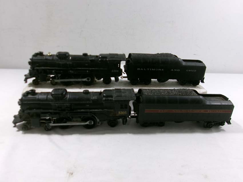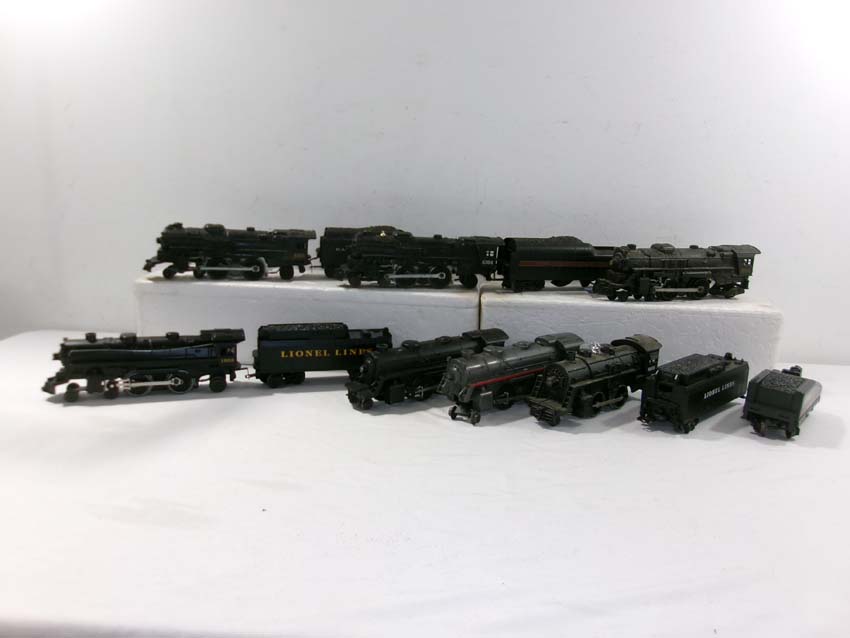 These are the #8305 MR 4-4-2 Steam Engine & Tender, the #8304 B&O 4-4-2 Steam Engine & Tender, the #1058 LL 4-4-2 Steam Engine & Tender, the #8204 4-4-2 Steam Engine, the #8042 2-4-2 Steam Engine, the #8902 2-4-0 Steam Engine, the #8141 2-4-2 Steam Engine, and two Tenders that Lionel made a few years ago. Someincorrect pairings. Our Opinion is that they are generally in Excellent to Like New Condition. No Boxes. Examine closely; what is pictured is what you will receive. Please add $50.00 for US-48 Shipping and Insurance (more west of the Mississippi).
