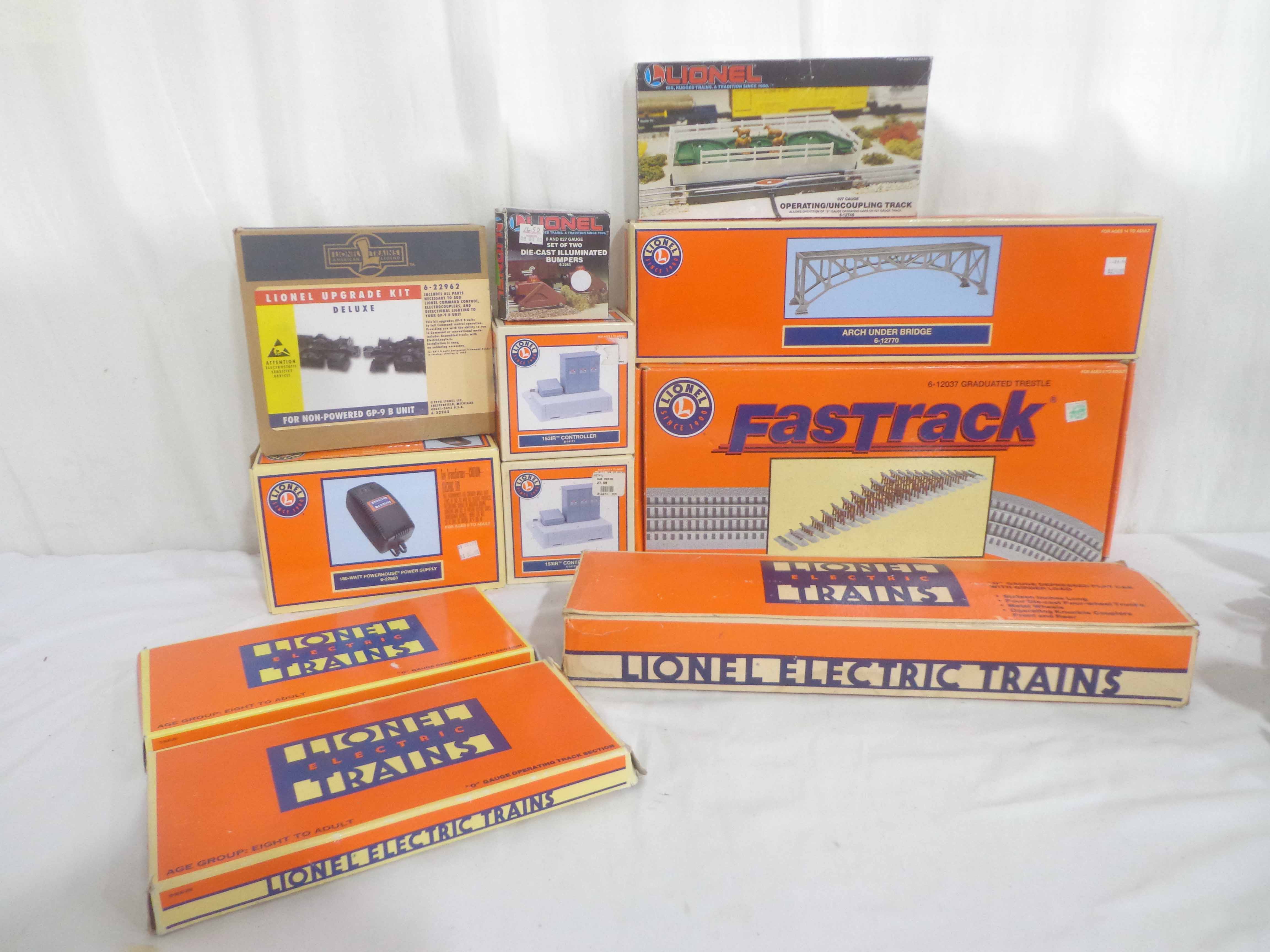 These are seventeen Assorted Accessories and Freight Car that Lionel madea few years ago. Our Opinion is that they are generally in Like New or Better Condition. Eleven Original Boxes. All Original in our Opinion. Please add $50.00 for US-48 Shipping and Insurance (more west of the Mississippi).