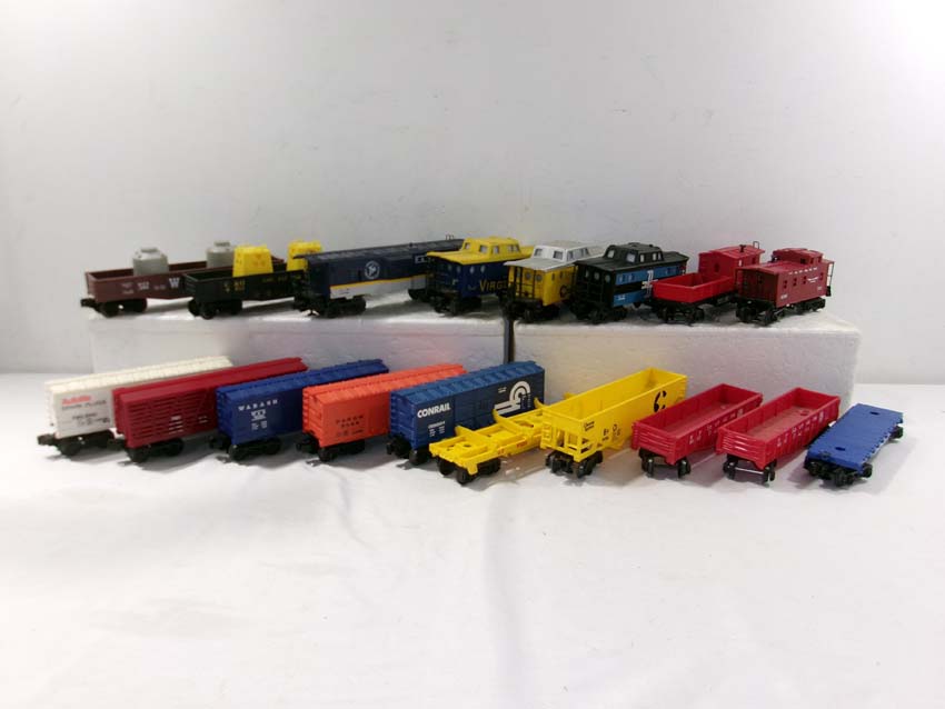 These are eighteen Assorted Freight Cars and Cabooses that Lionel made a few years ago. Our Opinion is that they are generally in Excellent Condition. No Boxes. Examine closely; what is pictured is what you will receive. Please add $60.00 for US-48 Shipping and Insurance (more west of the Mississippi).