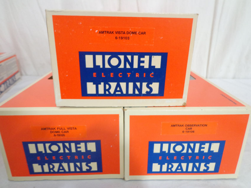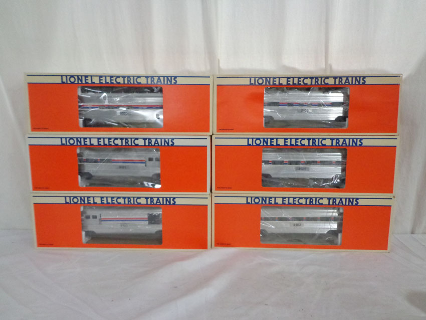 These are six #19100/19101/19102/19103/19105/19106 Amtrak Passenger Cars that Lionel made in that series in the 1980s. Our Opinion is that they are generally in Like New Condition. Original Boxes. All Original in our Opinion. Please add $50.00 for US-48 Shipping and Insurance (more west of the Mississippi).