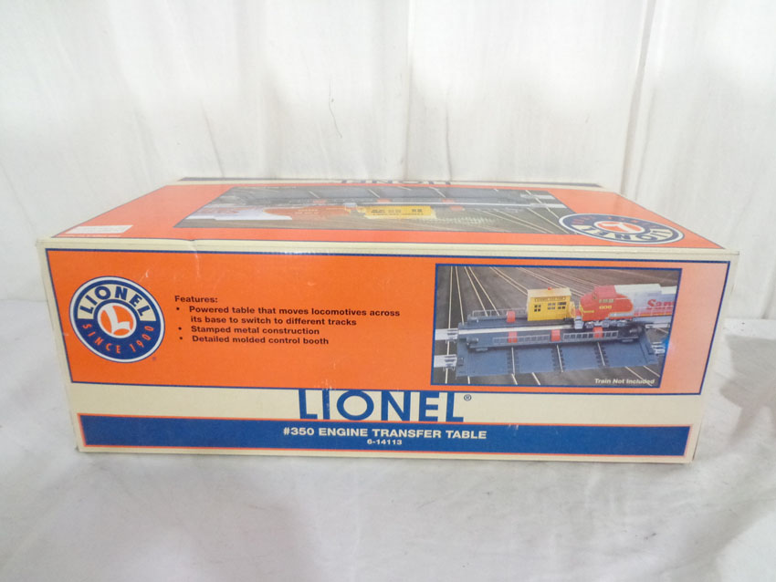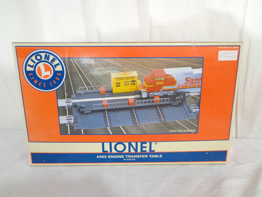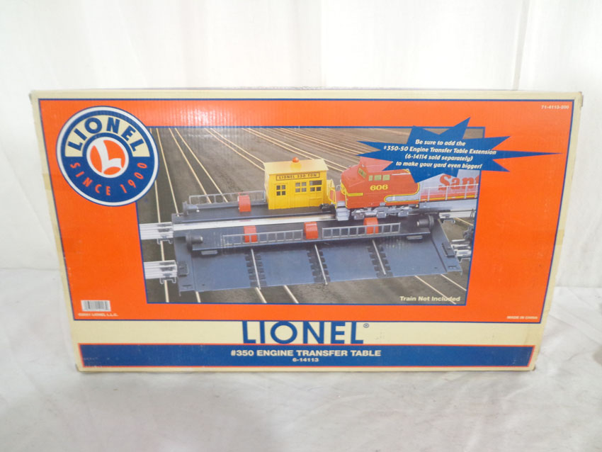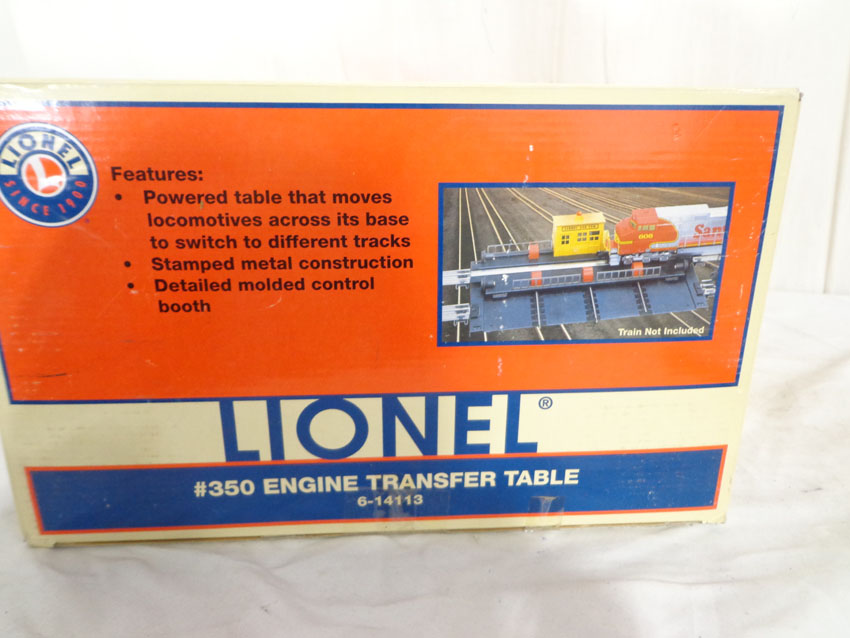 This is the #14113 Operating Engine Transfer Table #350 that Lionel made a few years ago as a remake of the 1950s accessory. Our Opinion is that it is generally in Like New Condition. Original Box. All Original in our Opinion. Please add $35.00 for US-48 Shipping and Insurance (more west of the Mississippi).