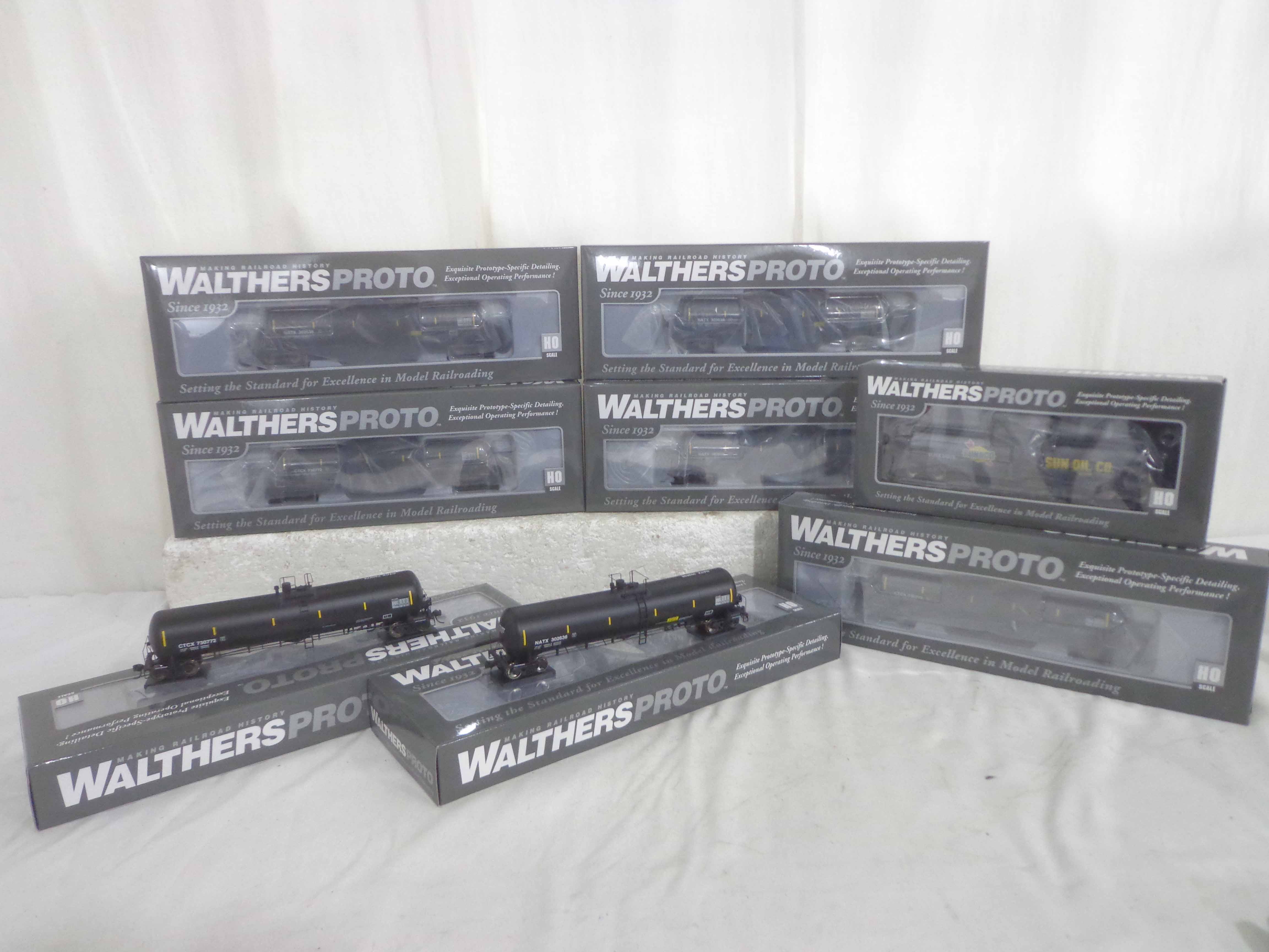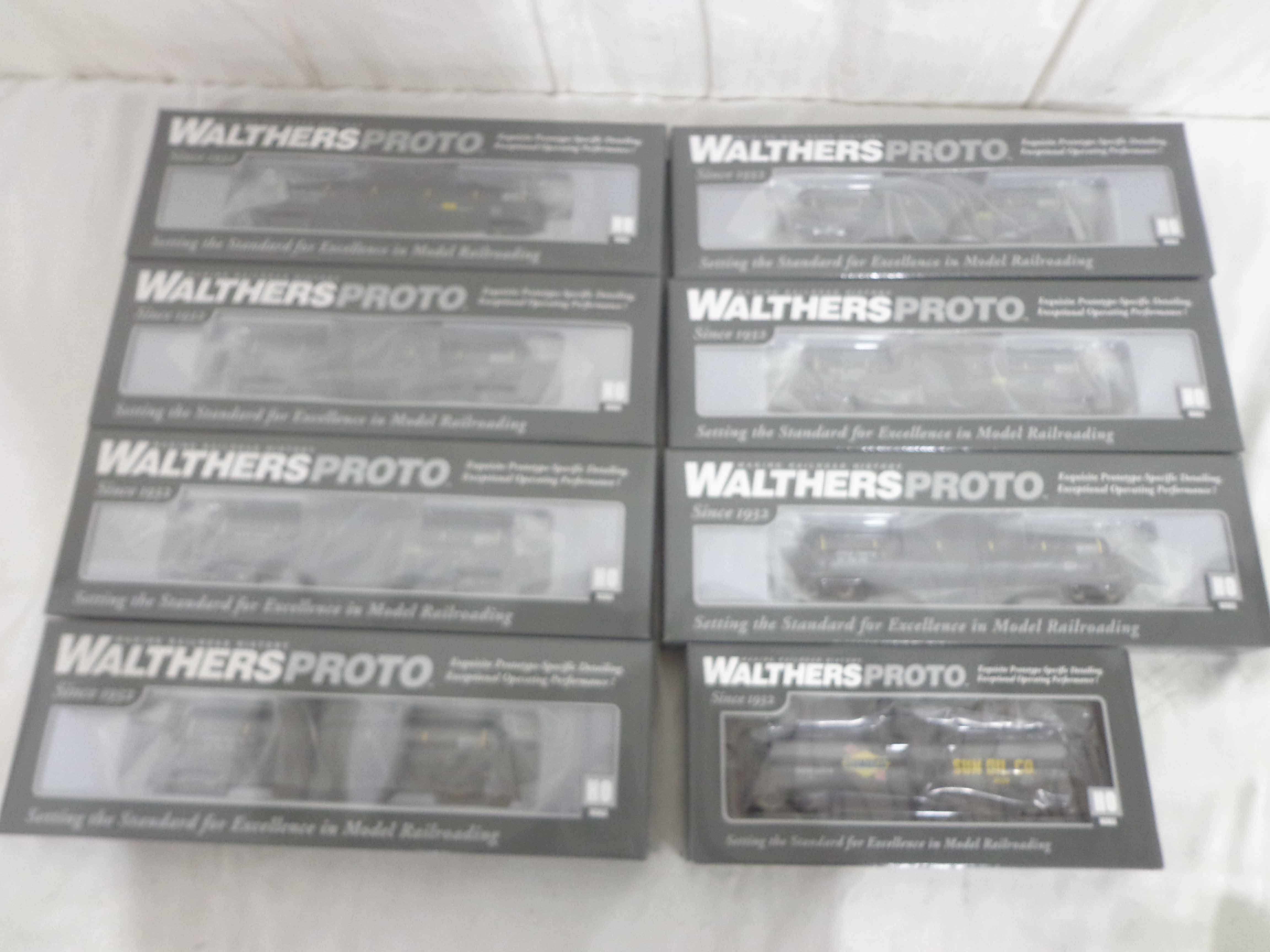 These are eight Walthers HO Gauge Assorted Tank Cars. Original Boxes. What you see is what you get. Please add $45.00 for US-48 Shipping and Insurance (more west of the Mississippi).