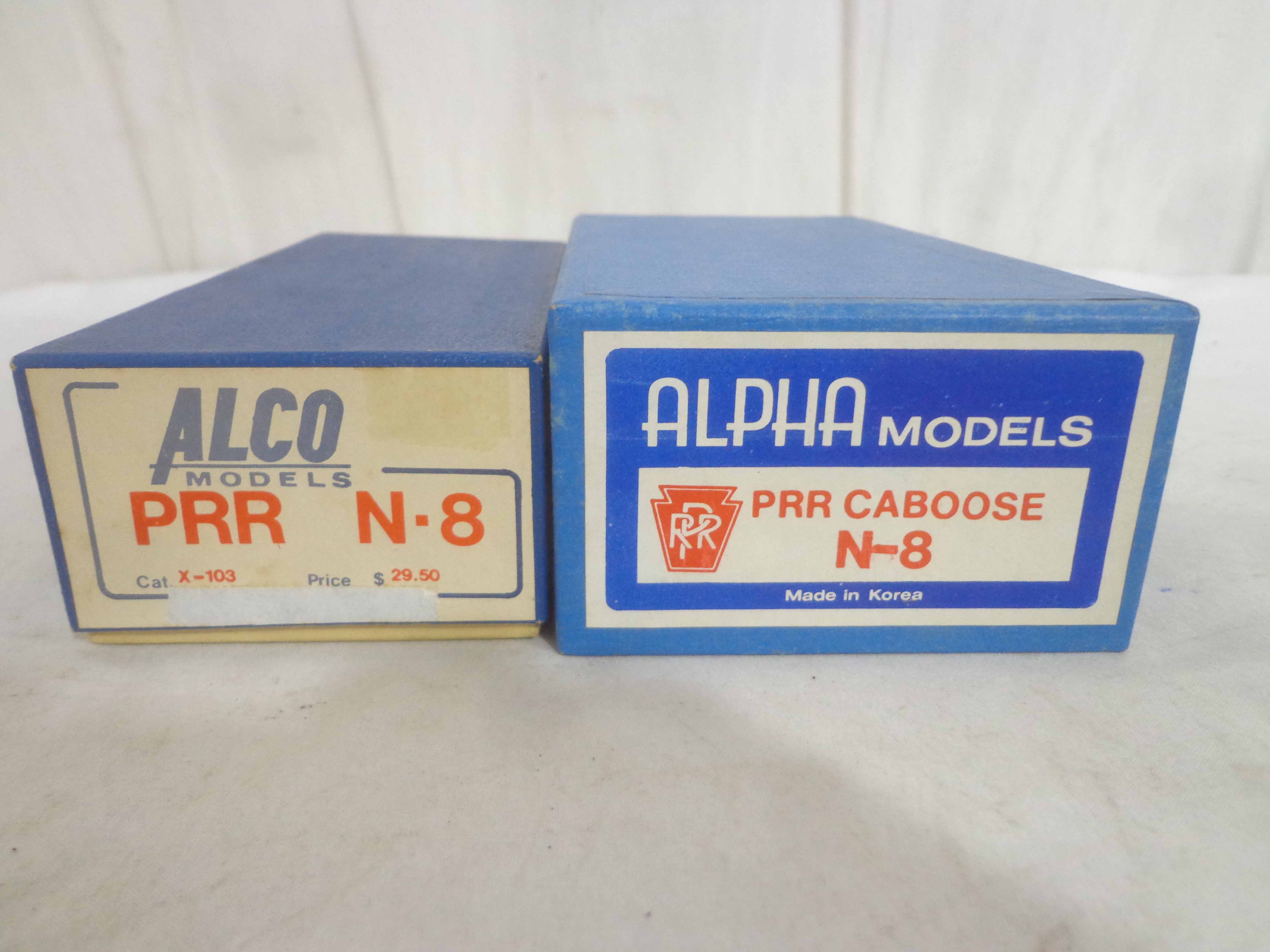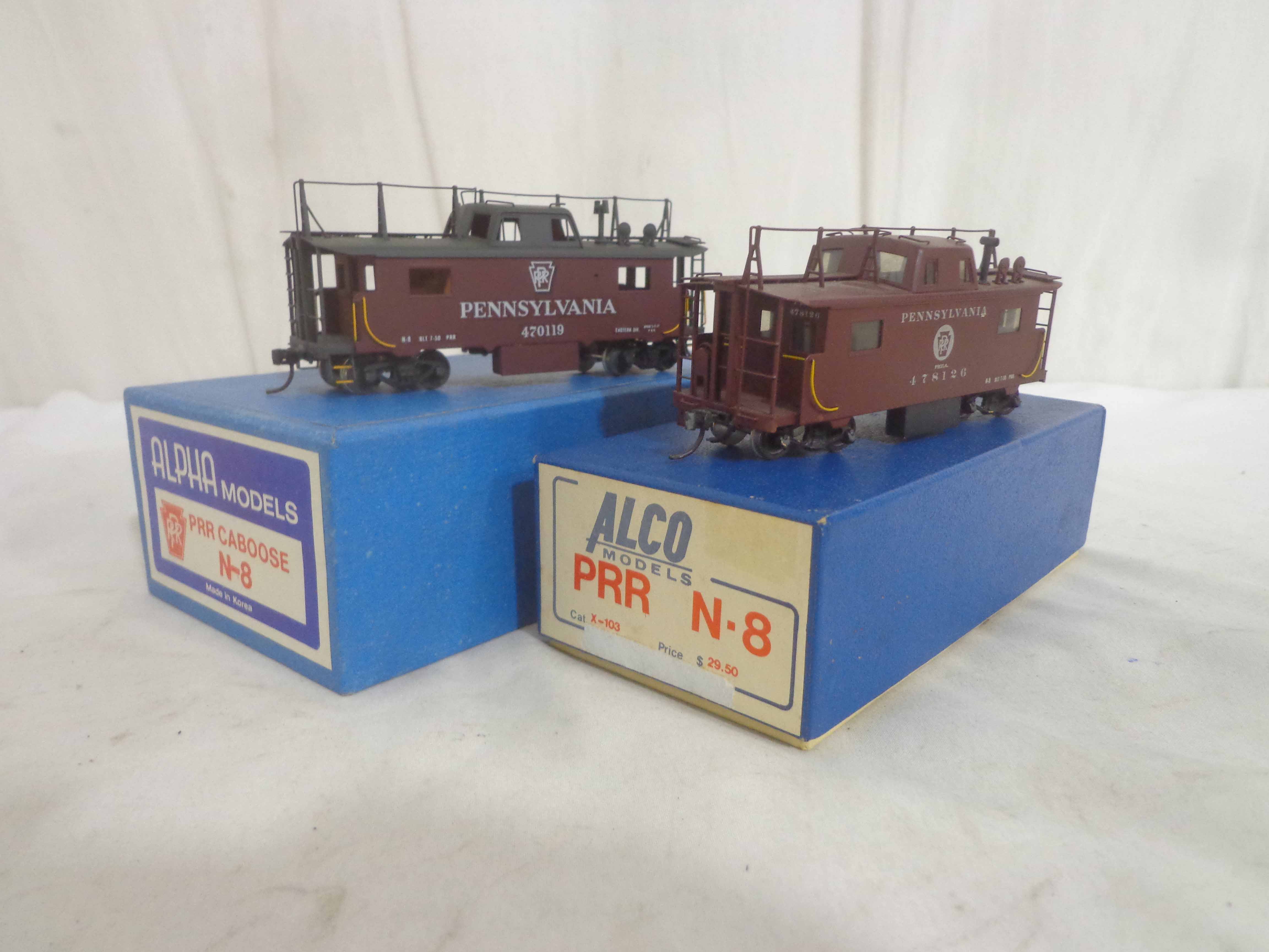 These are the Alco/Alpha HO Gauge Brass #X-103/470119 Pennsylvania N-8 Cabooses. Original Boxes. Examine closely; what is pictured is what you will receive. Please add $35.00 for US-48 Shipping and Insurance (more west of the Mississippi). |