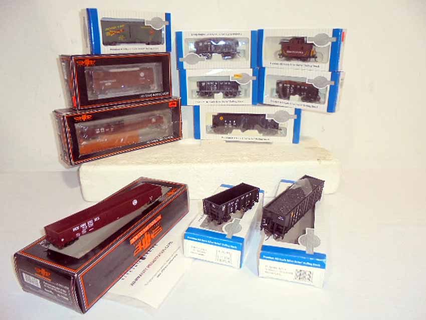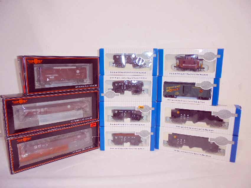 These are twelve MTH/Bachmann HO Gauge Assorted Cars. Original Boxes. Examine closely; what is pictured is what you will receive. Please add $40.00 for US-48 Shipping and Insurance (more west of the Mississippi).