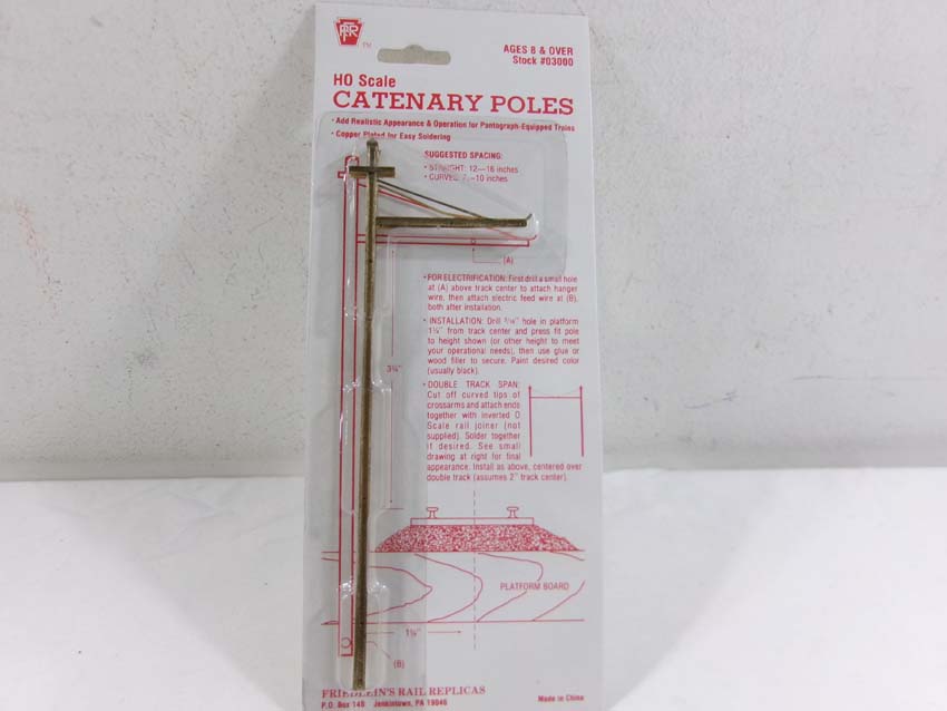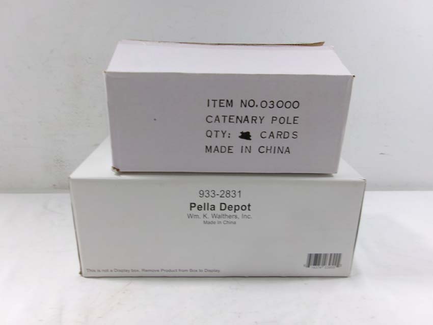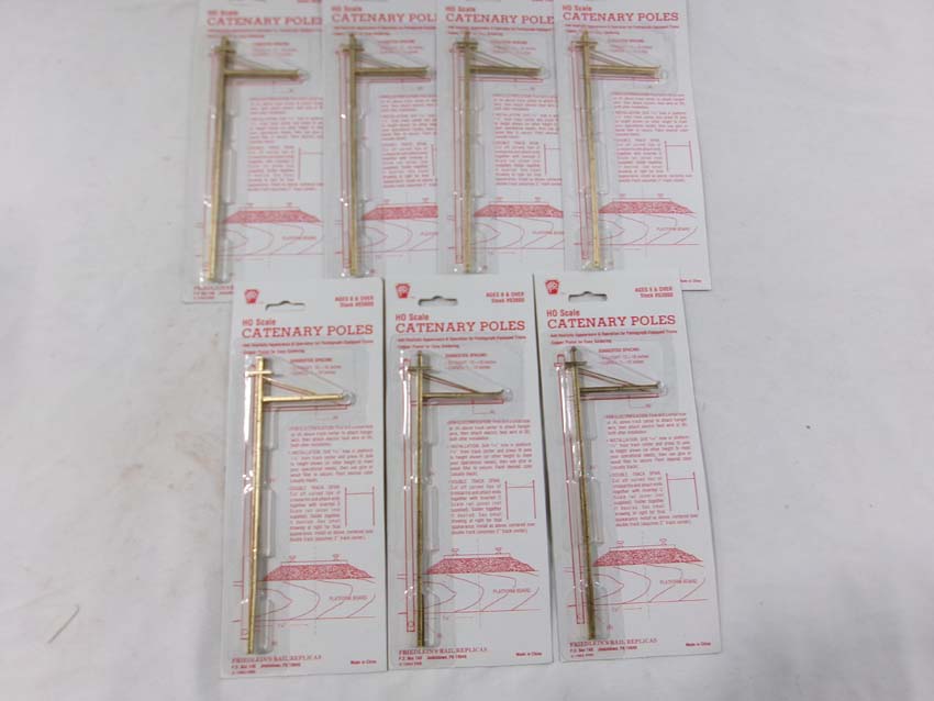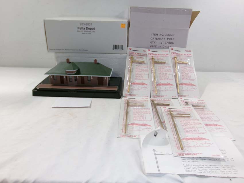 These are the Walthers/Friedlein's Rail Replicas HO Gauge seven #03000 Catenary Poles and #933-2831 Pella Train Depot. Original Boxes/Seven Blister Cards. Examine closely; what is pictured is what you will receive. Please add $50.00 for US-48 Shipping and Insurance (more west of the Mississippi).