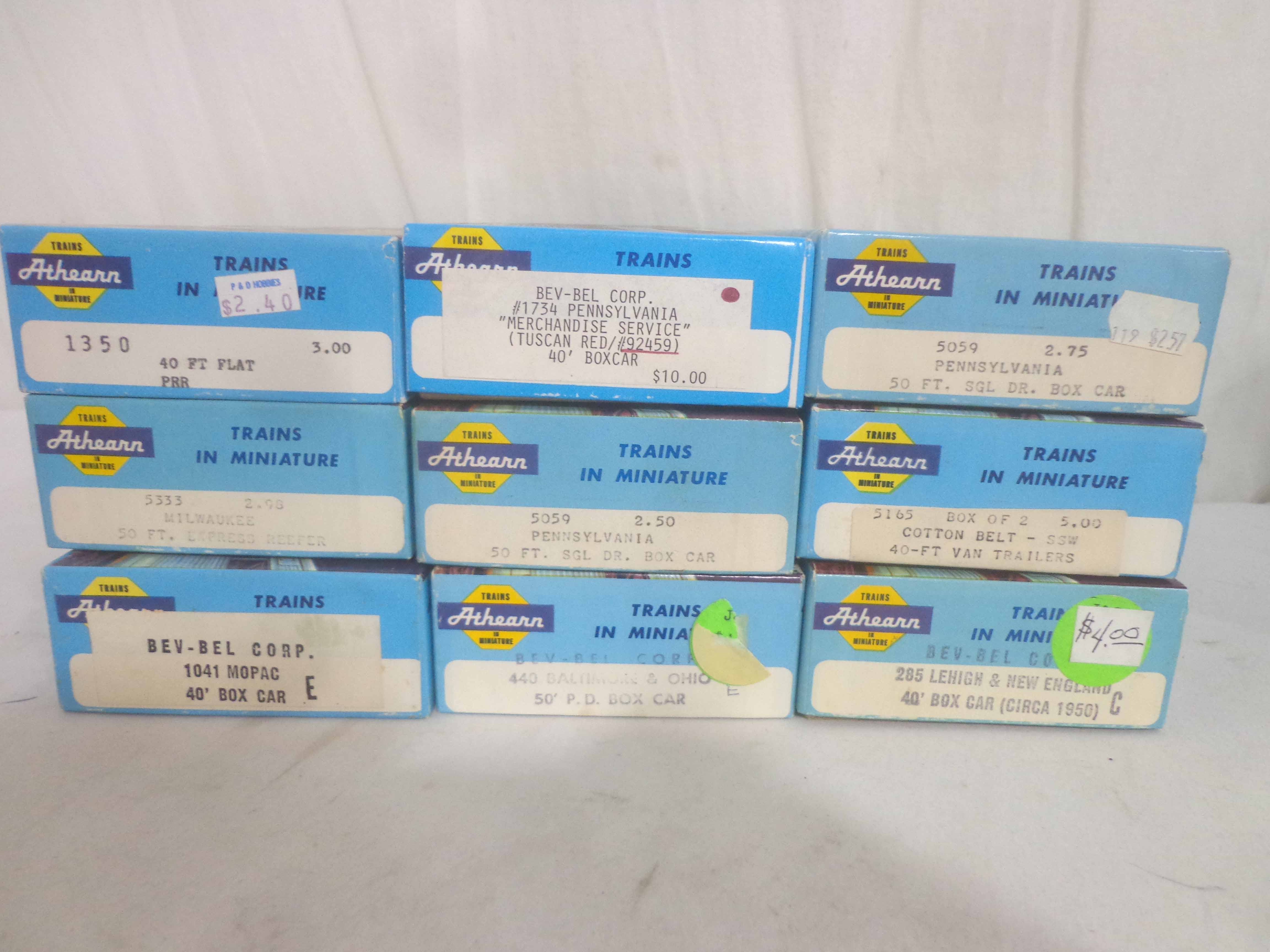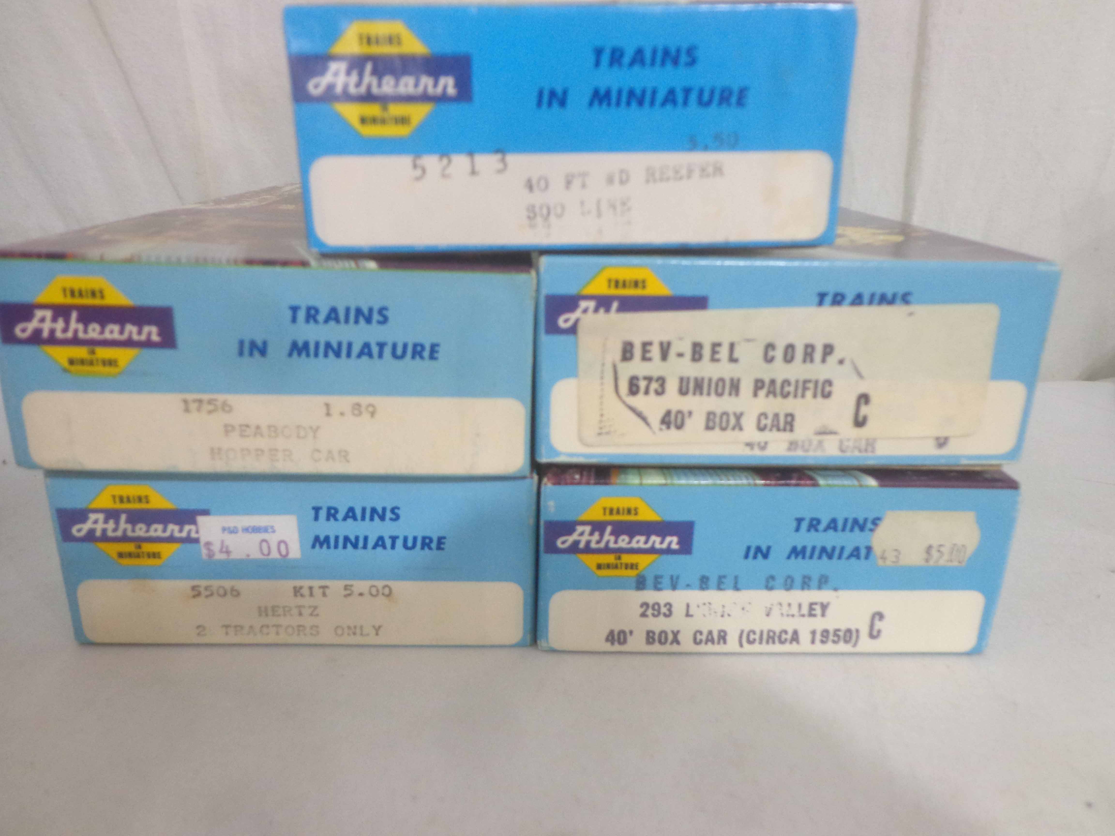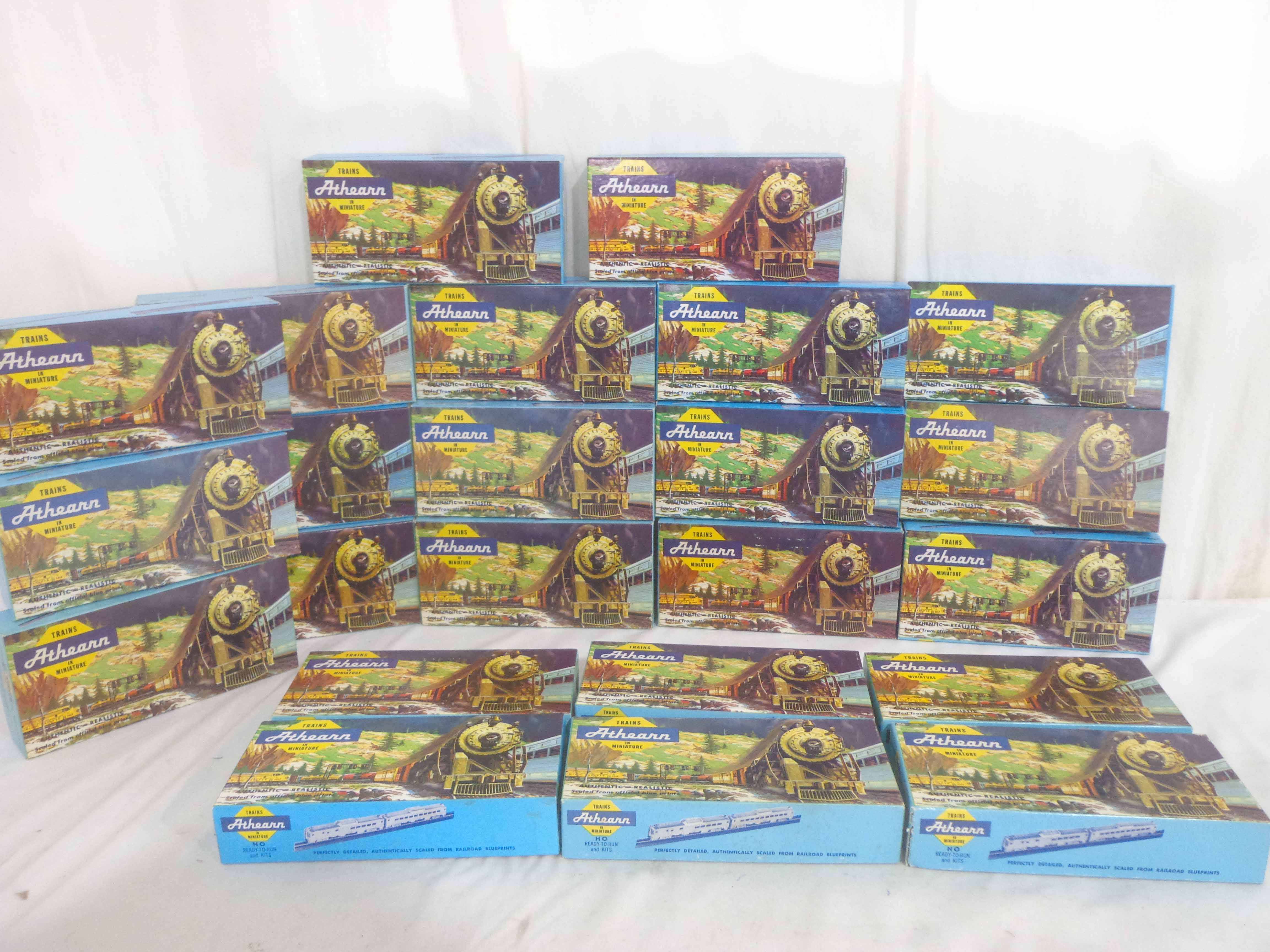 These are twenty-three Assorted Freight Cars that Athearn made in HO Gauge some time in the past. Original Boxes. Examine very, very closely; what is clearly pictured is what you will receive. Please add $40.00 for US-48 Shipping and Insurance (more west of the Mississippi). |
