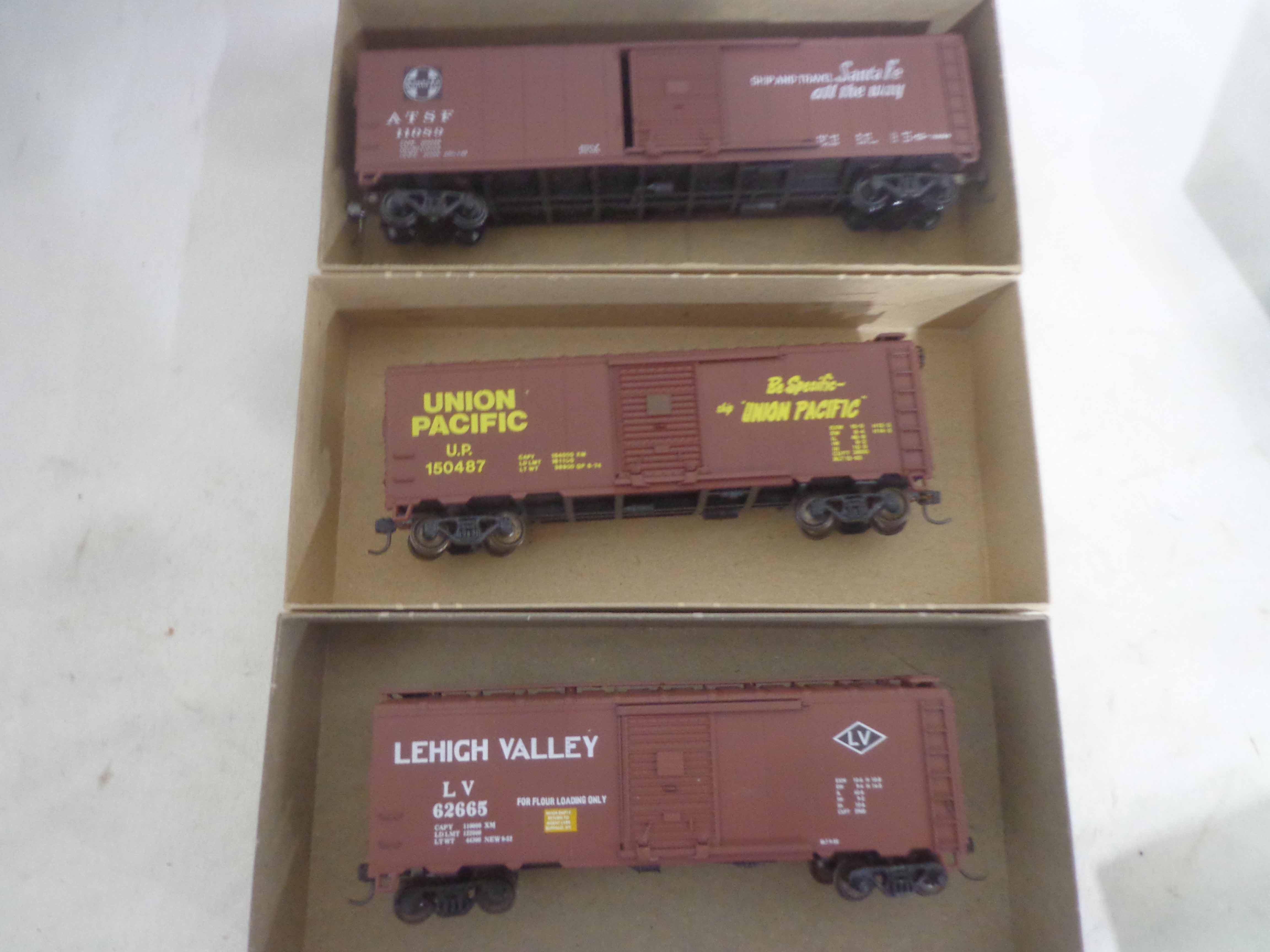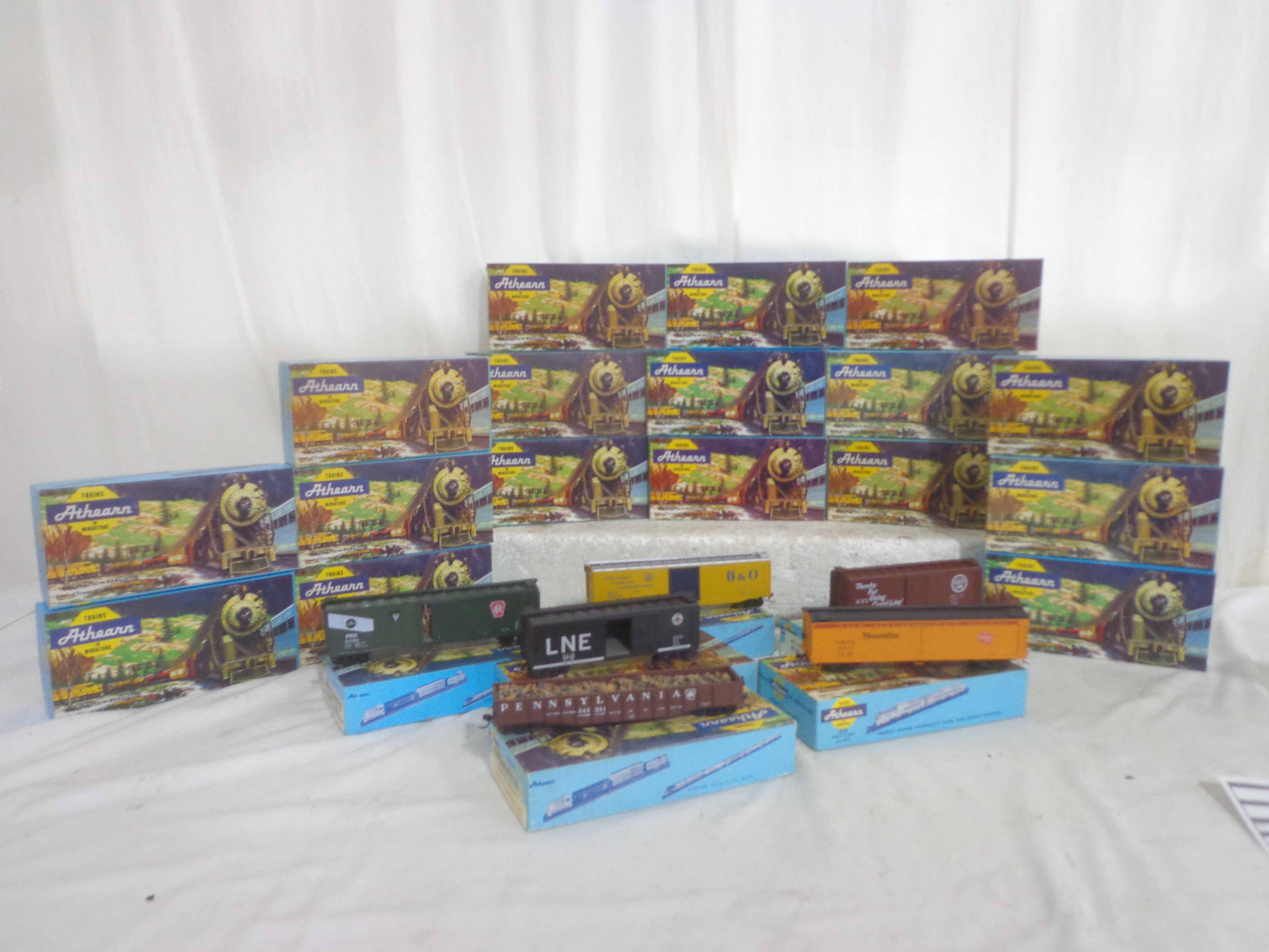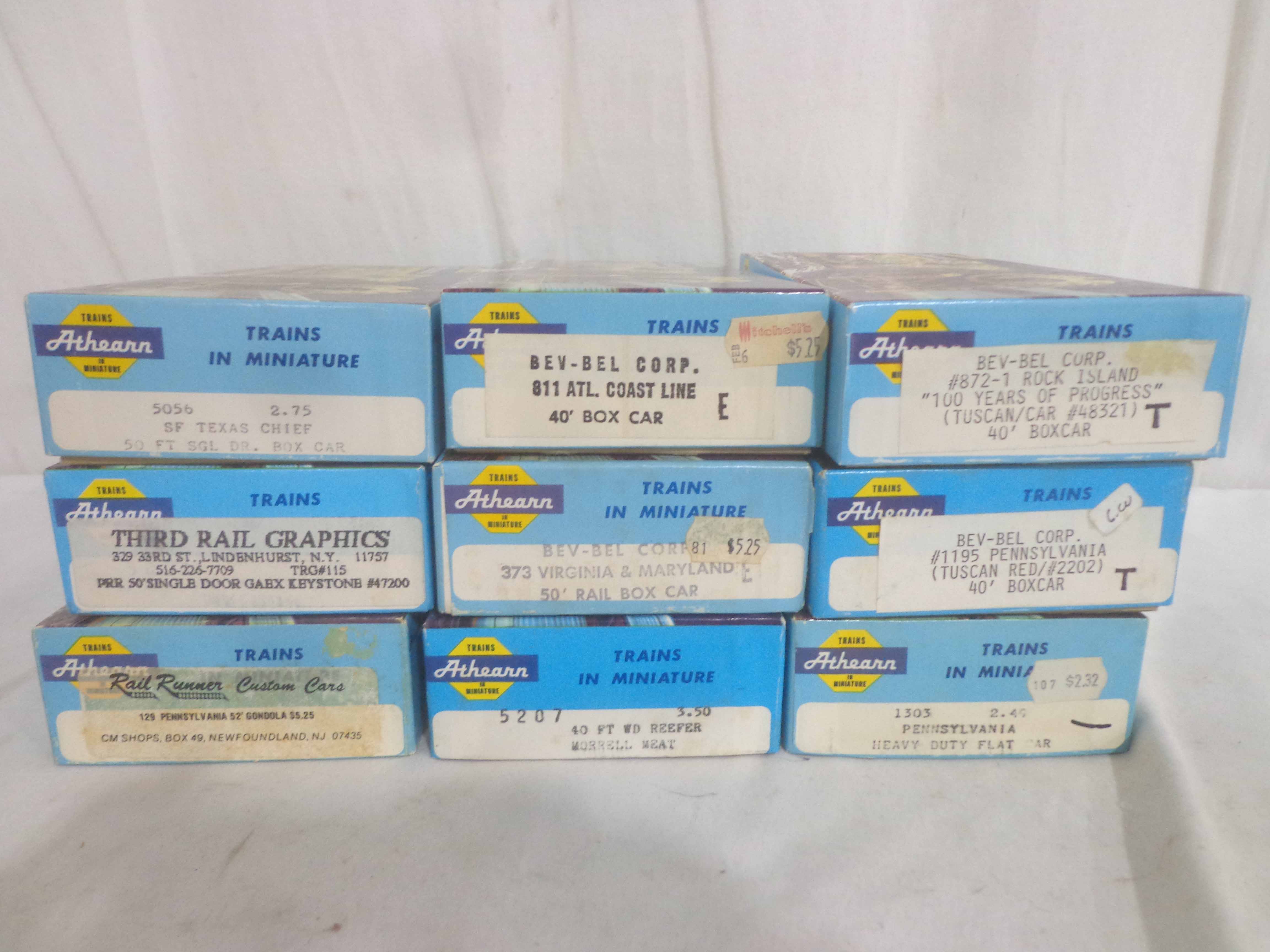 These are twenty-three Assorted Freight Cars that Athearn made in HO Gauge some time in the past. Original Boxes. Examine very, very closely; what is clearly pictured is what you will receive. Please add $40.00 for US-48 Shipping and Insurance (more west of the Mississippi). |
