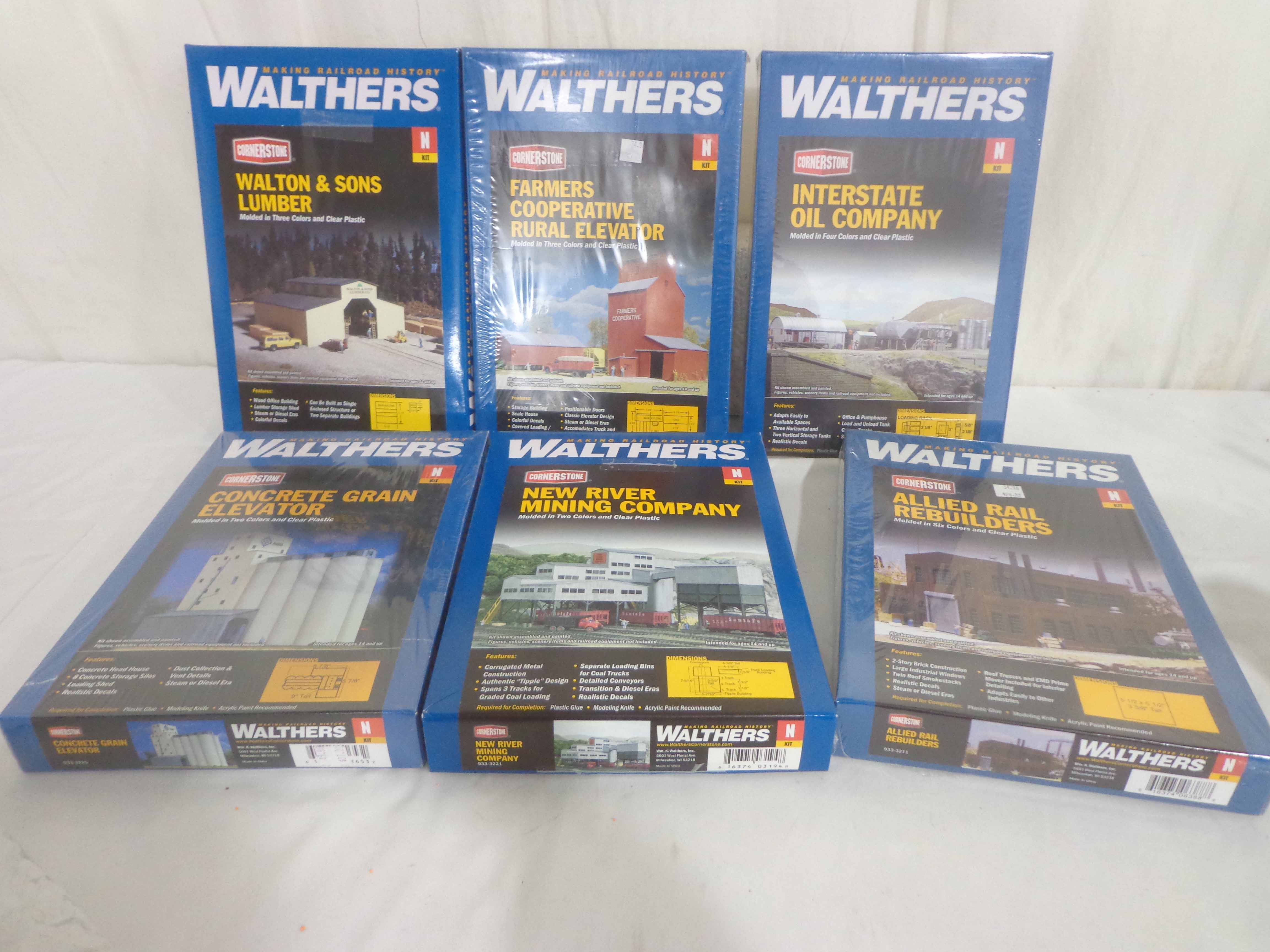 These are six Assorted Walthers N Scale Assorted Building Kits. Original Boxes/four SEALED. Examine closely; what is pictured is what you will receive. Please add $45.00 for US-48 Shipping and Insurance (more west of the Mississippi).