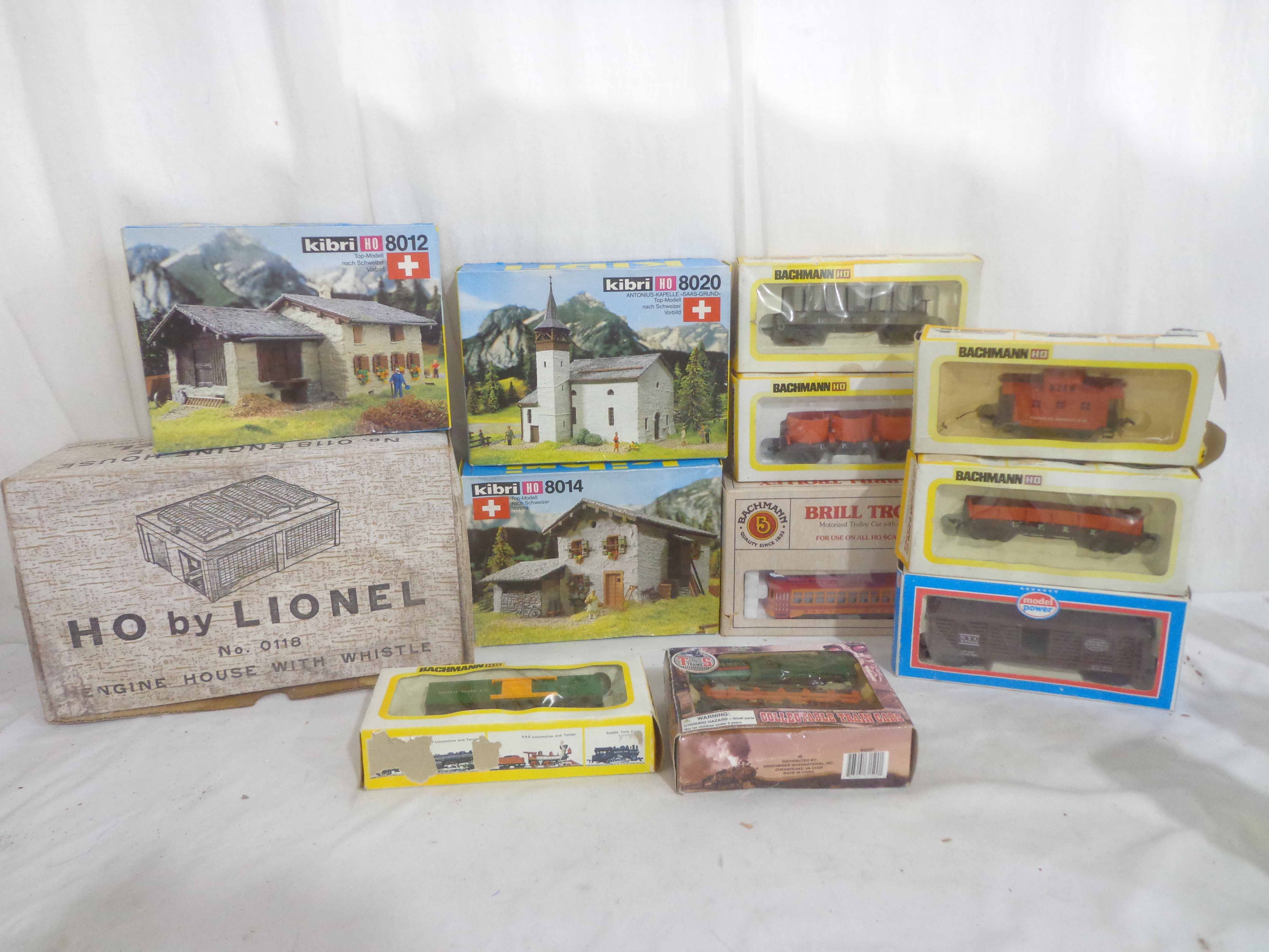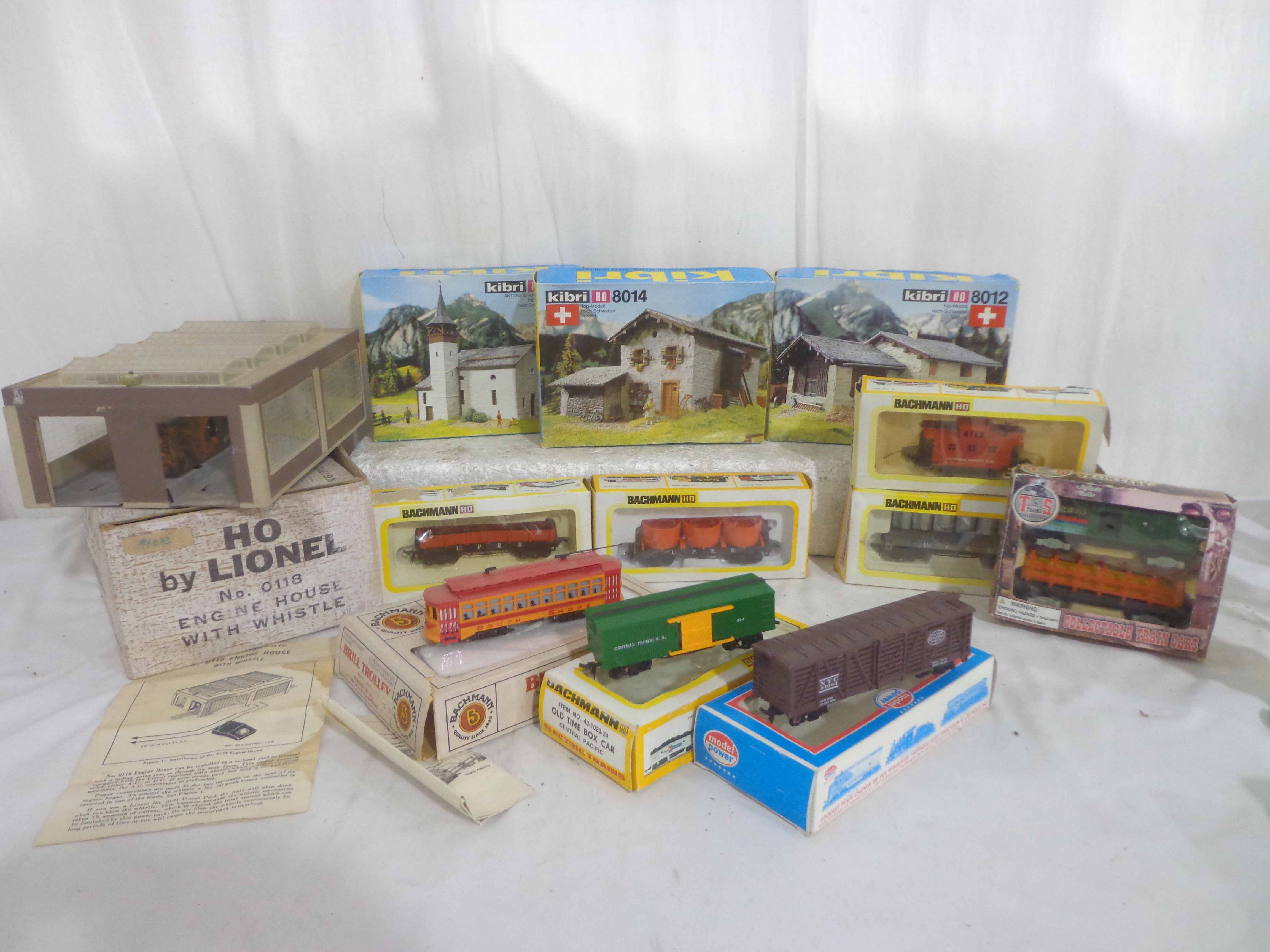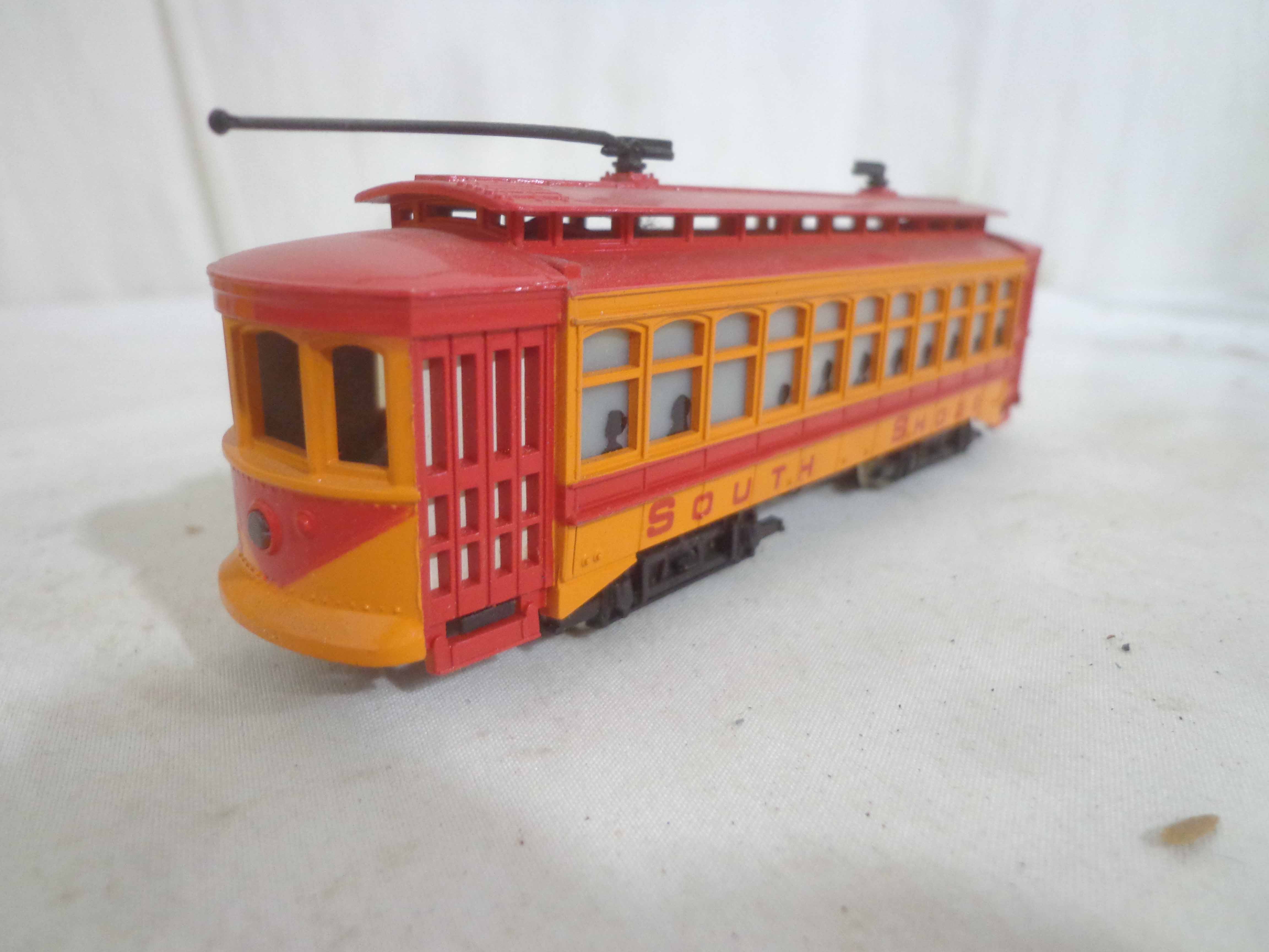 Assorted Manufactures HO Gauge #1312 South Shore Line Trolley, #0118 Engine House with Whistle and 10 Assorted Vehicles and Kits, OBs Gail |