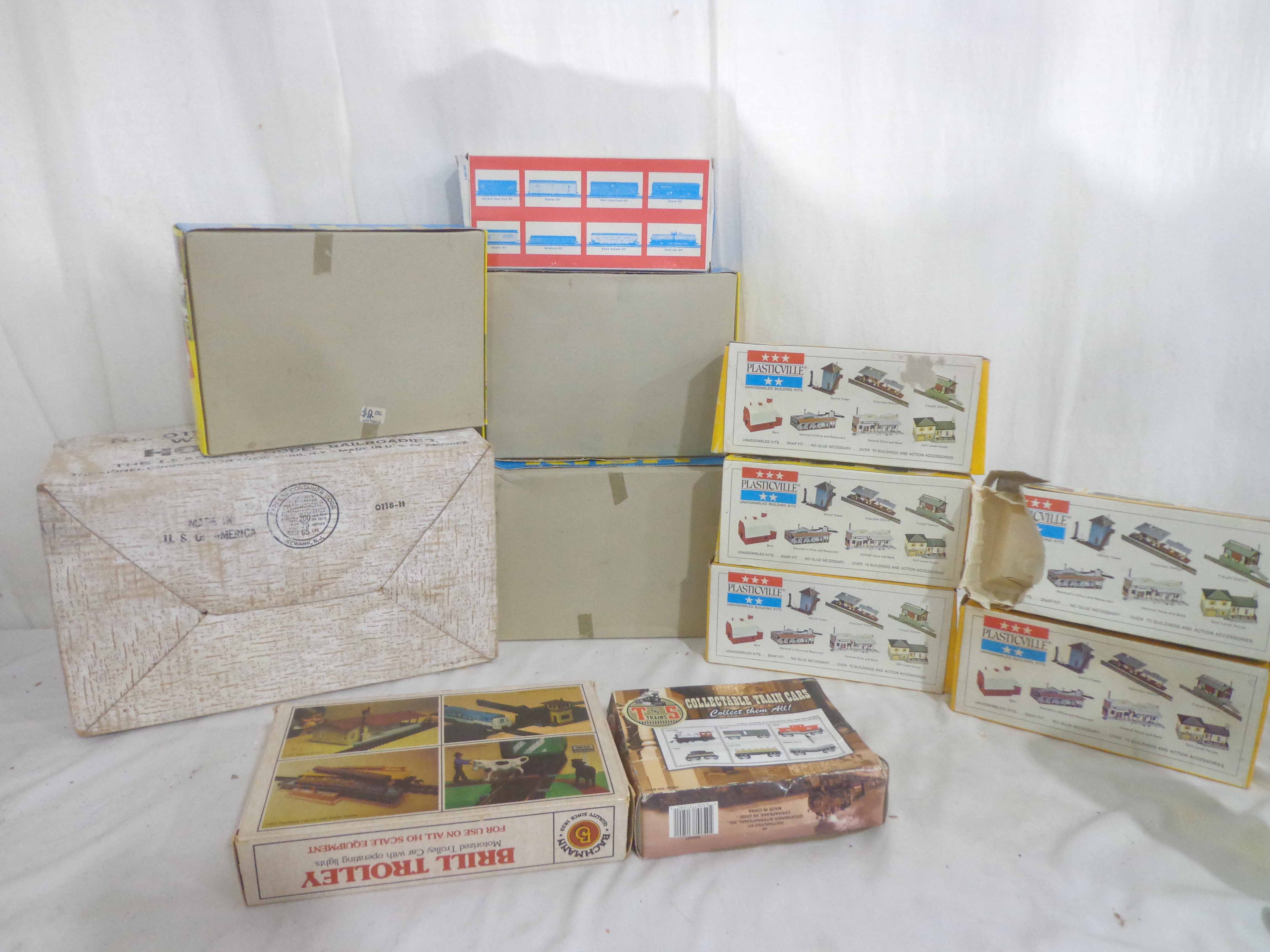 These are the Assorted Manufactures HO Gauge #1312 South Shore Line Trolley, #0118 Engine House with Whistle and ten Assorted Vehicles and Kits. Original Boxes. Examine closely; what is pictured is what you will receive. Please add $50.00 for US-48 Shipping and Insurance (more west of the Mississippi).