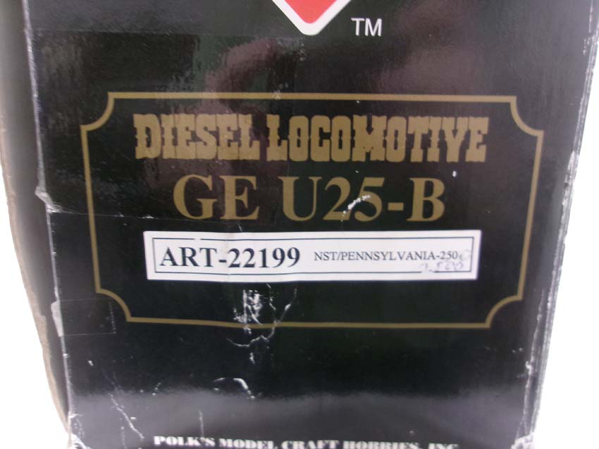 This is the #ART-22199 PRR GE U25-B Diesel Engine (digital sound system added) that Arista Craft made in G Gauge a few years ago. Please review the pictures carefully; what you see is what you will receive. Original Box. Please add $45.00 for US-48 Shipping and Insurance (more west of the Mississippi).