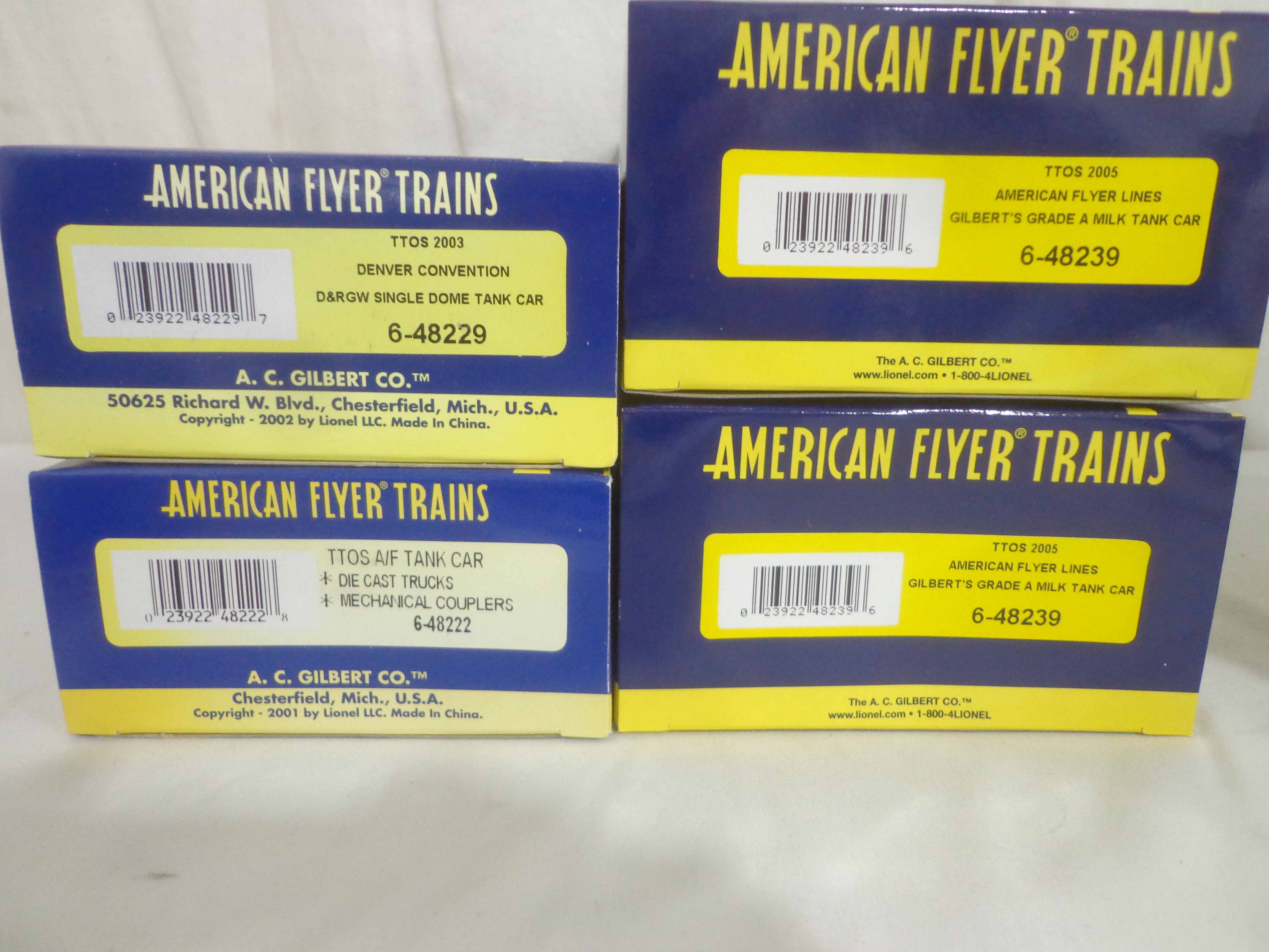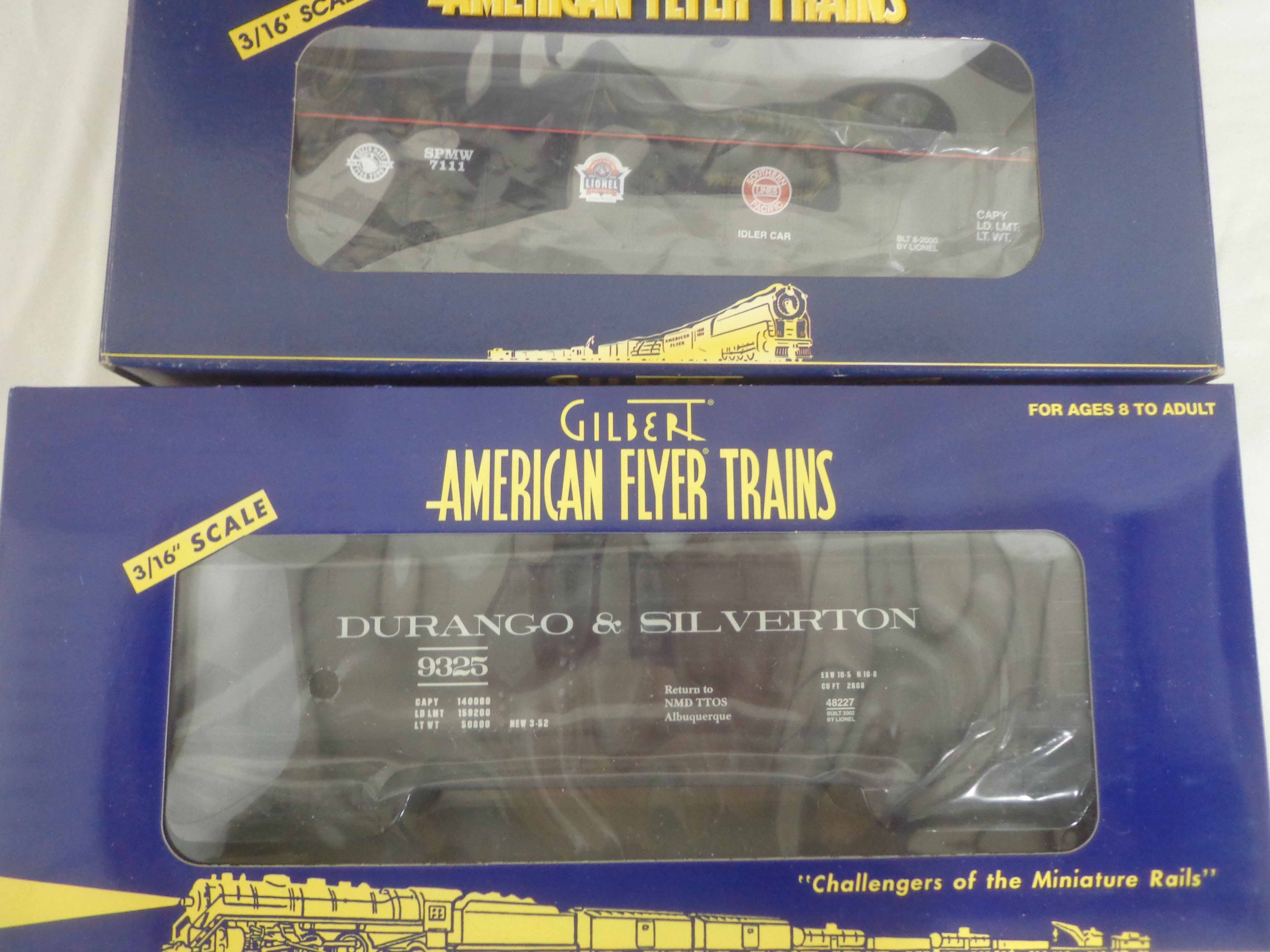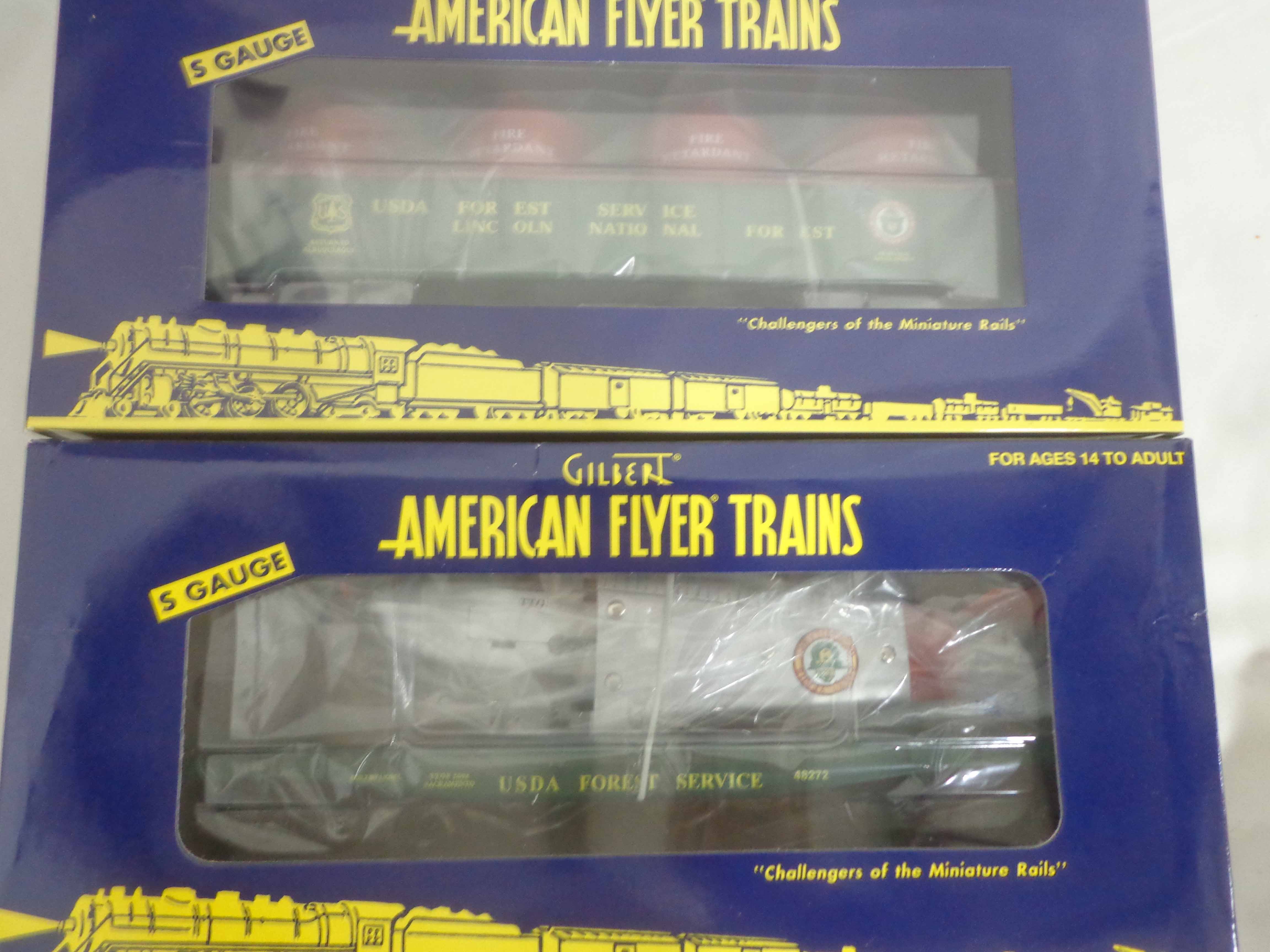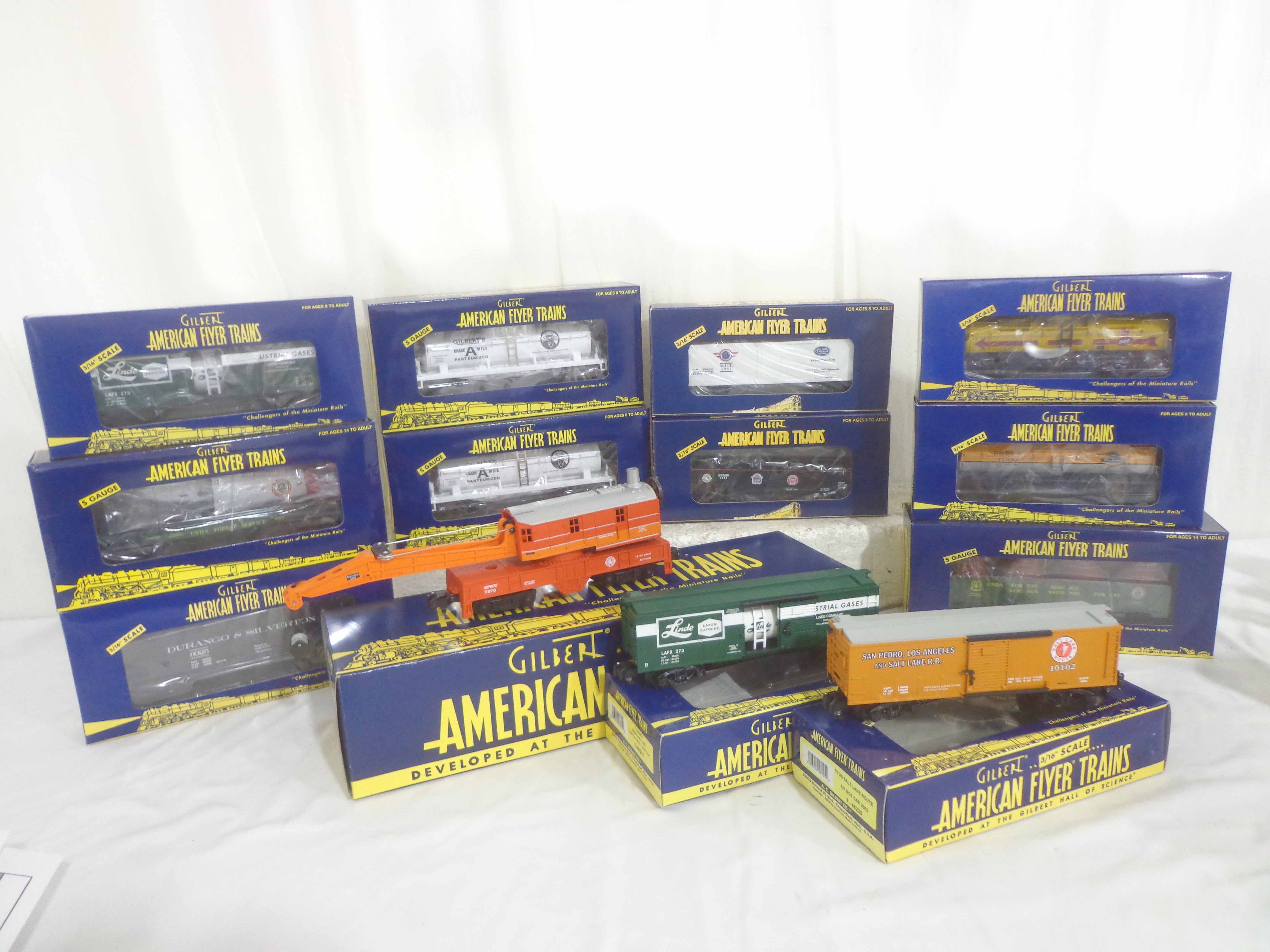 These are thirteen Assorted TTOS Freight Cars that Lionel/American Flyer made in S Gauge in the 1990s. Original Boxes. Examine very closely; what is pictured is what you will receive. Please add $50.00 for US-48 Shipping and Insurance (more west of the Mississippi). 13 AF/Lionel S Gauge Assorted TTOS Freight Cars, OBs Gail