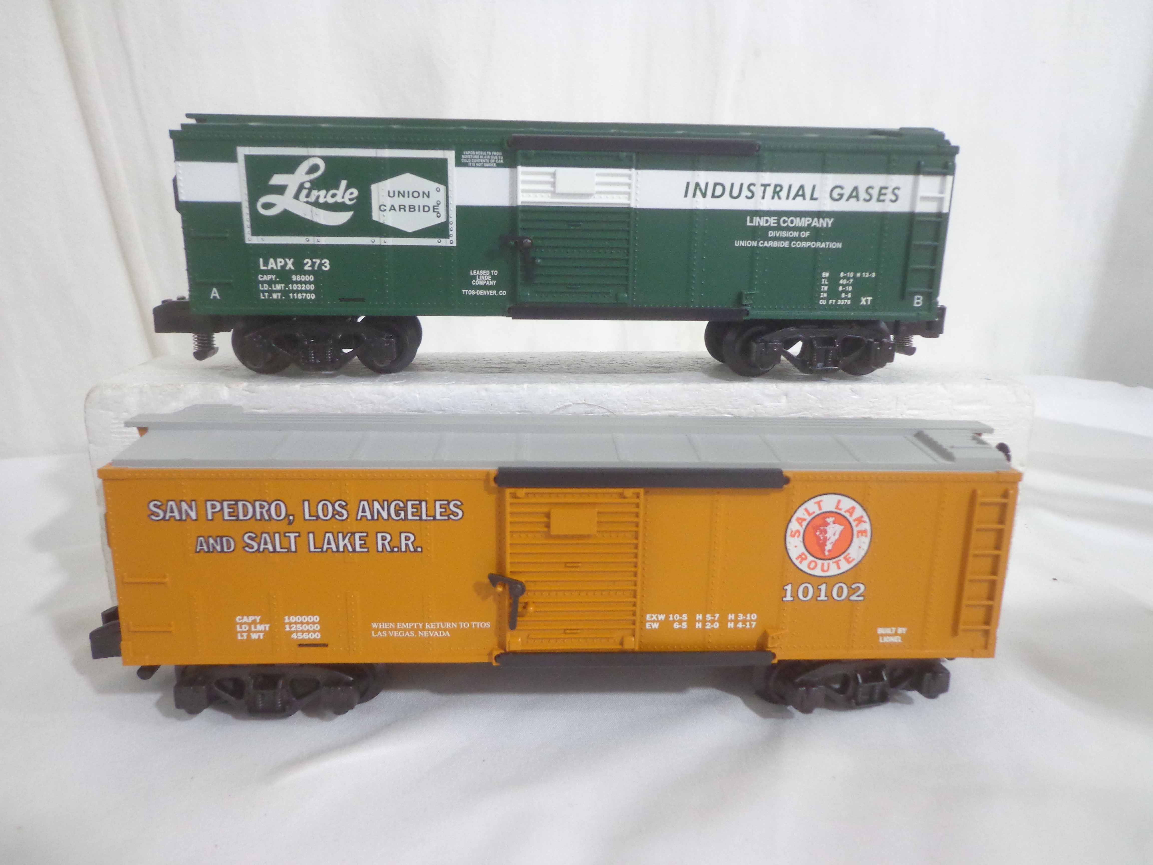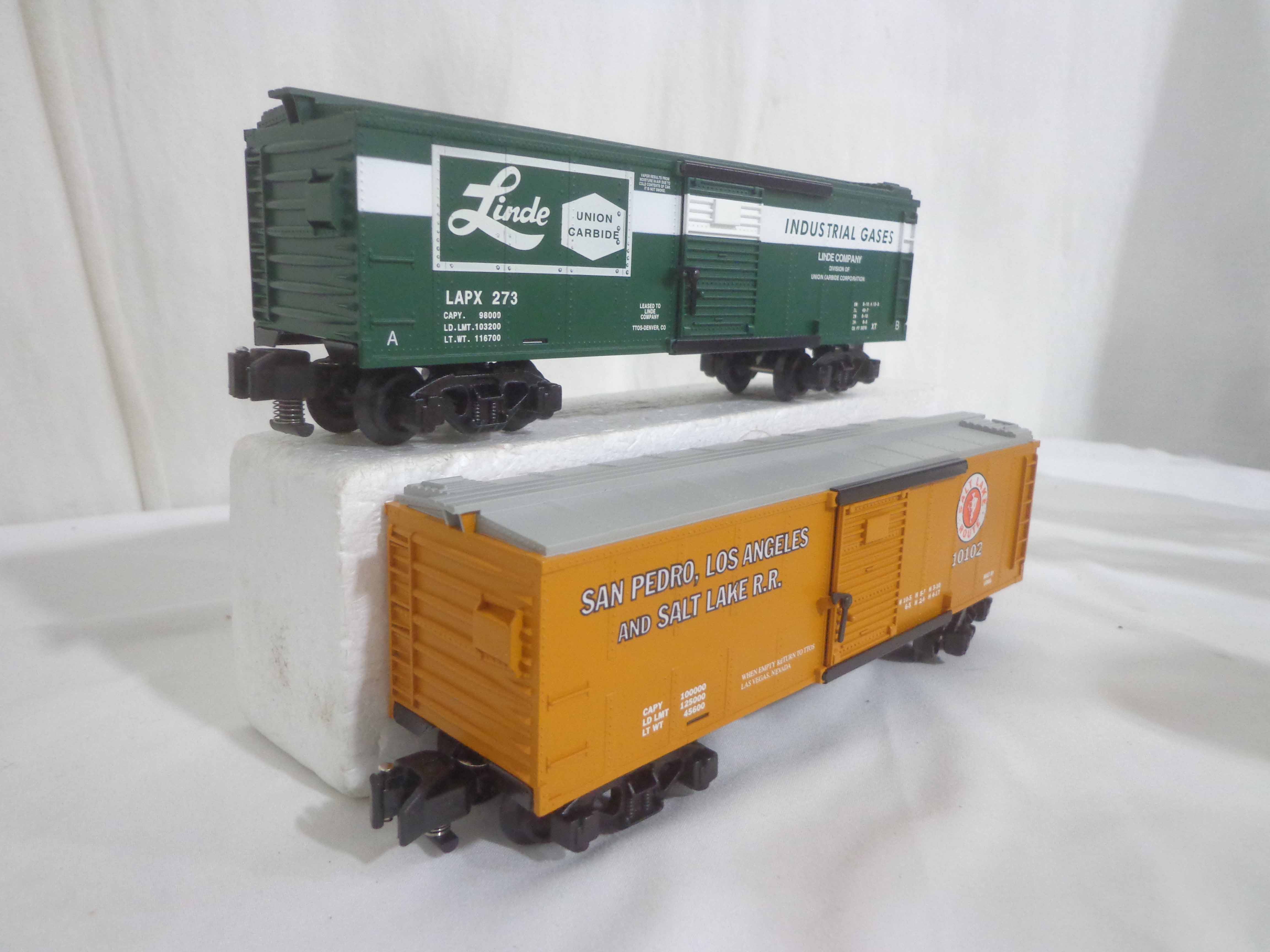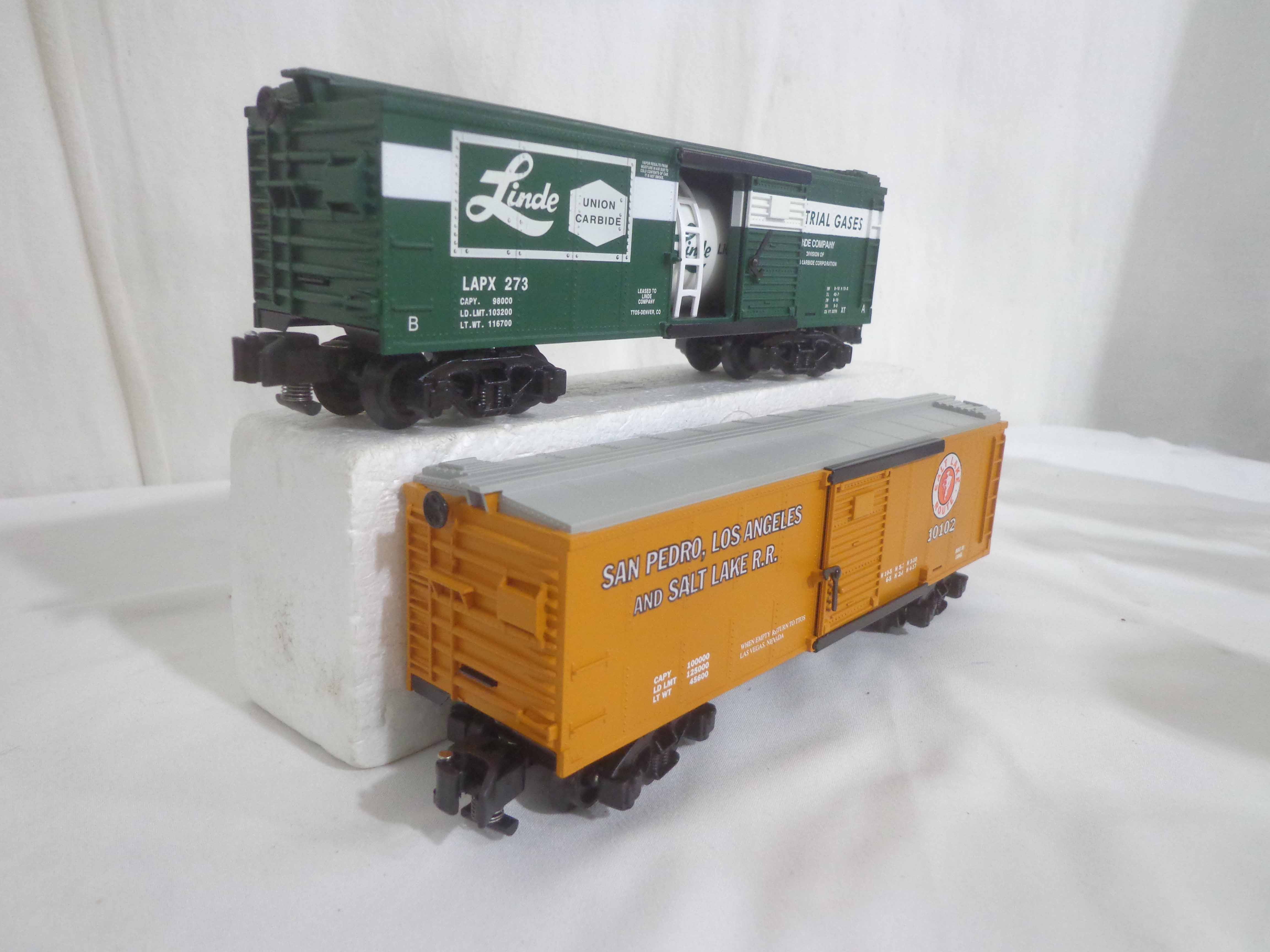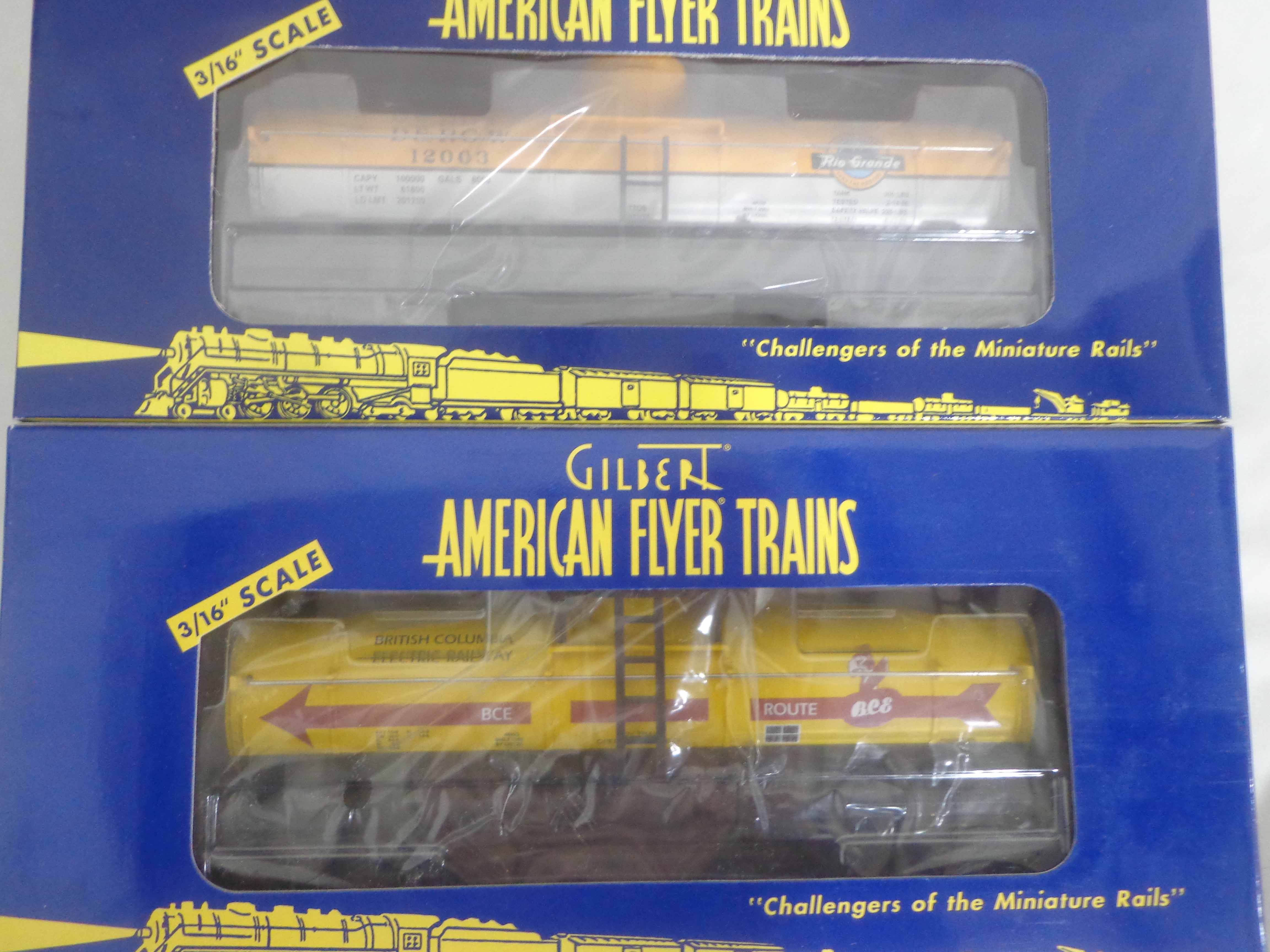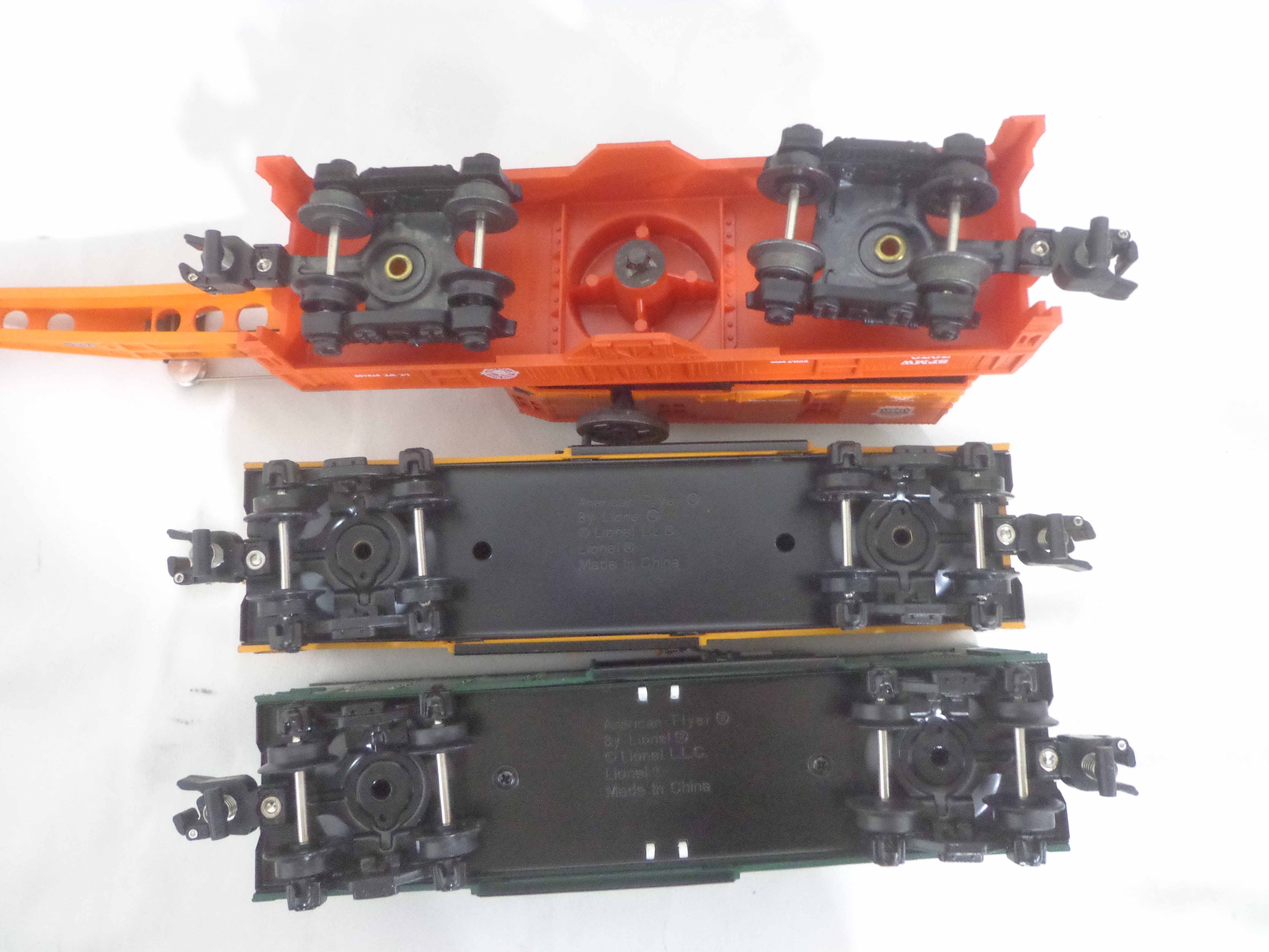 These are thirteen Assorted TTOS Freight Cars that Lionel/American Flyer made in S Gauge in the 1990s. Original Boxes. Examine very closely; what is pictured is what you will receive. Please add $50.00 for US-48 Shipping and Insurance (more west of the Mississippi). 13 AF/Lionel S Gauge Assorted TTOS Freight Cars, OBs Gail
