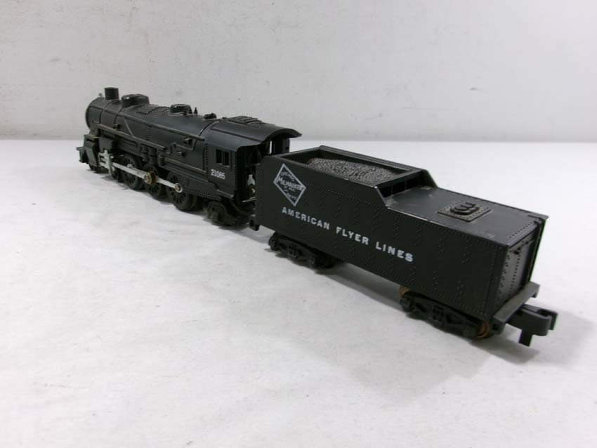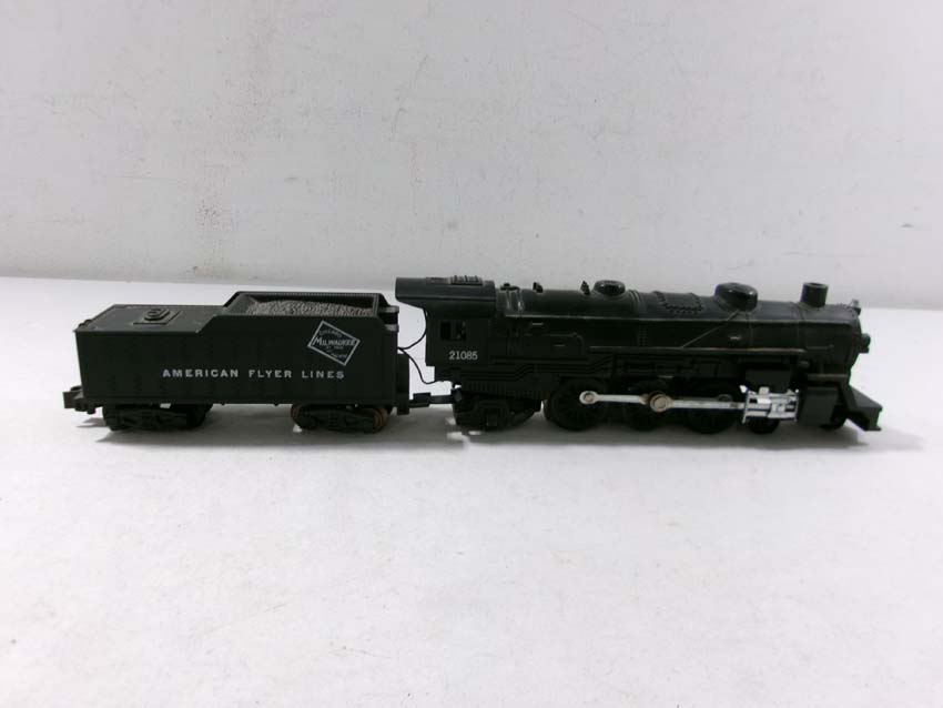 These are the American Flyer S Gauge #21085 CM&StP 4-6-2 Steam Engine & Tender and #21085 CNW 4-6-2 Steam Engine & Tender from the later 1950s. No Boxes. Examine closely; what is pictured is what you will receive. Please add $45.00 for US-48 Shipping and Insurance (more west of the Mississippi).