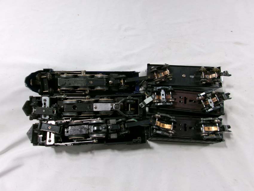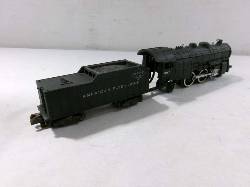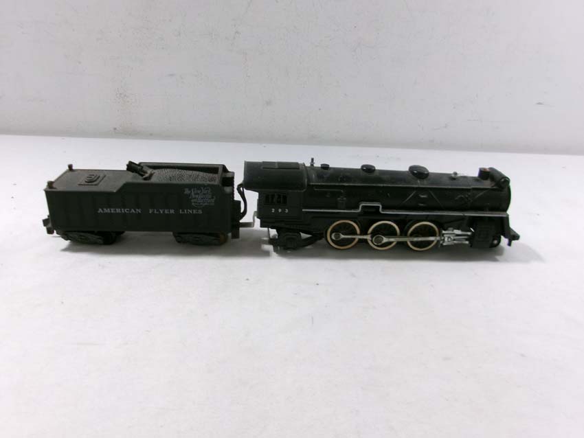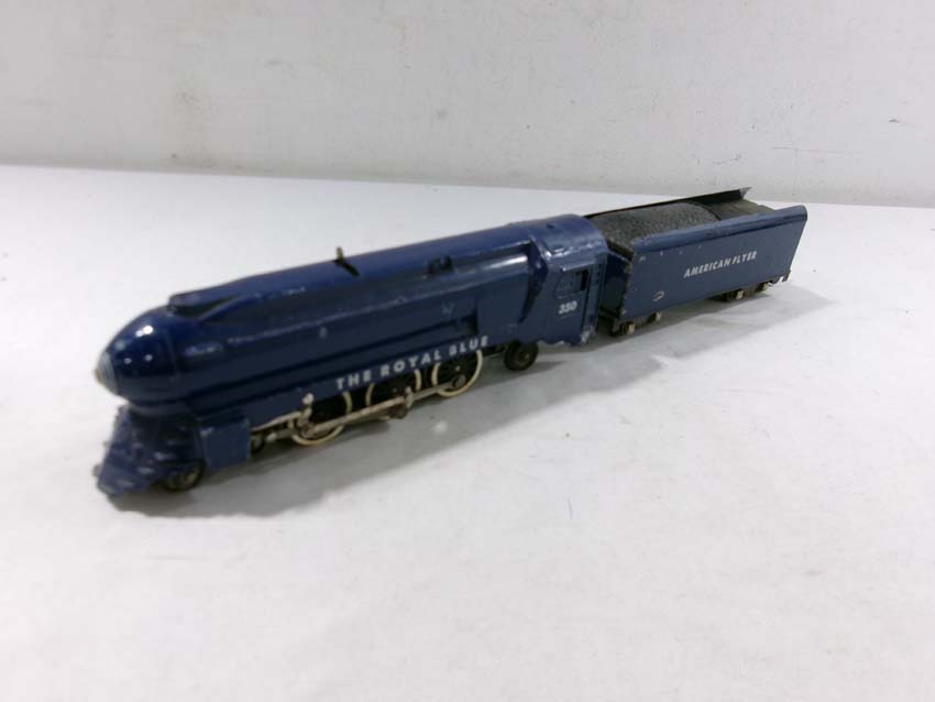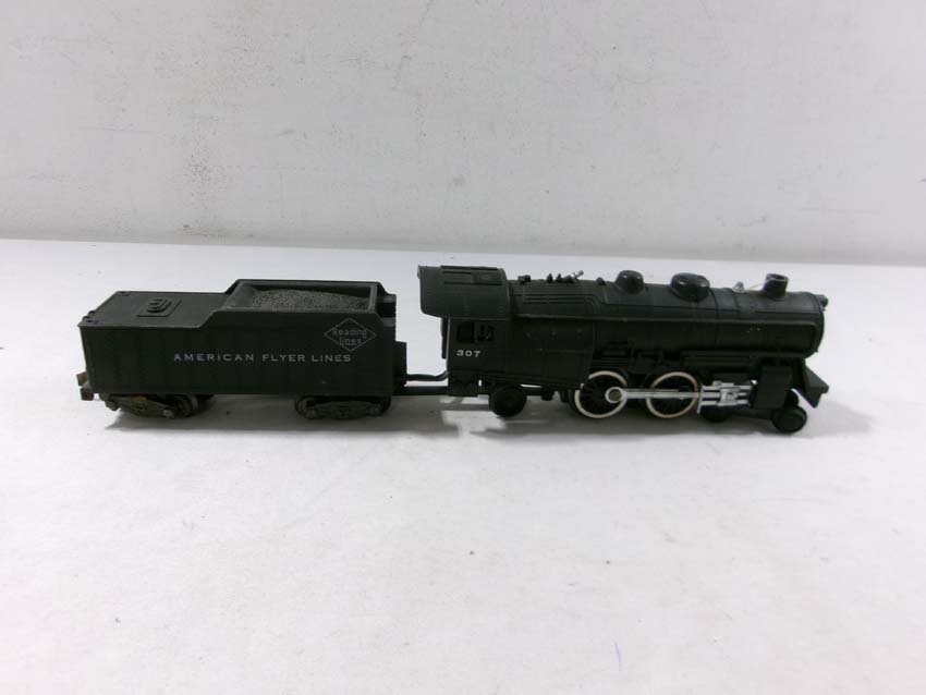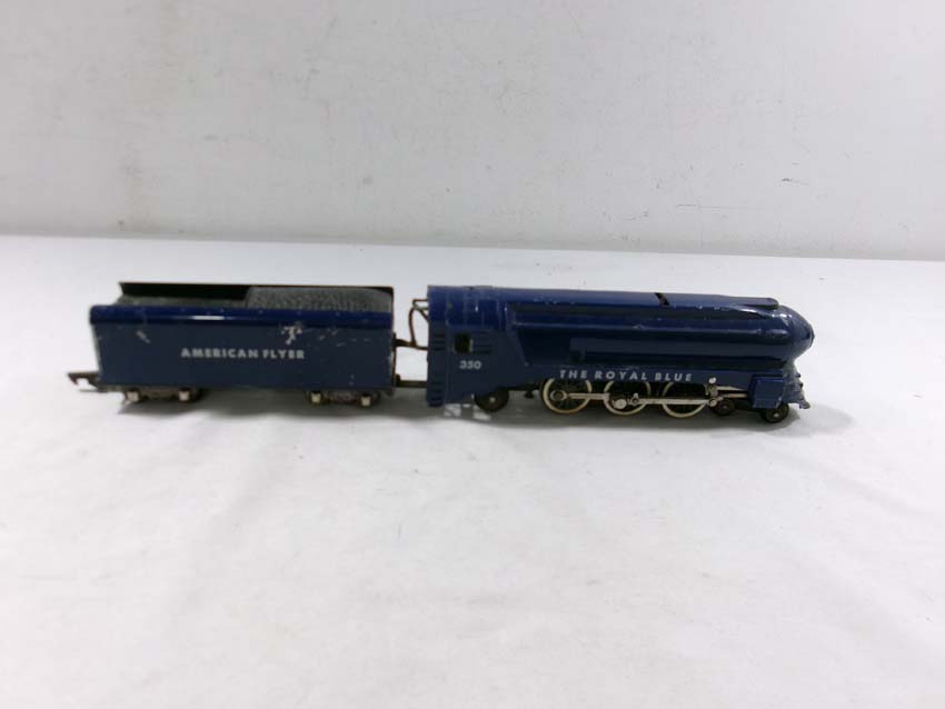 These are the American Flyer S Gauge #350 Royal Blue 4-6-2 Steam Engine & Tender, #293 NY,NH&H 4-6-2 Steam Engine & Tender, #307 Reading 4-4-2 Steam Engine & Tender, and three Assorted Freight Cars. No Boxes/Wrapper. Examine closely; what is pictured is what you will receive. Please add $50.00 for US-48 Shipping and Insurance (more west of the Mississippi).