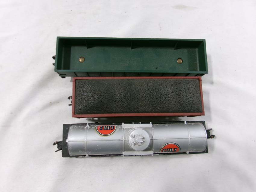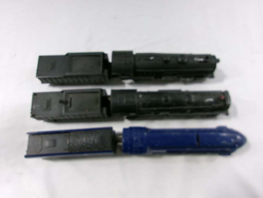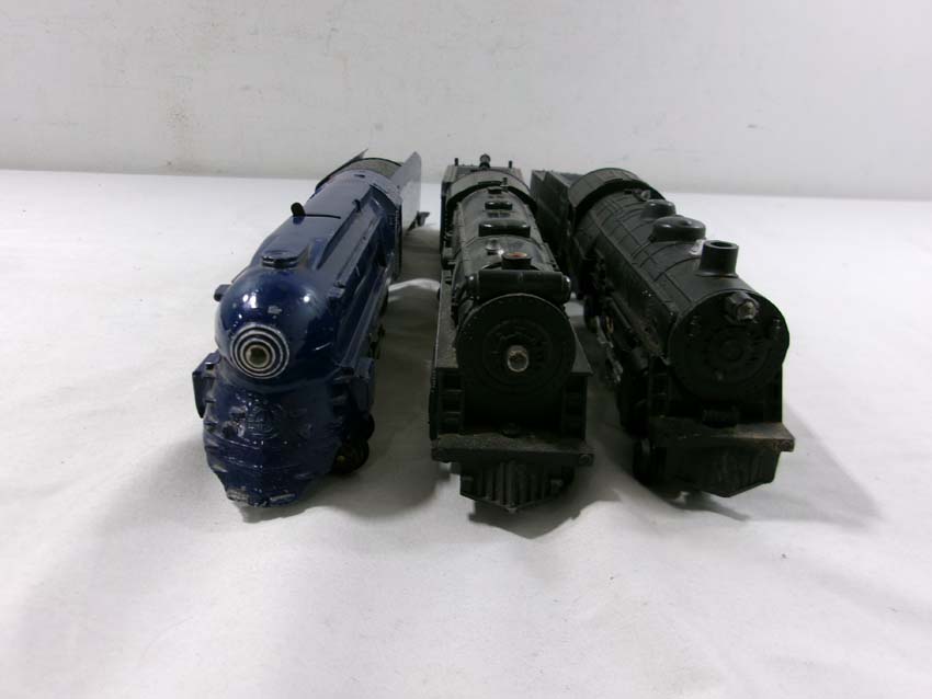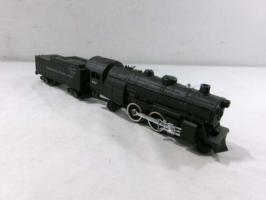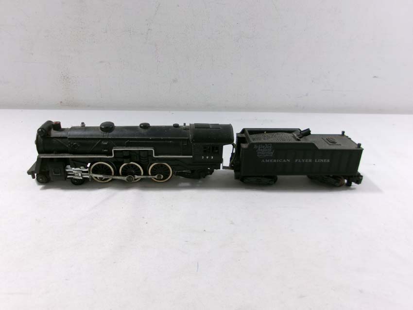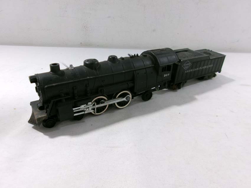 These are the American Flyer S Gauge #350 Royal Blue 4-6-2 Steam Engine & Tender, #293 NY,NH&H 4-6-2 Steam Engine & Tender, #307 Reading 4-4-2 Steam Engine & Tender, and three Assorted Freight Cars. No Boxes/Wrapper. Examine closely; what is pictured is what you will receive. Please add $50.00 for US-48 Shipping and Insurance (more west of the Mississippi).