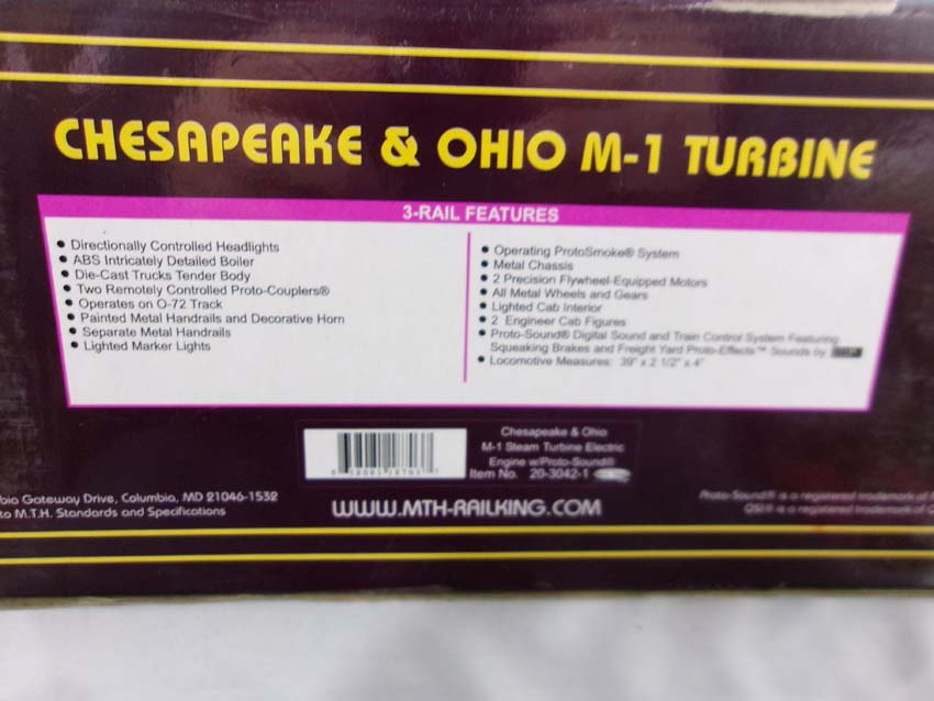 MTH #20-3042-1 C&O 4-8-8-4 M-1 Turbine Scale Steam Engine and Tender/OB