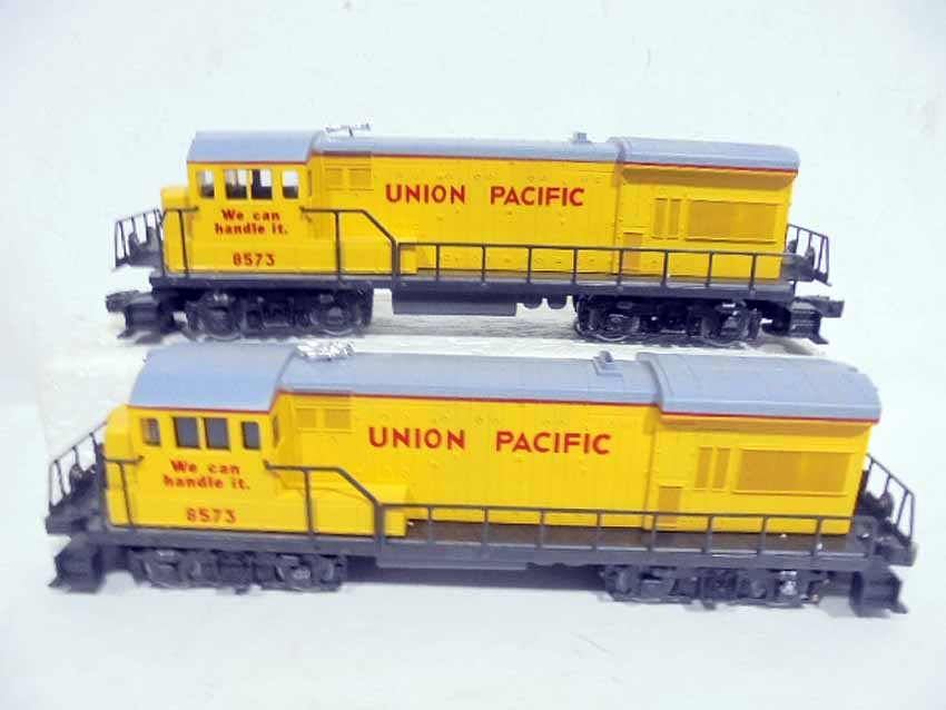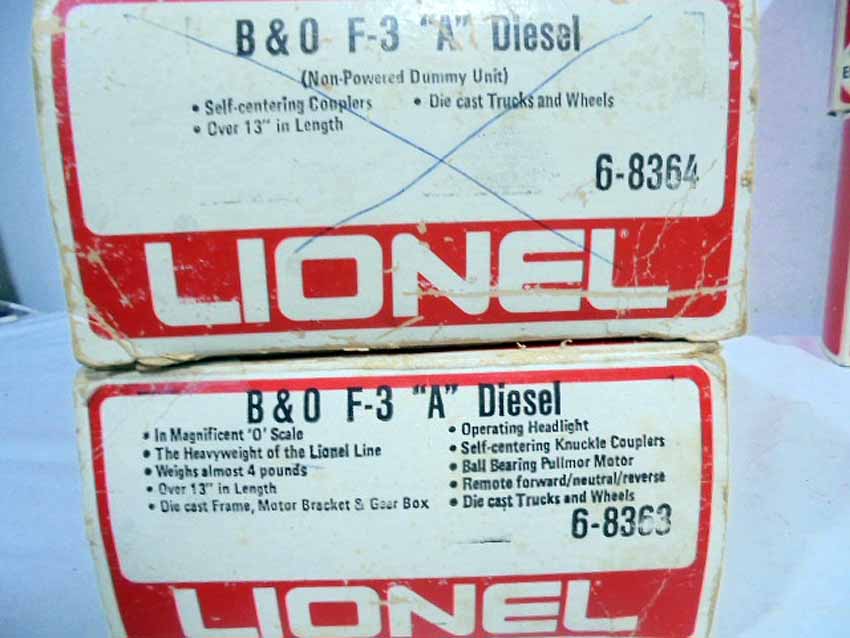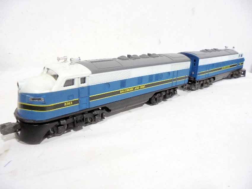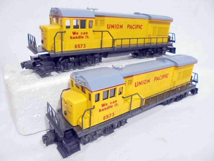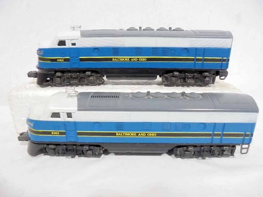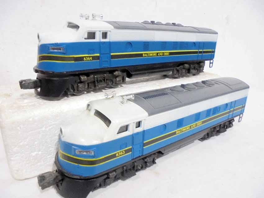 These are the #8363/8364 B&O F-3 Diesel AA Units (Powered/Non-Powered) and two #8573 Union Pacific U36B Non-Powered Diesel Engines with Horns that were made in the middle 1970s. Our Opinion is that they are generally Like New Condition. Original Boxes. All Original in our Opinion. Please add $50.00 for US-48 Shipping and Insurance (more west of the Mississippi).