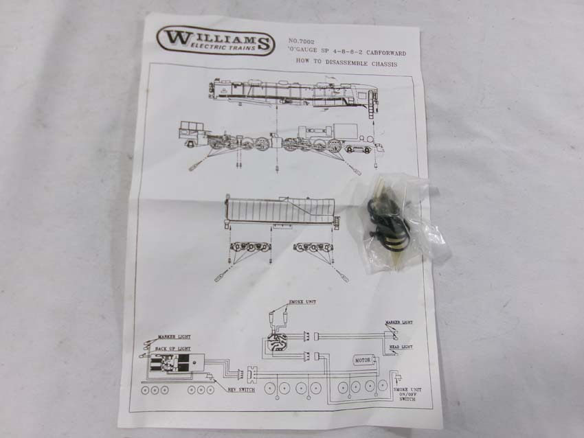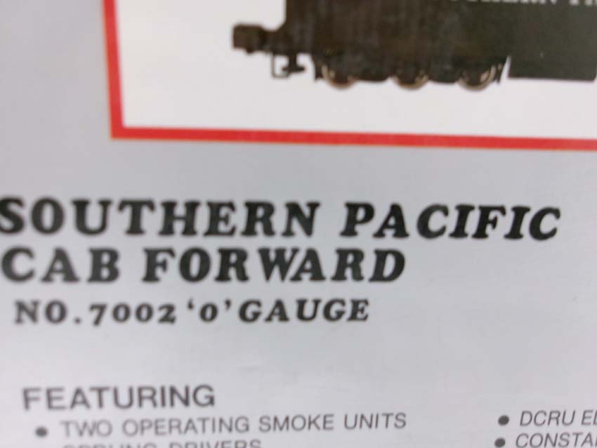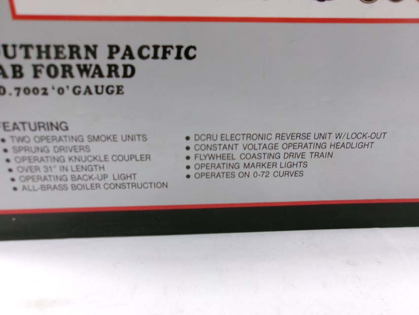 These are the #7002 SP 4-8-8-2 Cab Forward Steam Engine & Tender that Williams made in O Gauge several years ago. Our Opinion is that they are generally in Like New Condition. Original Box. All Original in our Opinion. Please add $50.00 for US-48 Shipping and Insurance (more west of the Mississippi).