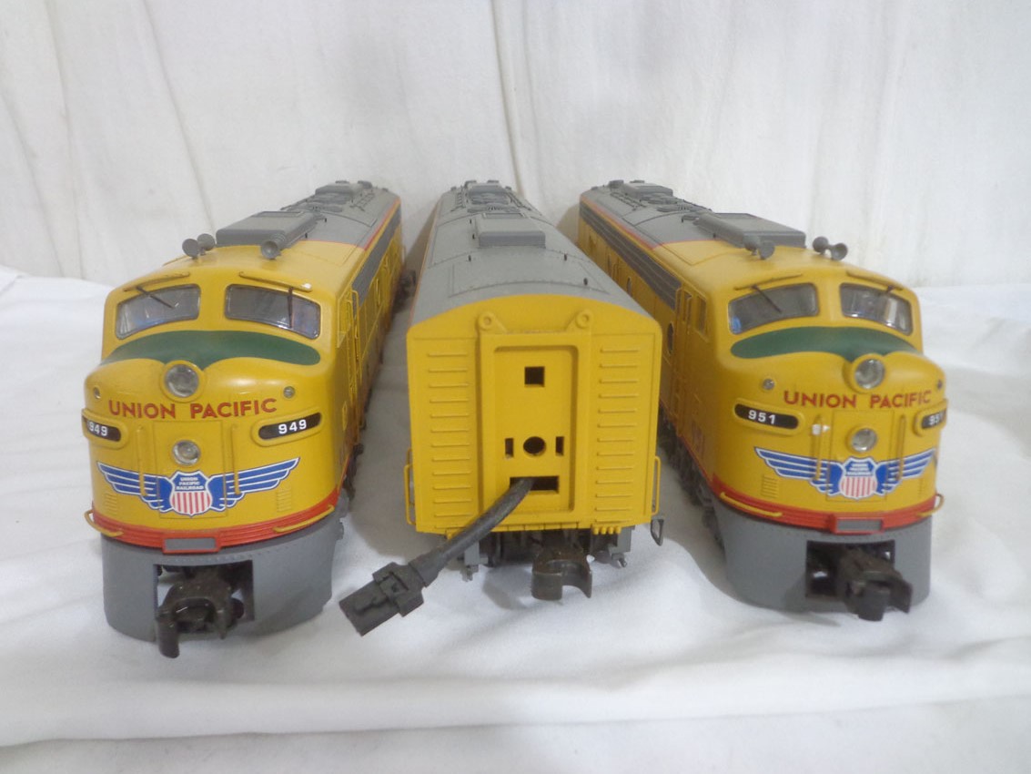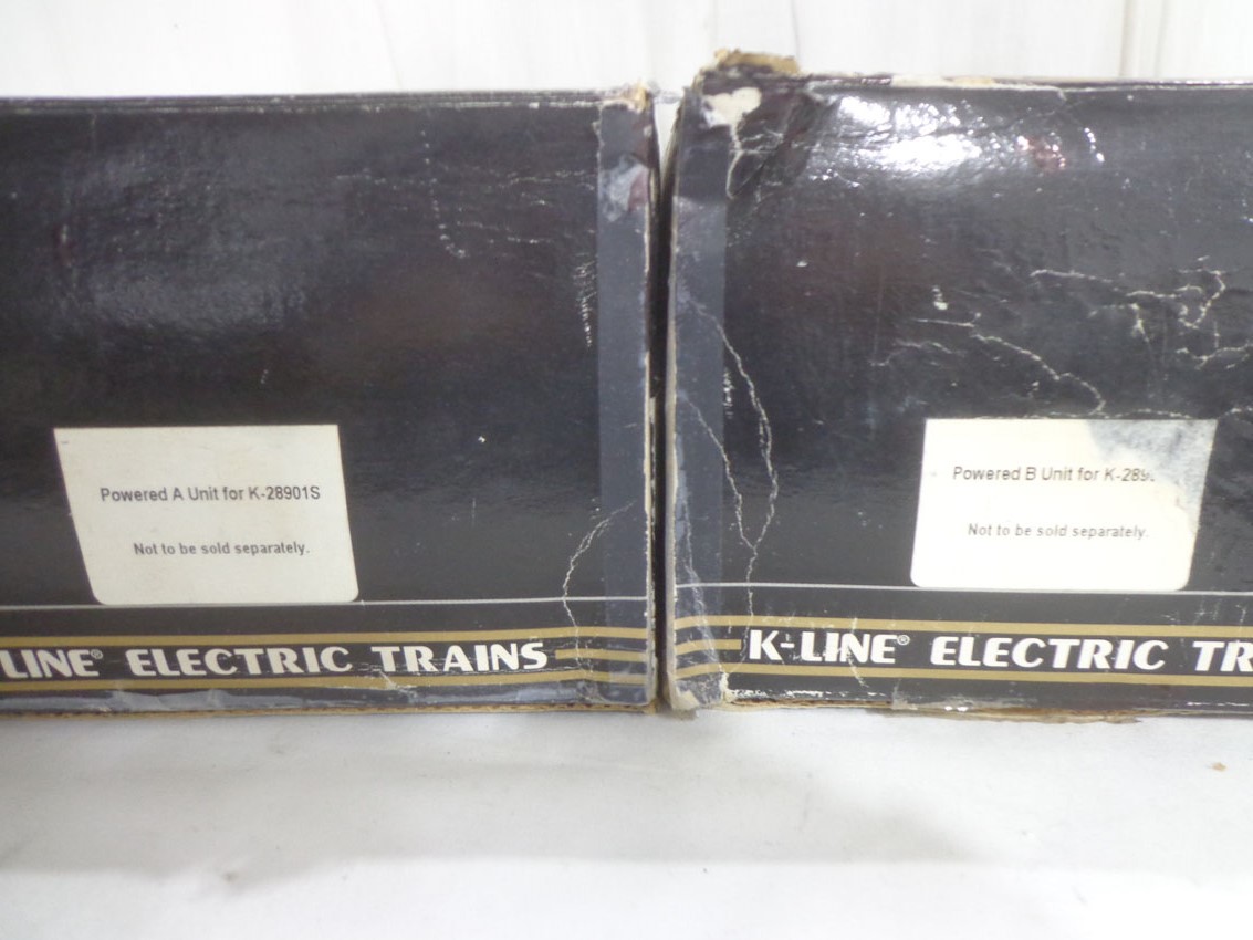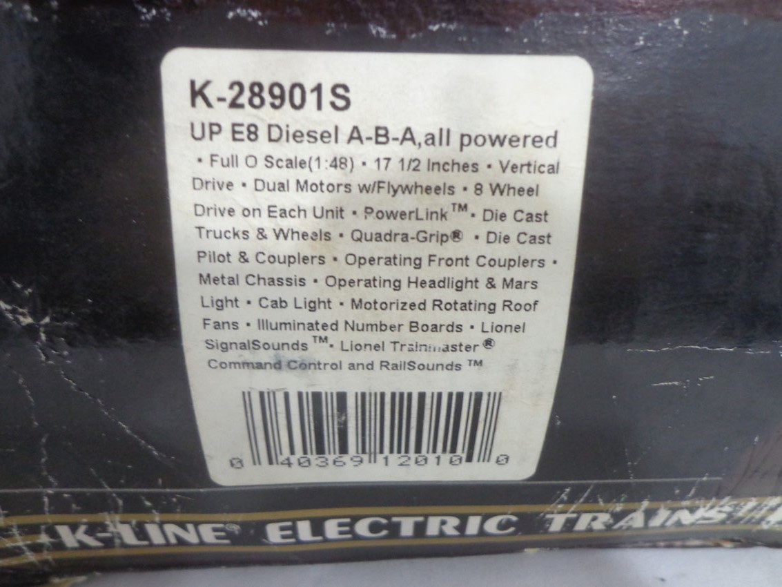 These are the #K-28901S Union Pacific All Powered ABA Set with Railsoundss that K-Line made a few years ago. Our Opinion is that they are generally in Like New Condition. Original Boxes. All Original in our Opinion. Please add $50.00 for US-48 Shipping and Insurance (morer west of the Mississippi).