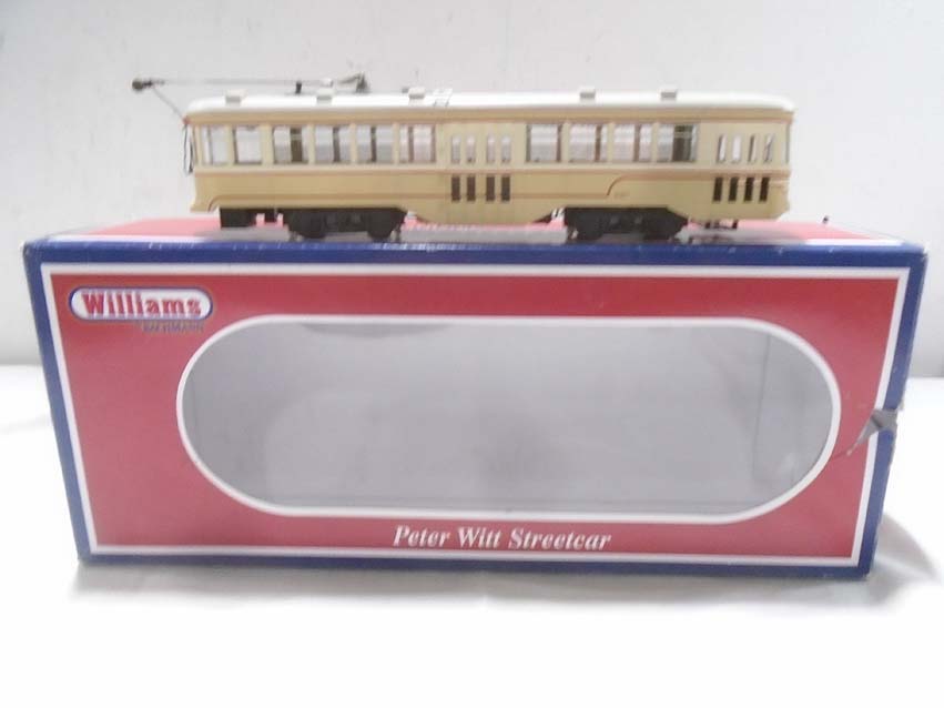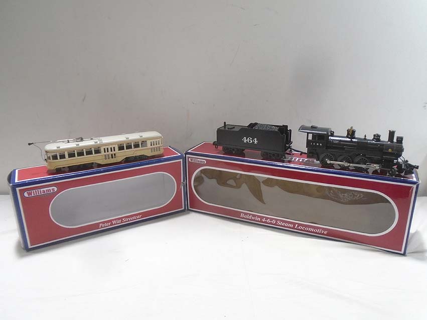 These are the #40603 ICRR Baldwin 4-6-0 Steam Engine & Tender (repainted) and the #23908 Cleveland Transit Peter Witt Street Car that Williams from the 1970s. Our Opinion is that it is generally in Excellent Condition. Original Boxes. All Original in our Opinion. Please add $45.00 for US-48 Shipping and Insurance (more west of the Mississippi). EX Williams #40603 ICRR Baldwin 4-6-0 Steam Engine & Tender (repainted) and #23908 Cleveland Transit Peter Witt Street Car, OBs GB