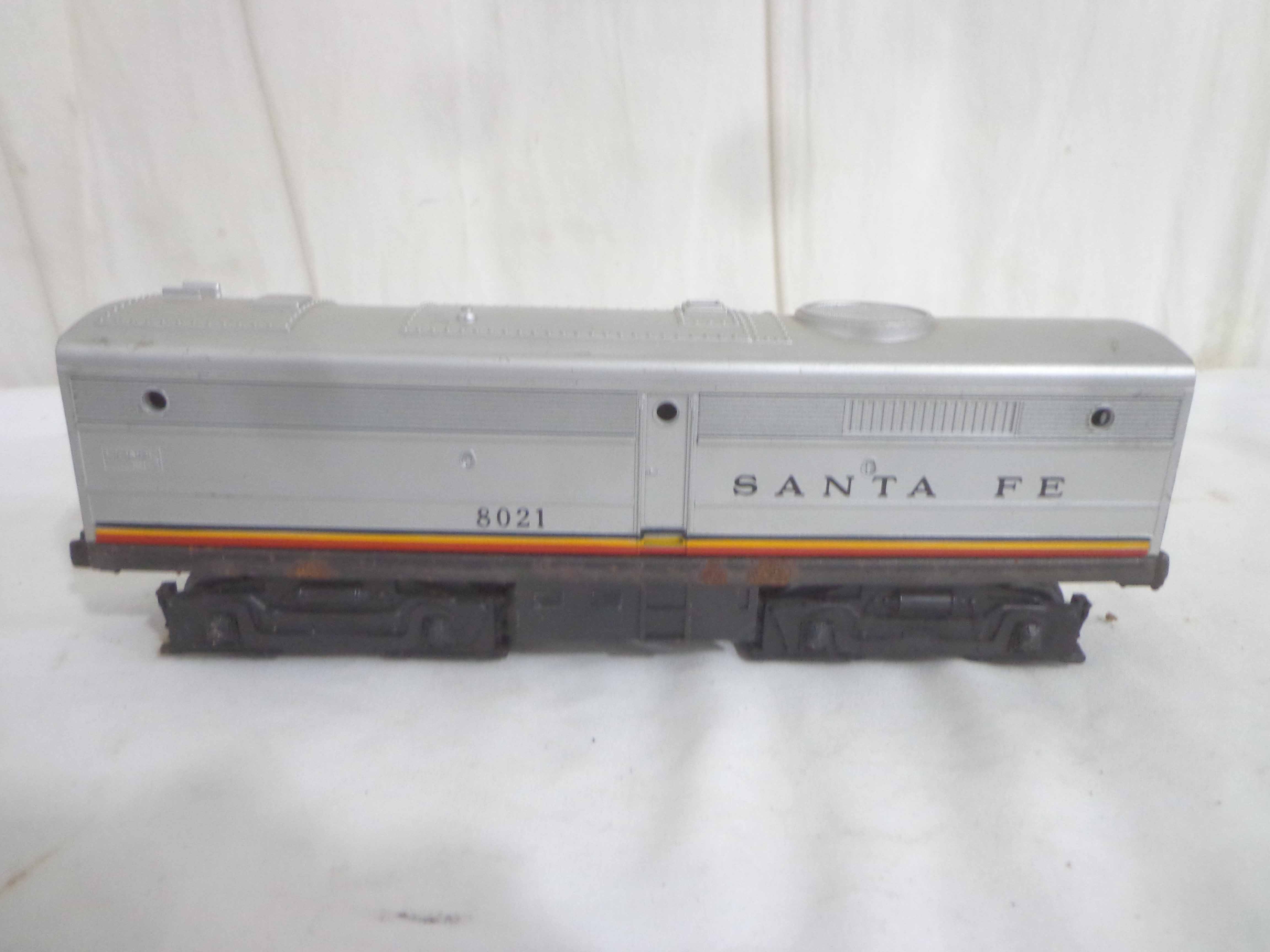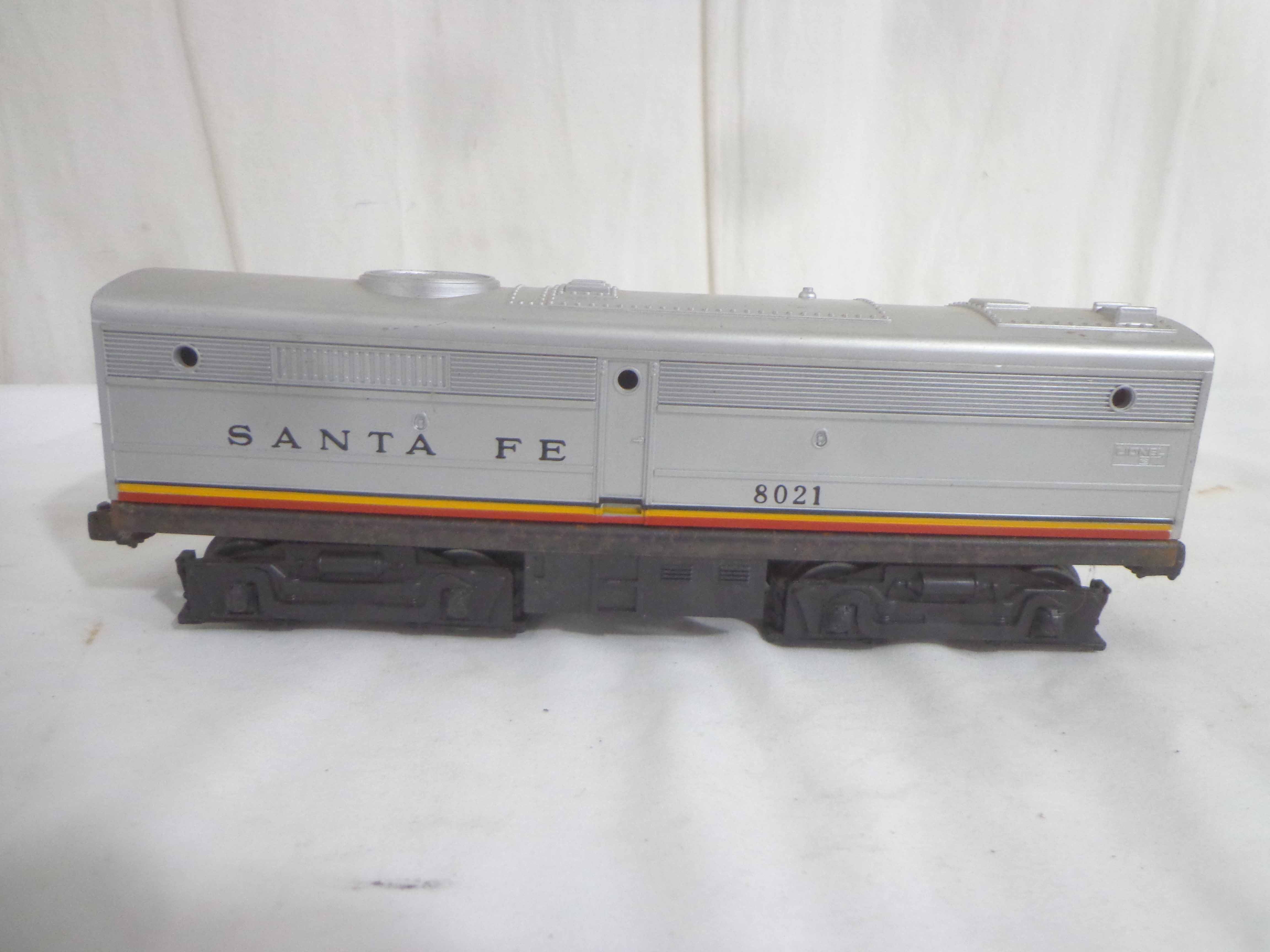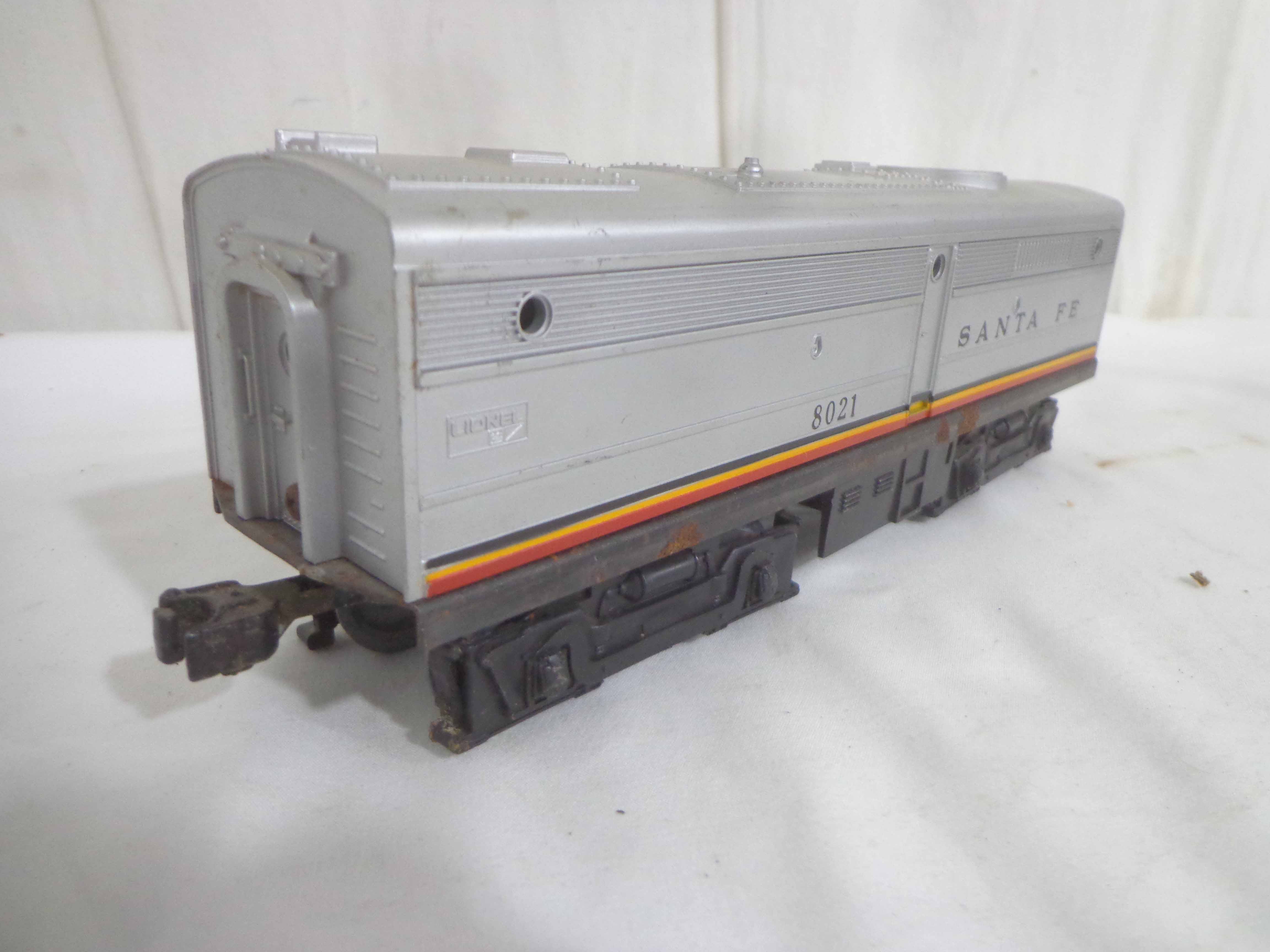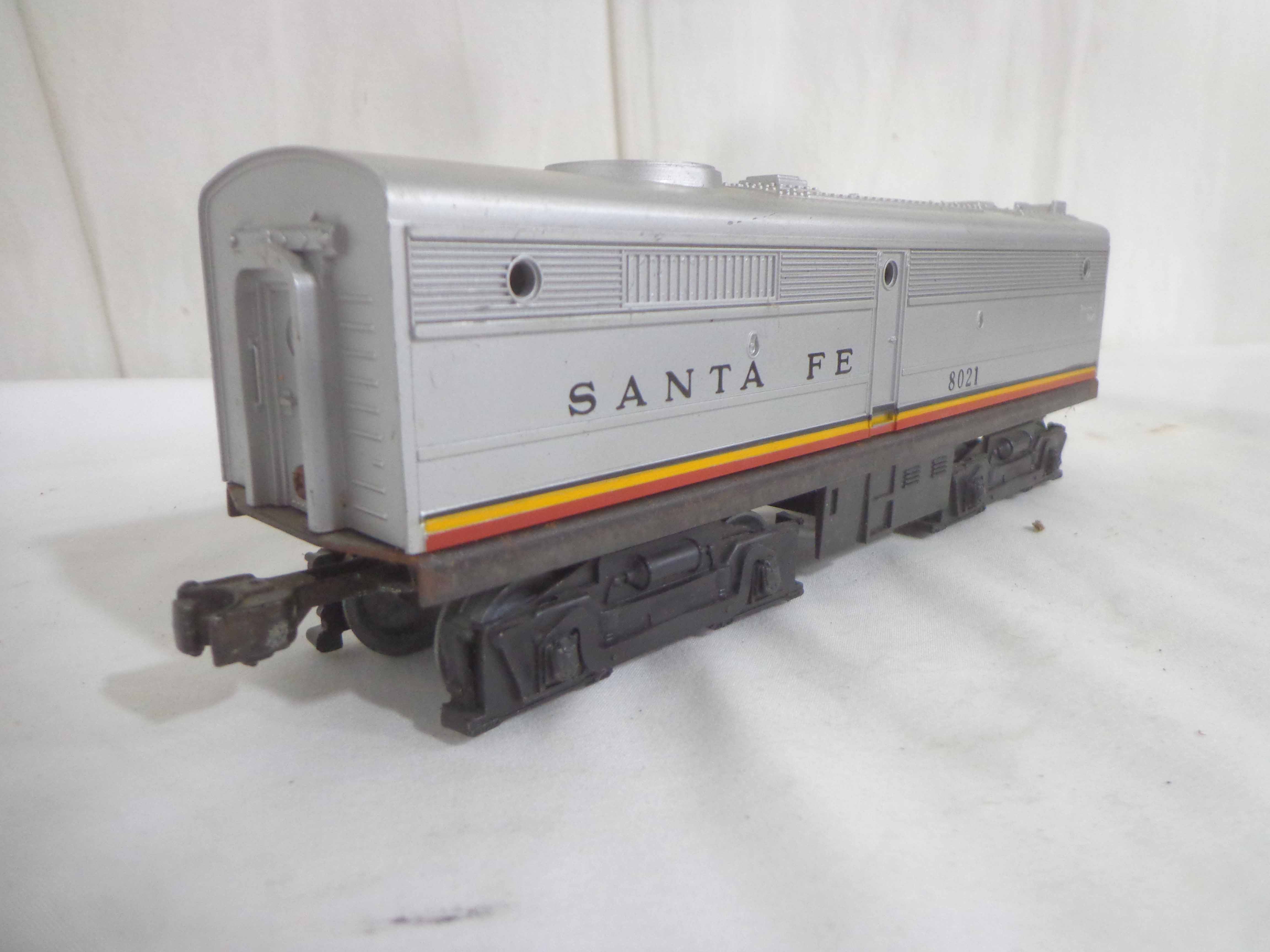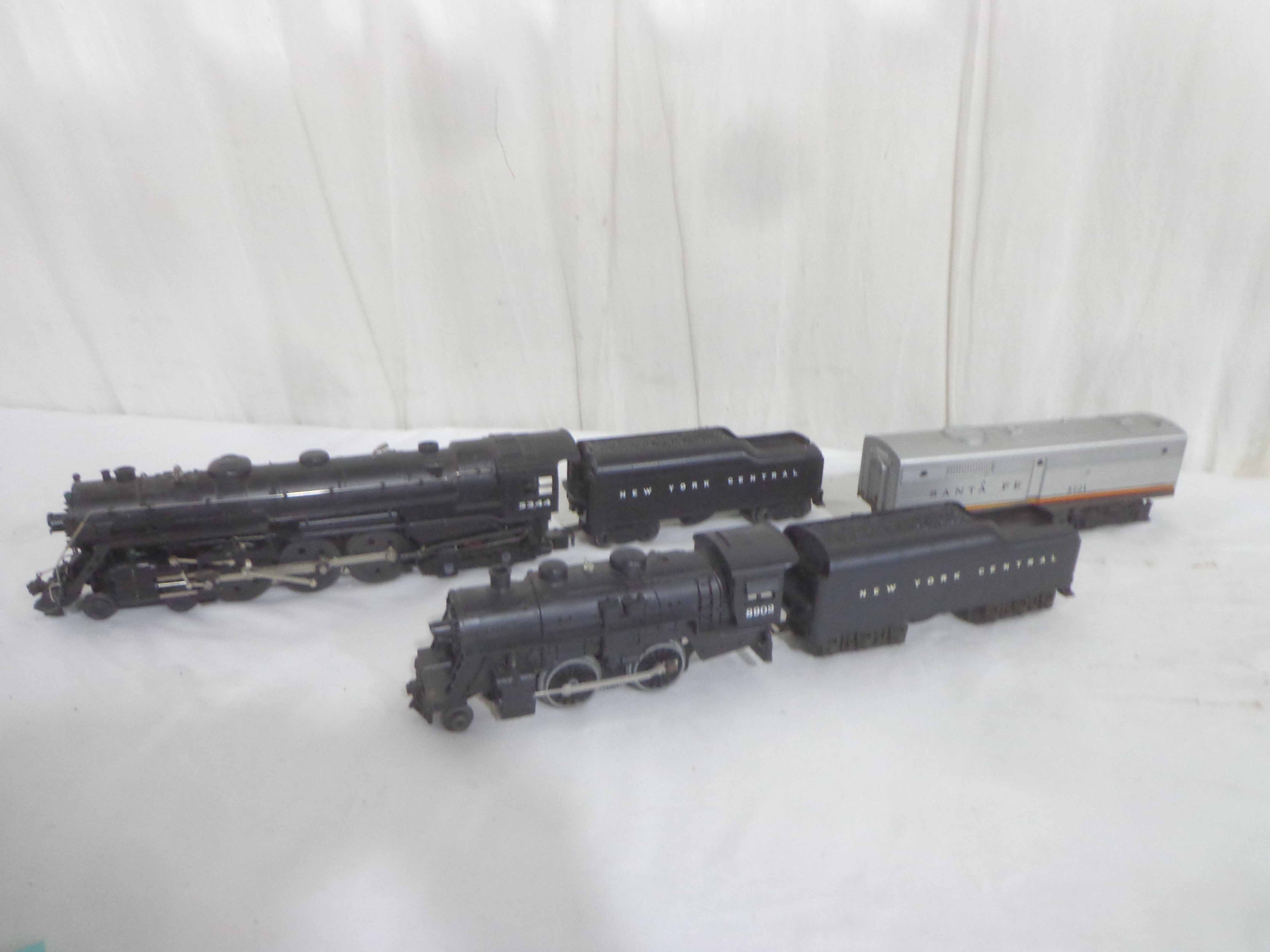 These are the Williams #5344 New York Central 4-6-4 Engine and Tender, the Lionel #8902 New York Central 2-4-0 Engine and Tender, and the Lionel #8021 Santa Fe B Unit. Our Opinion is that they are generally in Like New Condition. No Boxes. Examine closely; what is pictured is what you will receive. Please add $50.00 for US-48 Shipping and Insurance (more west of the Mississippi). Like New Lionel #5344 New York Central 4-6-4 Engine and Tender, #8902 New York Central 2-4-0 Engine and Tender and #8021 Santa Fe B Unit Gail