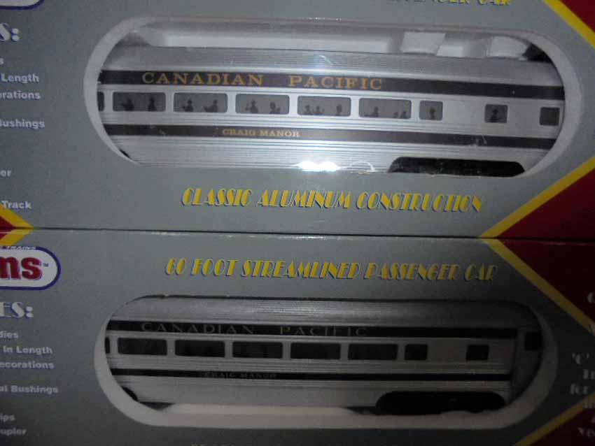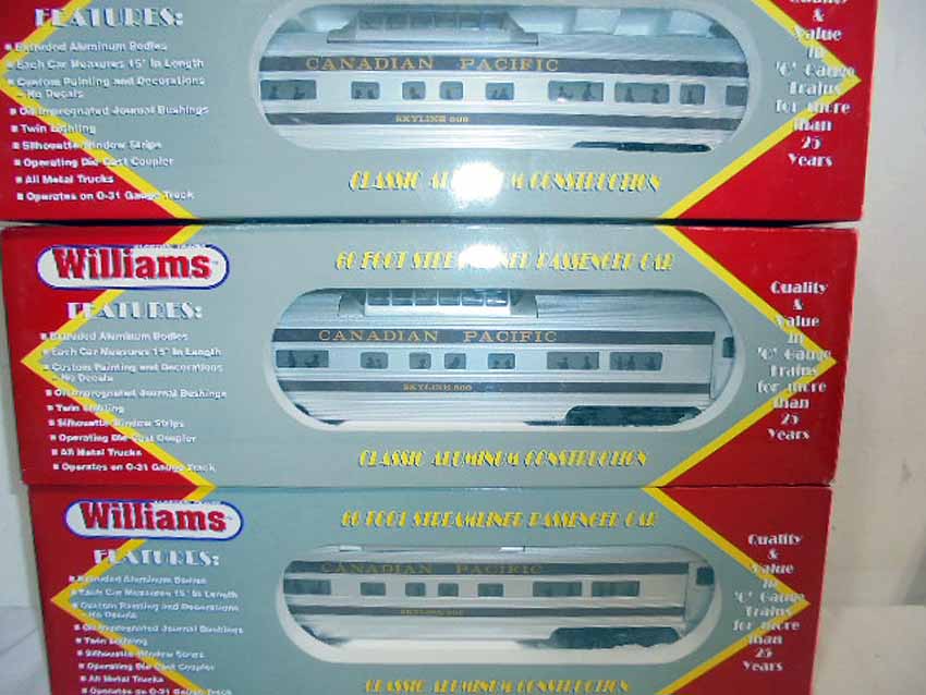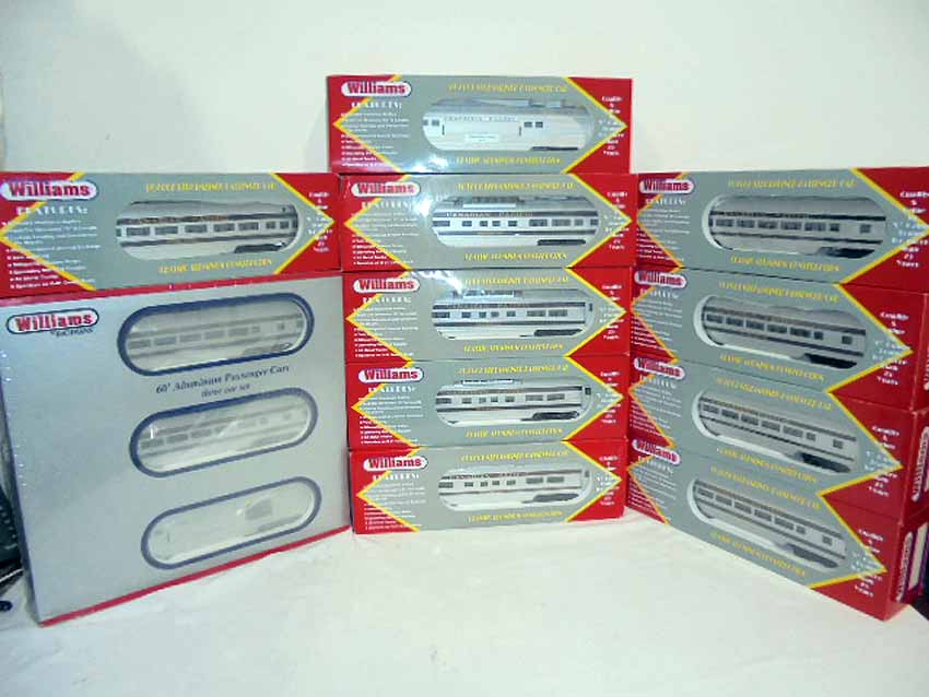 These are eleven Williams Canadian Pacific Passenger Cars from the 1990s. Included the #43050 Sealed Aluminum 3-Pack Set, the #2530 REA Baggage Car, two Blair Manor Coach, two Craig Manor Coach Cars, four Skyline 500 Vista Dome Cars, and the Baniff Park Observation Car. Our Opinion is that they are generally in Like New or Better Condition. Original Boxes. All Original in our Opinion. Please add $60.00 for US-48 Shipping and Insurance (more west of the Mississippi).