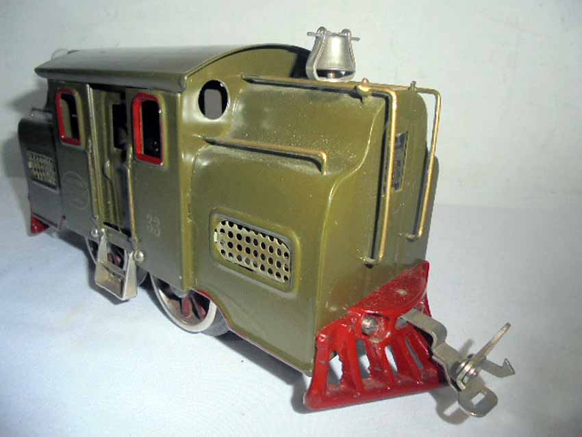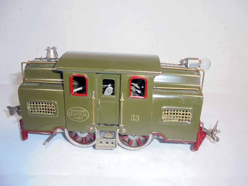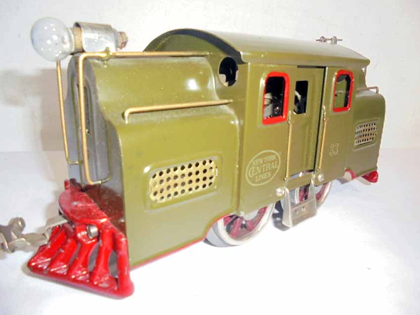 This is the #33 Dk Olive Green Electric Locomotive (windows/cow catchers may be repainted) that Lionel made in Standard Gauge in the 1920s. No Box. Examine closely; what is pictured is what you will receive. Please add $35.00 for US-48 Shipping and Insurance (more west of the Mississippi).
