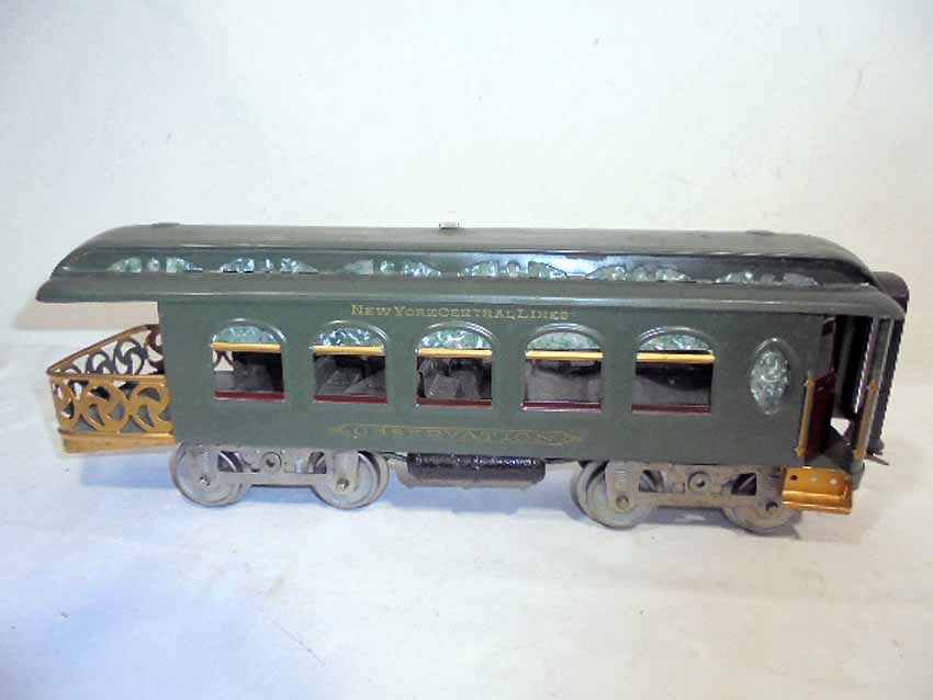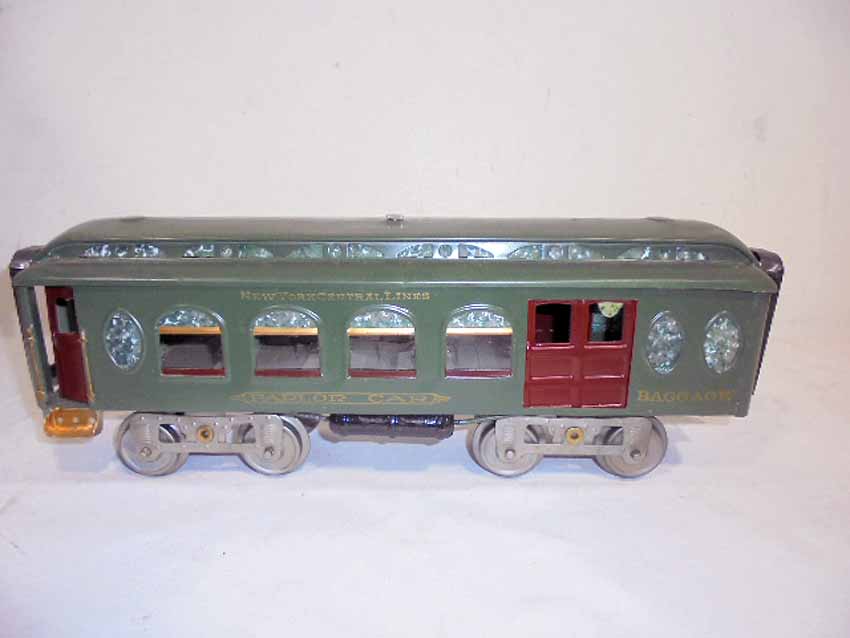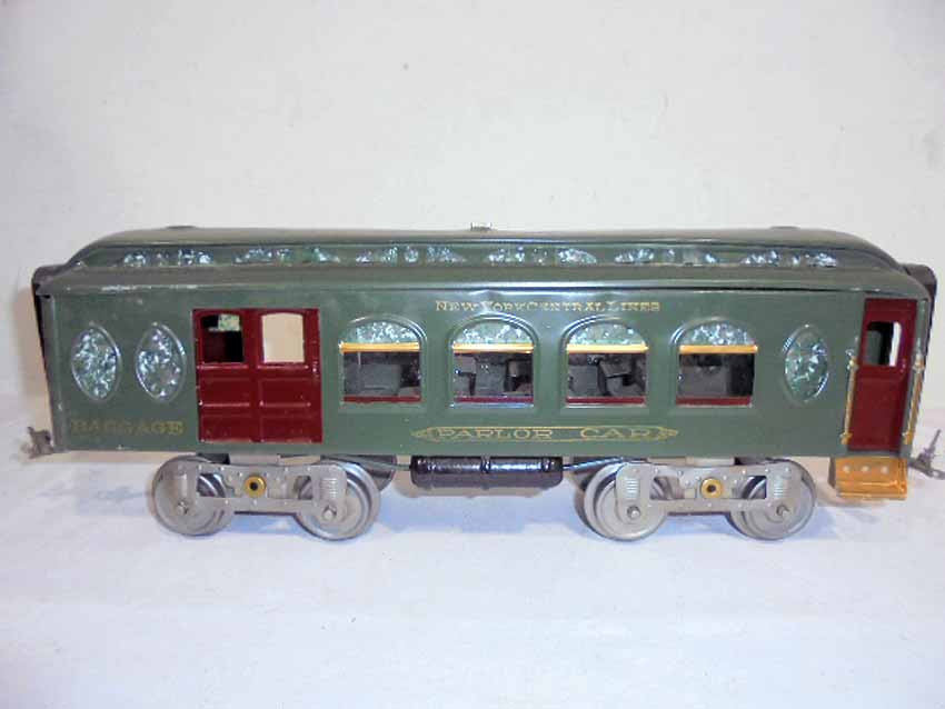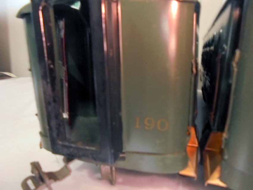 3 Lionel Standard Gauge NYC Green Passenger Cars, #18 Combination Car, #19 Parlor Car and #190 Observation Car (Repainted), BA |